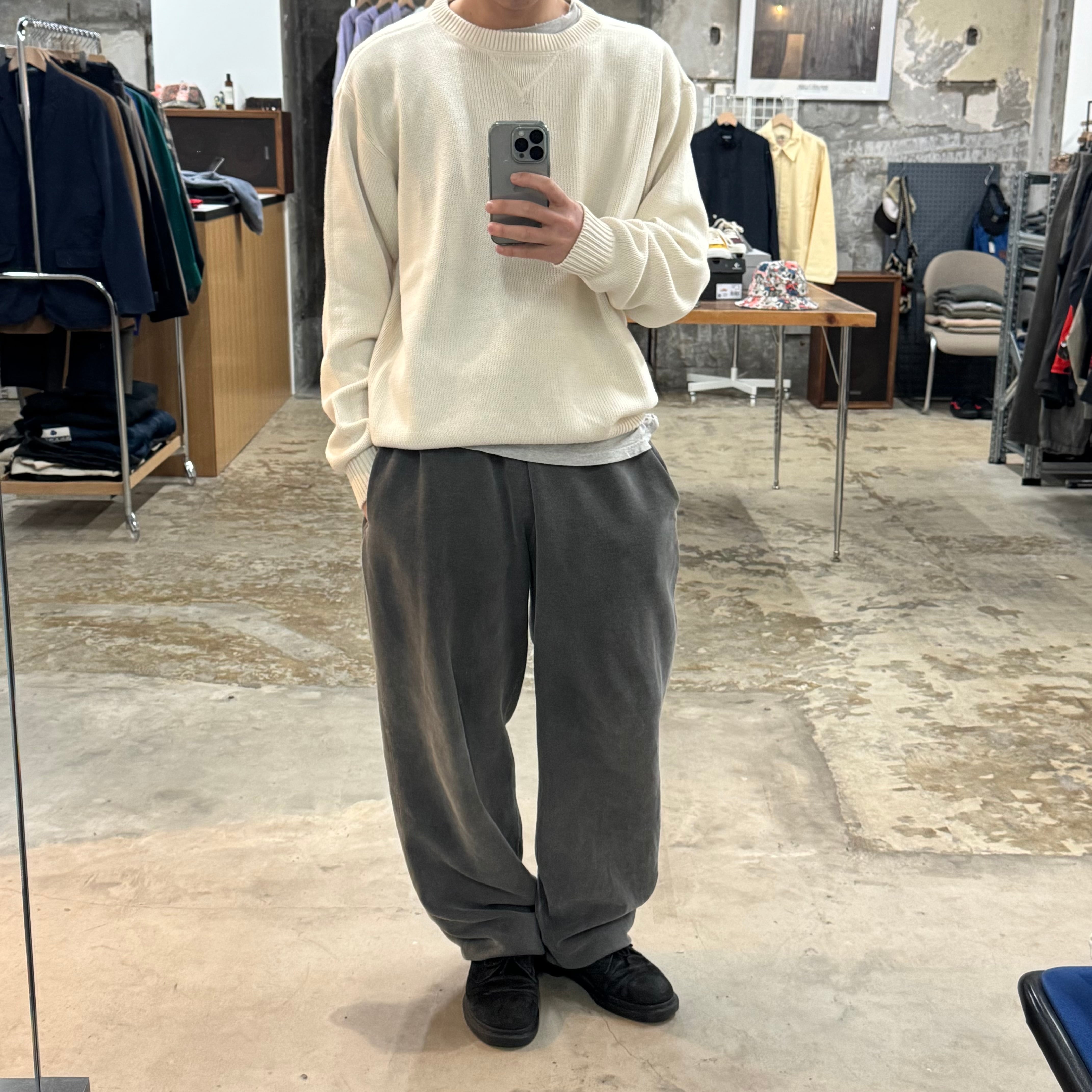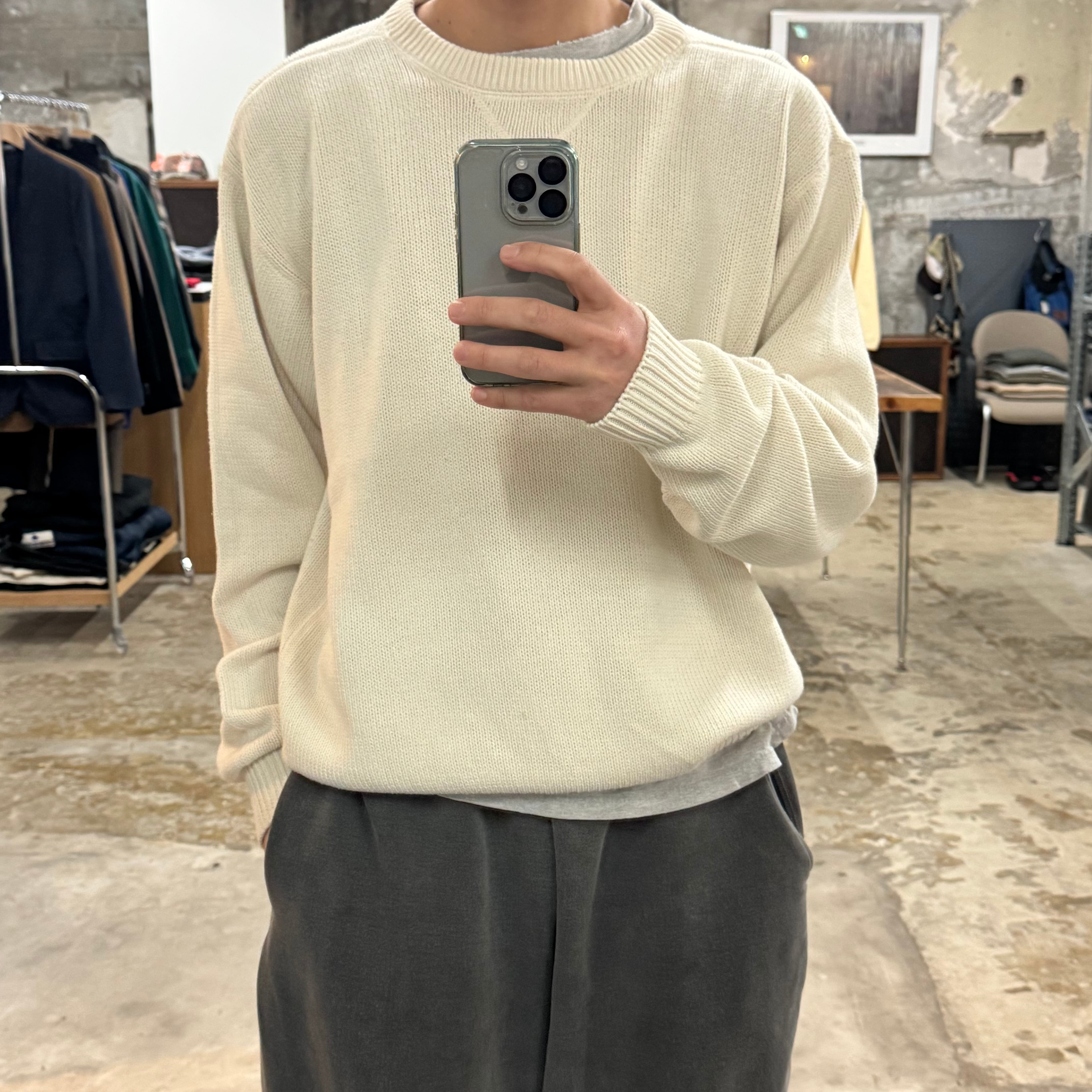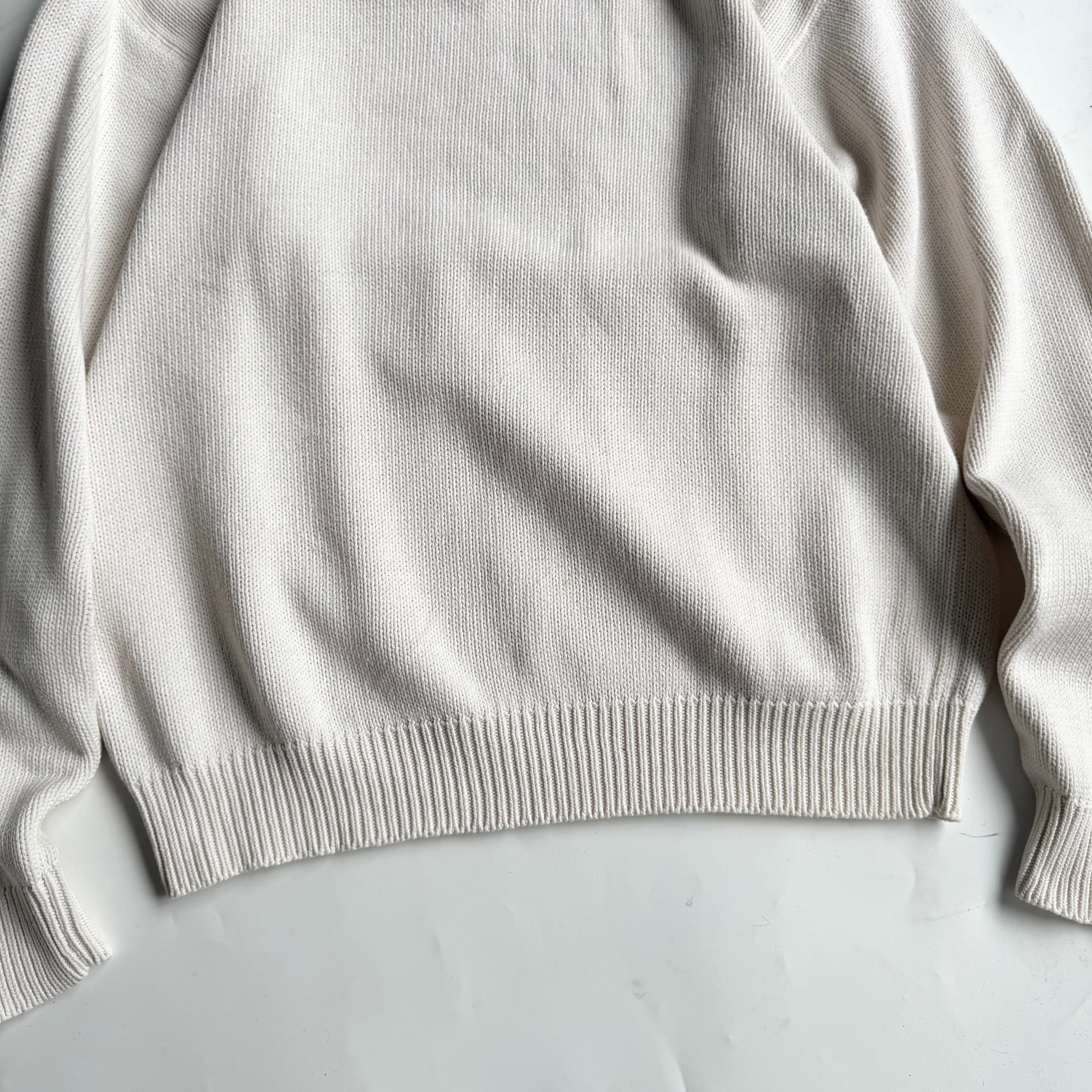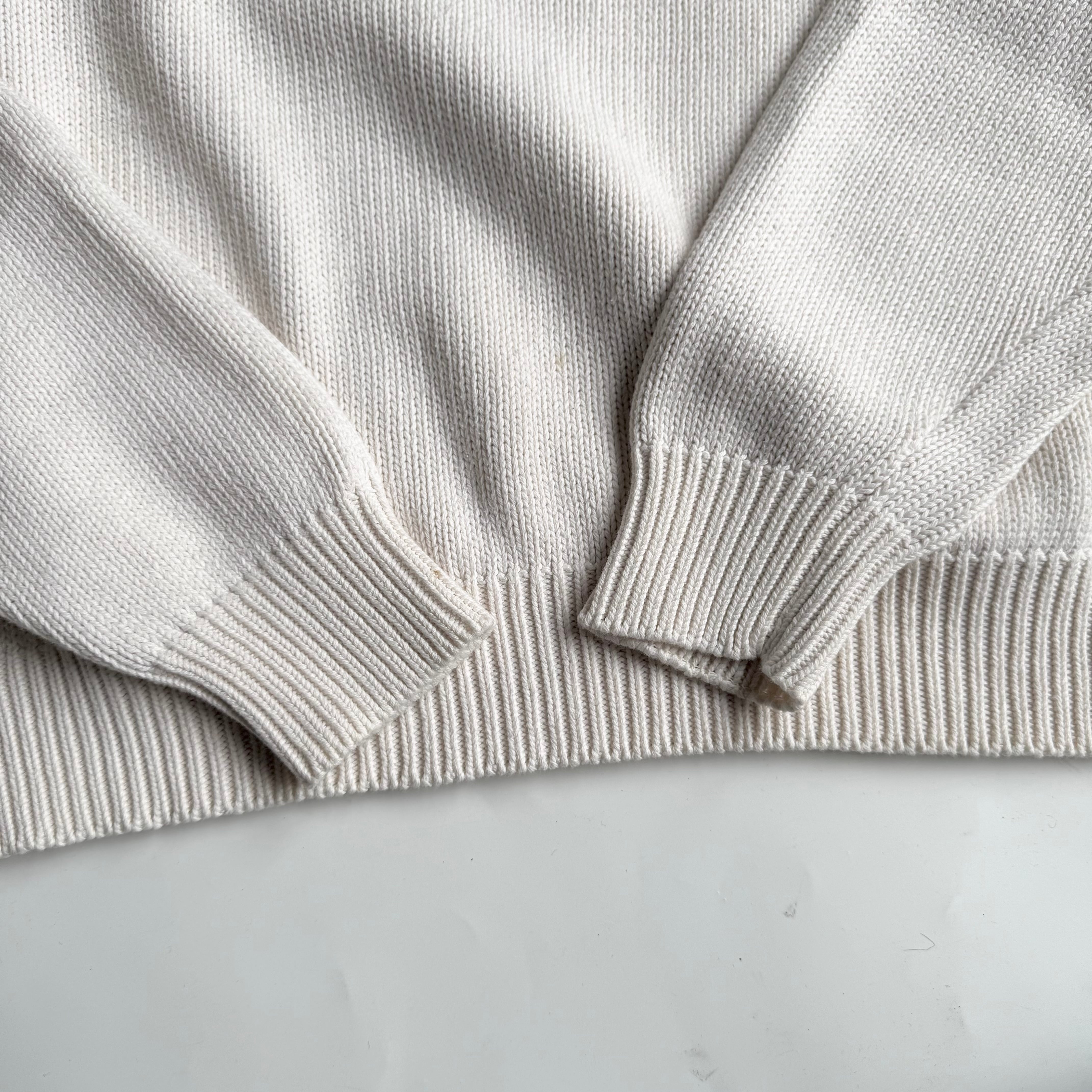 •SIZE L 肩幅 54cm 袖丈 66cm 身幅 60cm 着丈 66.5cm 175cm着用 •MATERIAL COTTON 100% •COLOR オフホワイト •CONDITION 使用感、フロントや袖に小さな汚れ。 ya6582