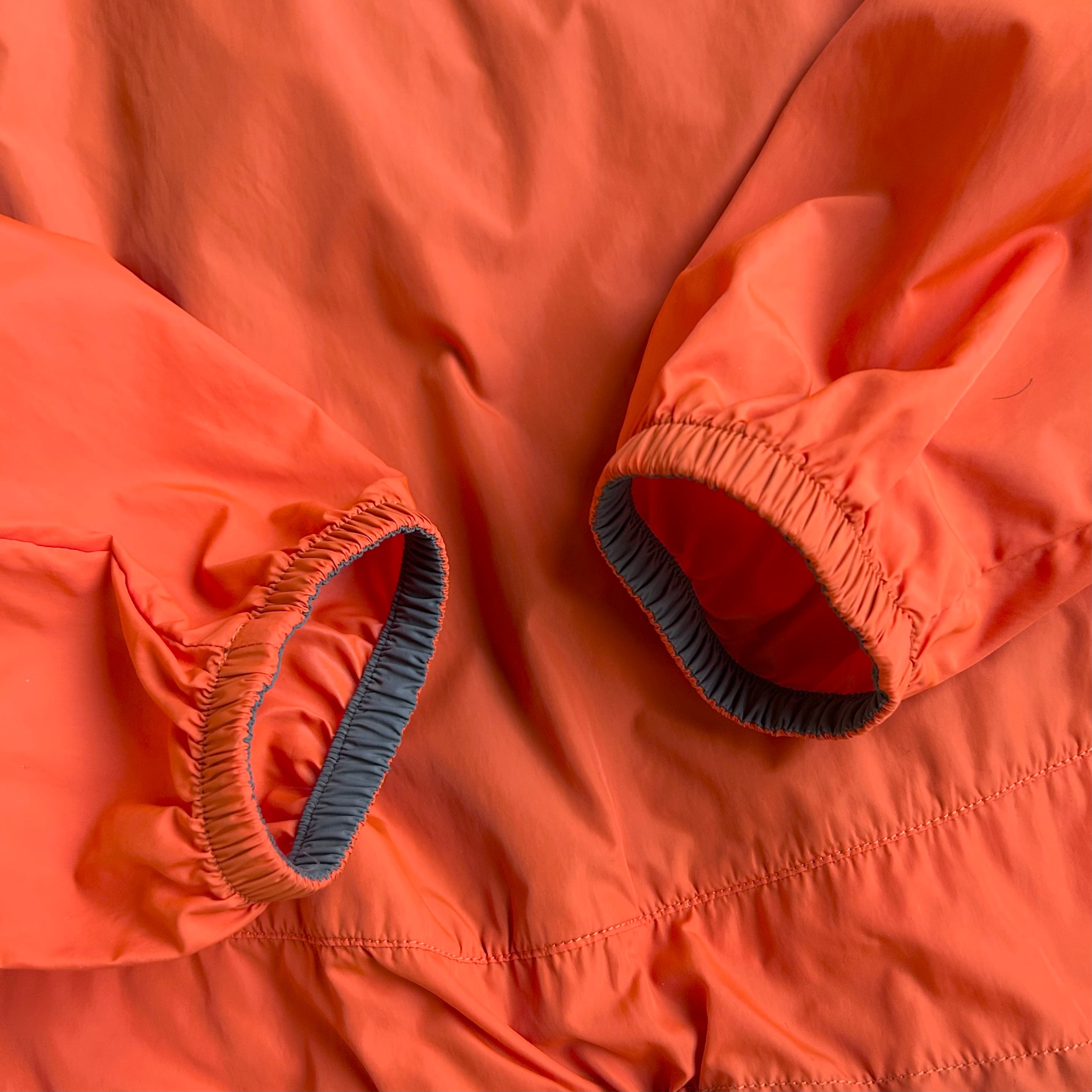 •SIZE L 肩幅 ラグラン袖 袖丈 78cm(首元から) 身幅 59cm 着丈 66.5cm 175cm着用 •MATERIAL NYLON100% •COLOR オレンジ •CONDITION 使用感はございますが、目立った傷や汚れ等はございません。 me1058