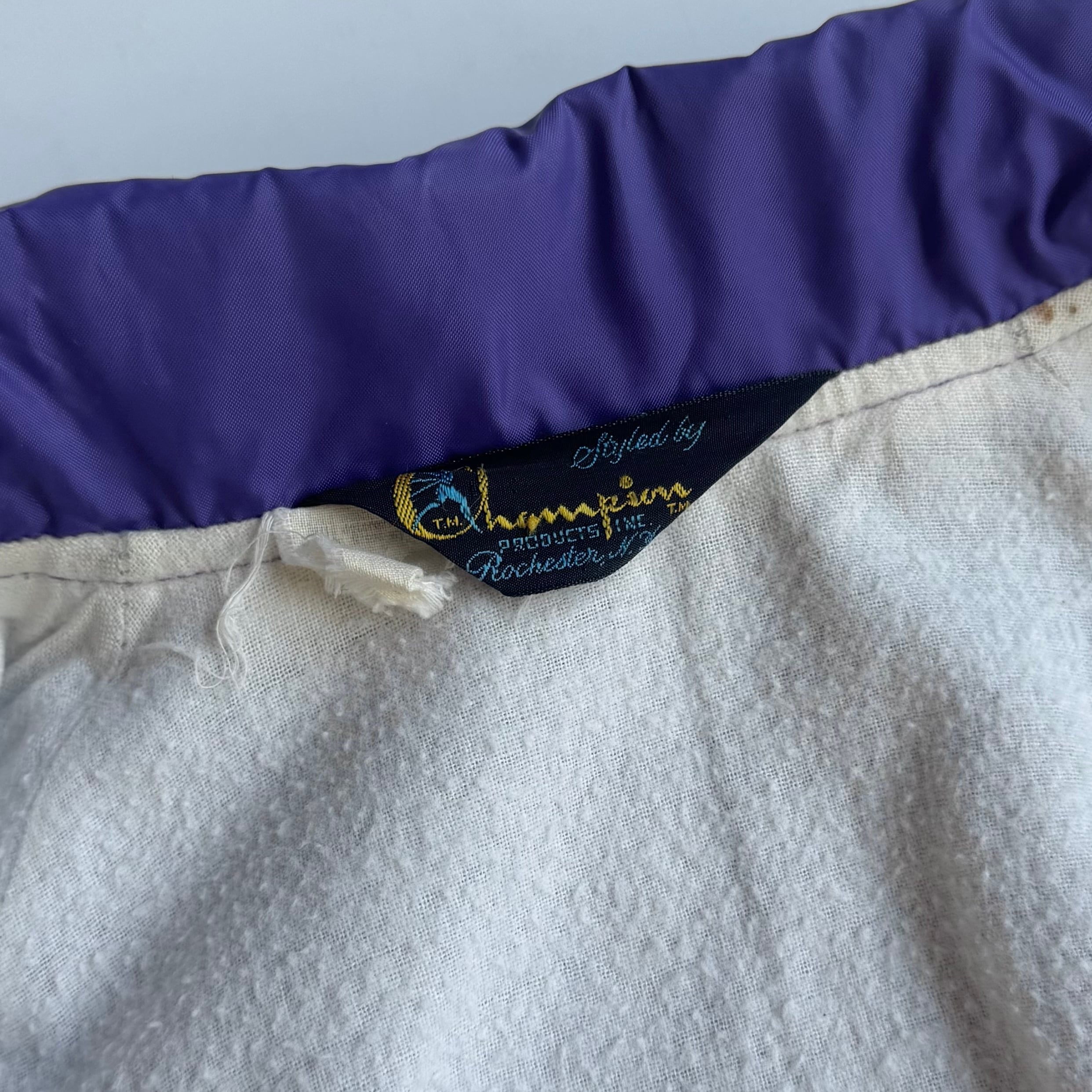 60s~ championのランタグ、ナイロンコーチjkt。センス良しなフォントでちょいワル。バランス◎。 •SIZE 表記不明 裄丈 85cm 身幅 58cm 着丈 70cm 175cm着用 •MATERIAL 恐らく NYLON •COLOR パープル •CONDITION 使用感、内側に汚れ、生地に小さなダメージ。 gar2863