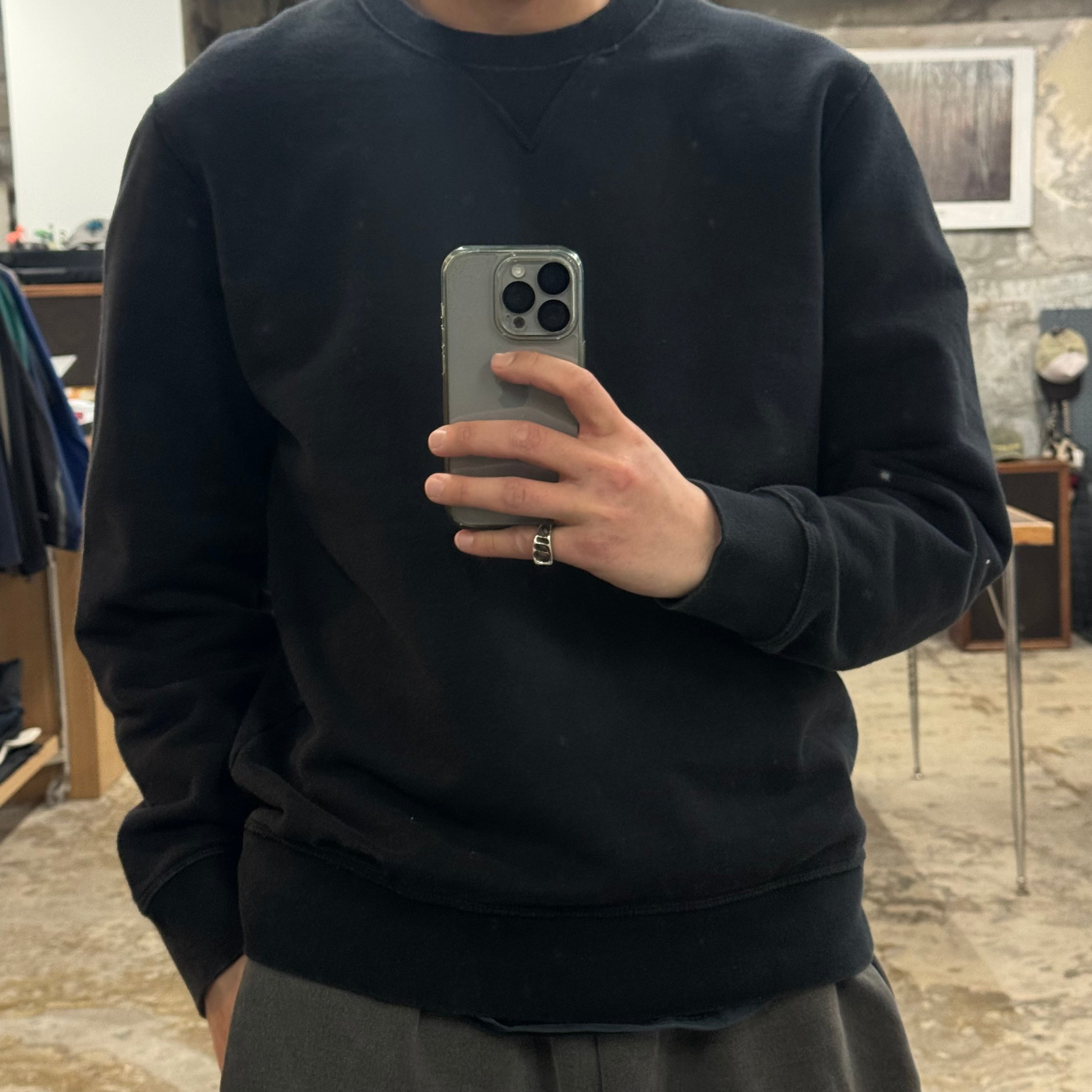 裾に入る同色のロゴ刺繍 胸部じゃないのが いいサラッと感◎ •SIZE M 肩幅 48cm 袖丈 66cm 身幅 57cm 着丈 68.5cm 175cm着用 •MATERIAL COTTON 91% POLYESTER 9% •COLOR ブラック •CONDITION 使用感、フロントに薄いシミ。 写真にてご確認ください。 gar2864