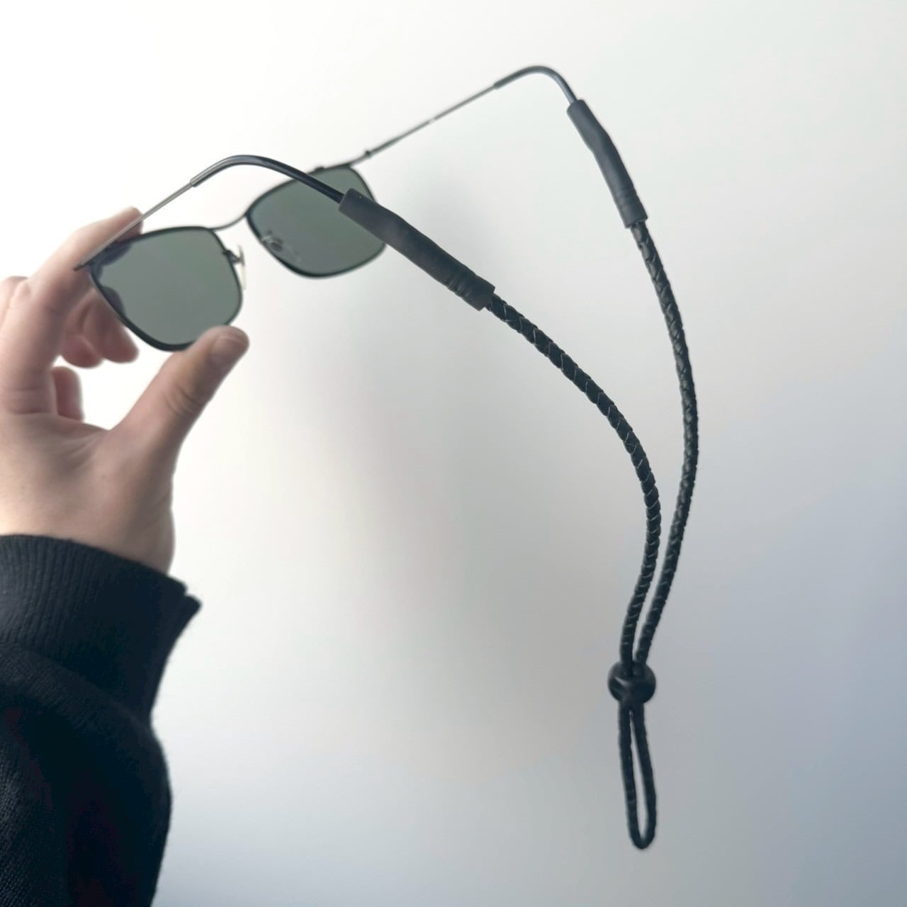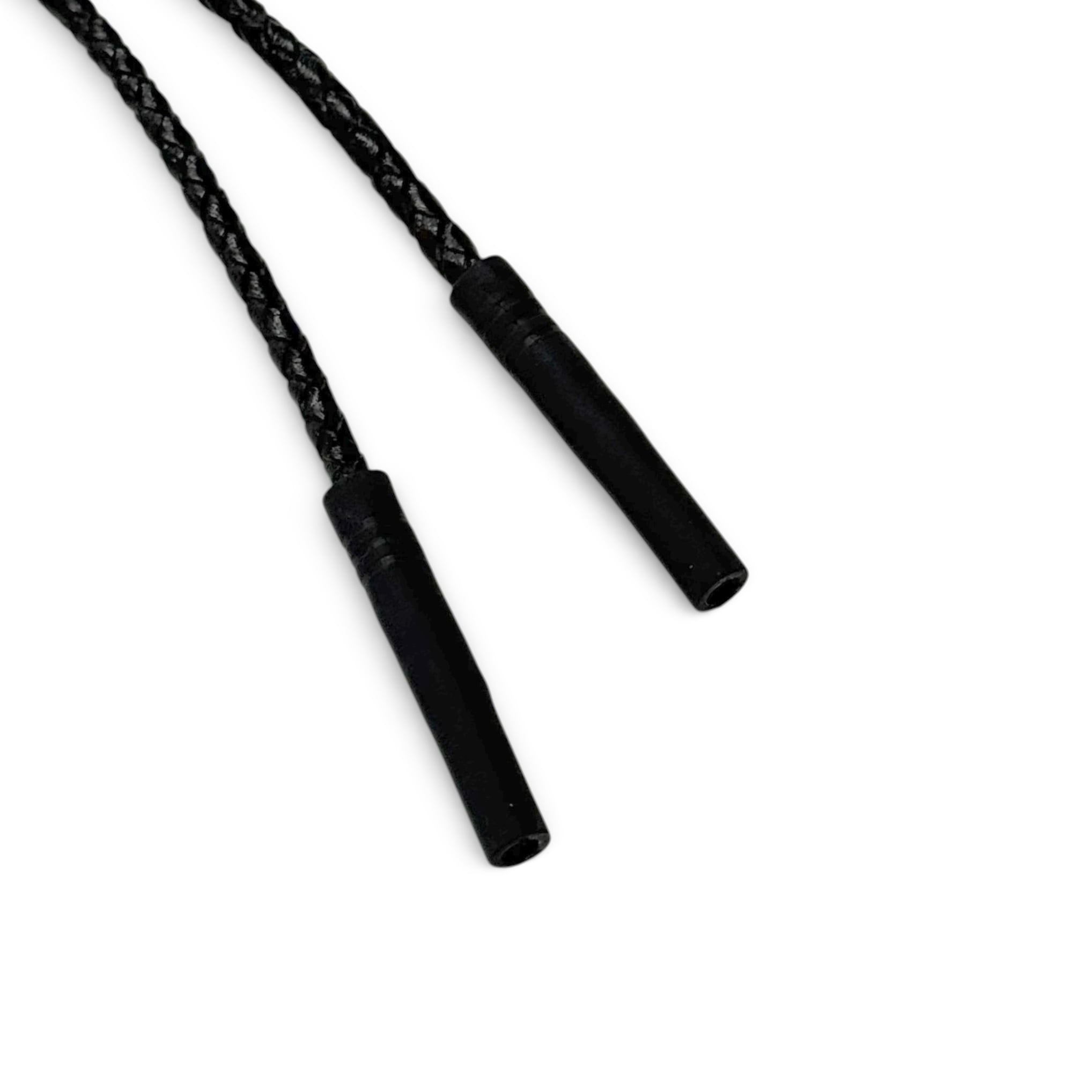 •SIZE 全長 60cm (二等分に折った際は30cm) •MATERIAL Durable Braided Leather With Rubber Tube Ends - Ajastable •COLOR ブラック •CONDITION デッドストック。