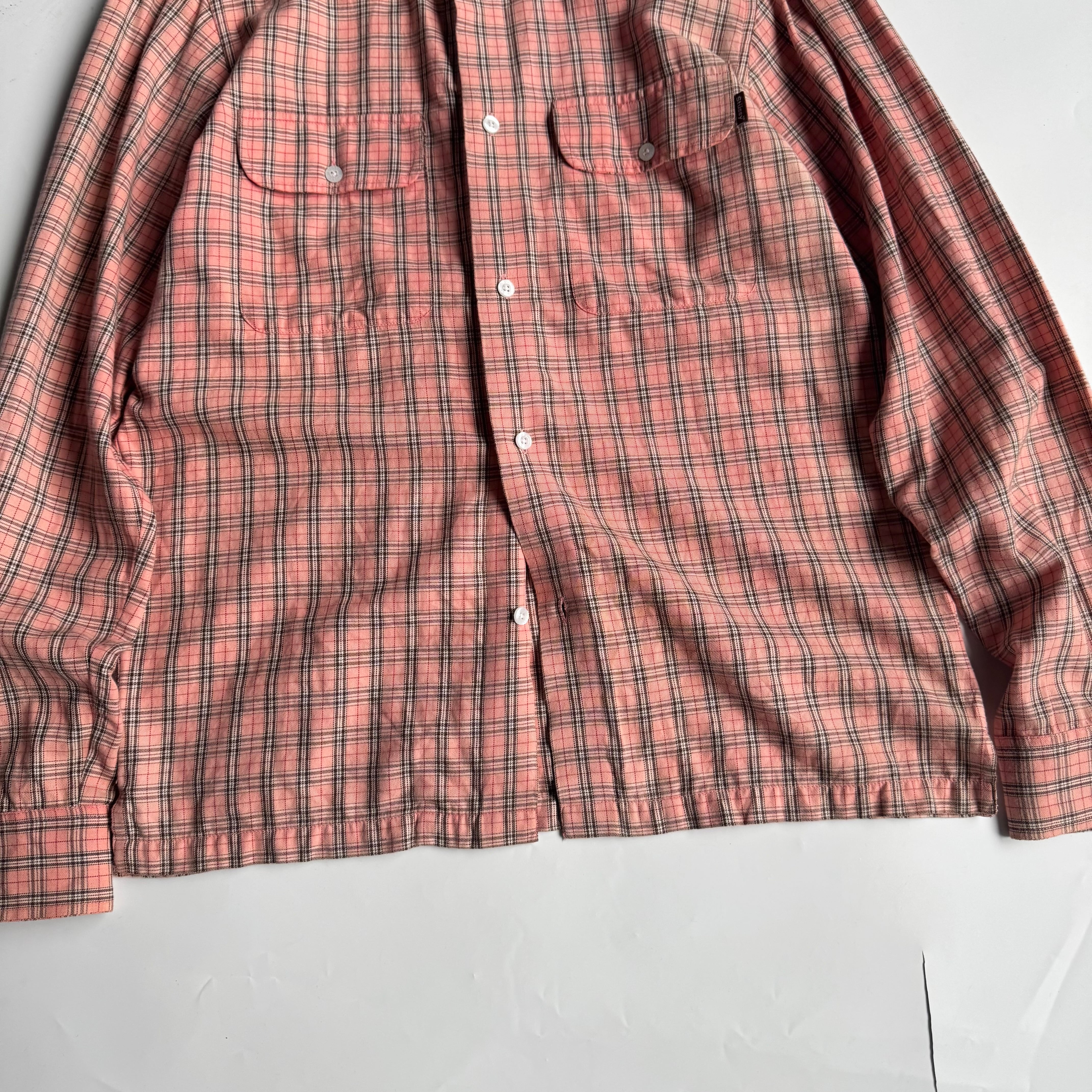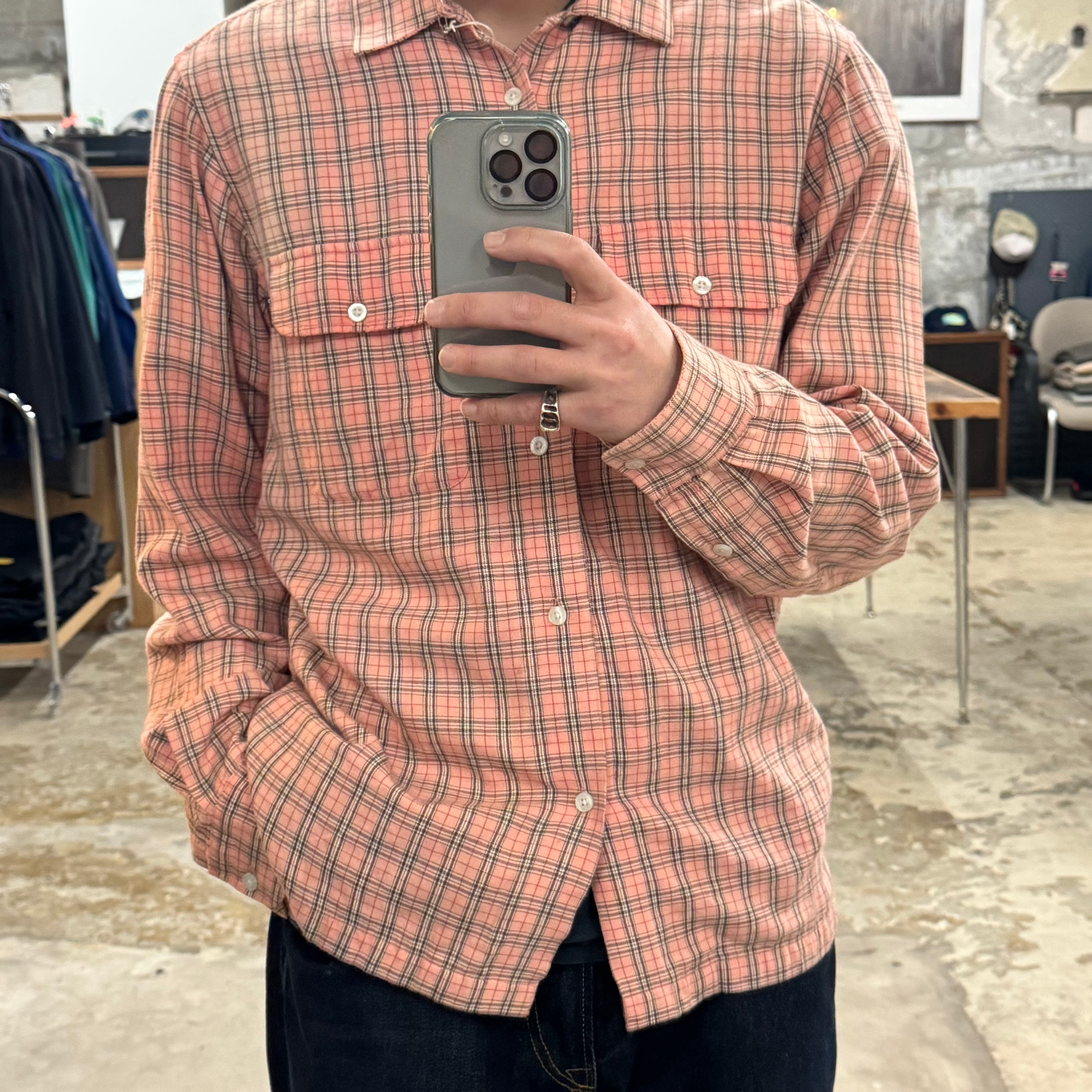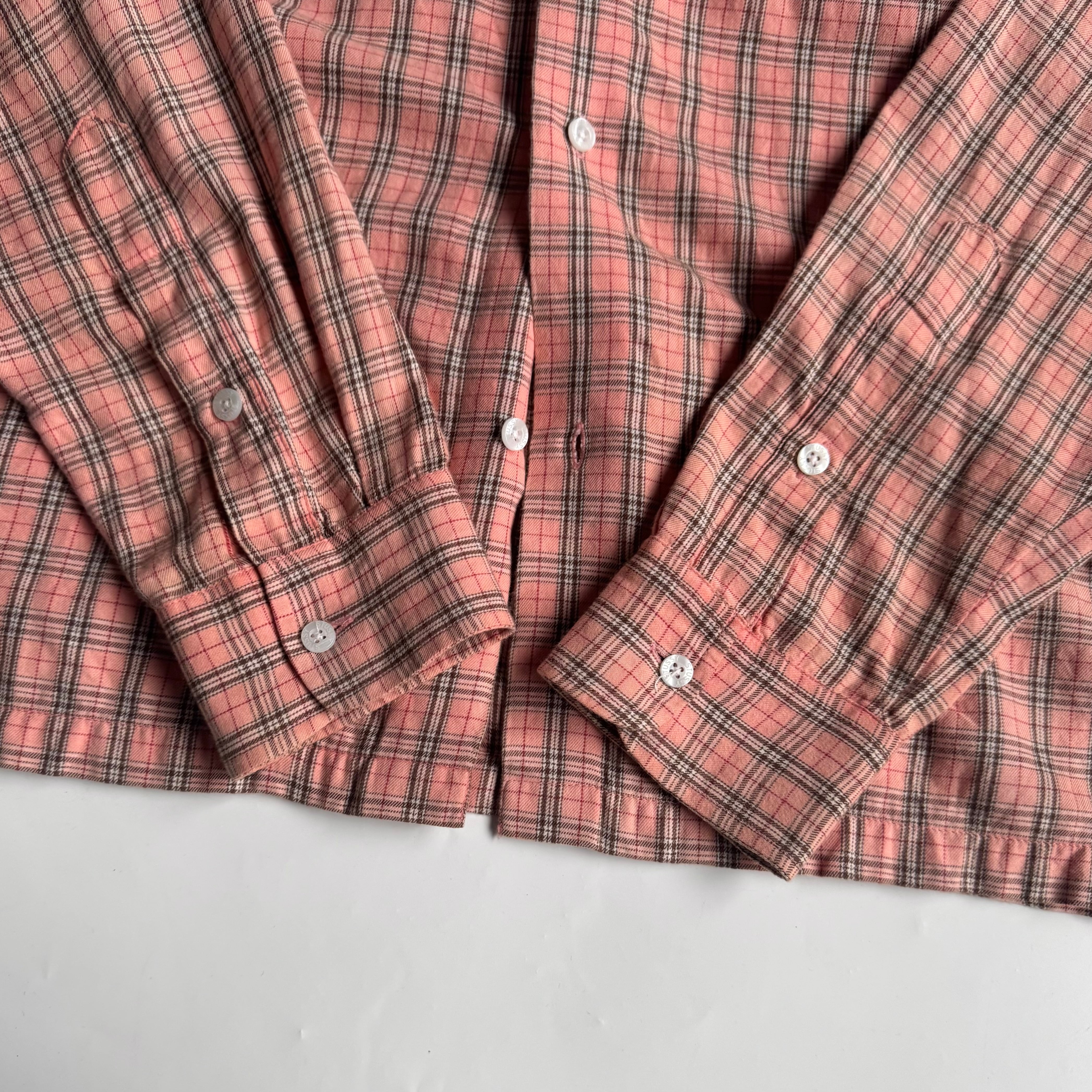 •SIZE M 肩幅 48cm 袖丈 67cm 身幅 53cm 着丈 75cm 175cm着用 •MATERIAL COTTON 100% •COLOR ピンク系 •CONDITION 使用感はございますが、目立った傷や汚れ等はございません。 1124