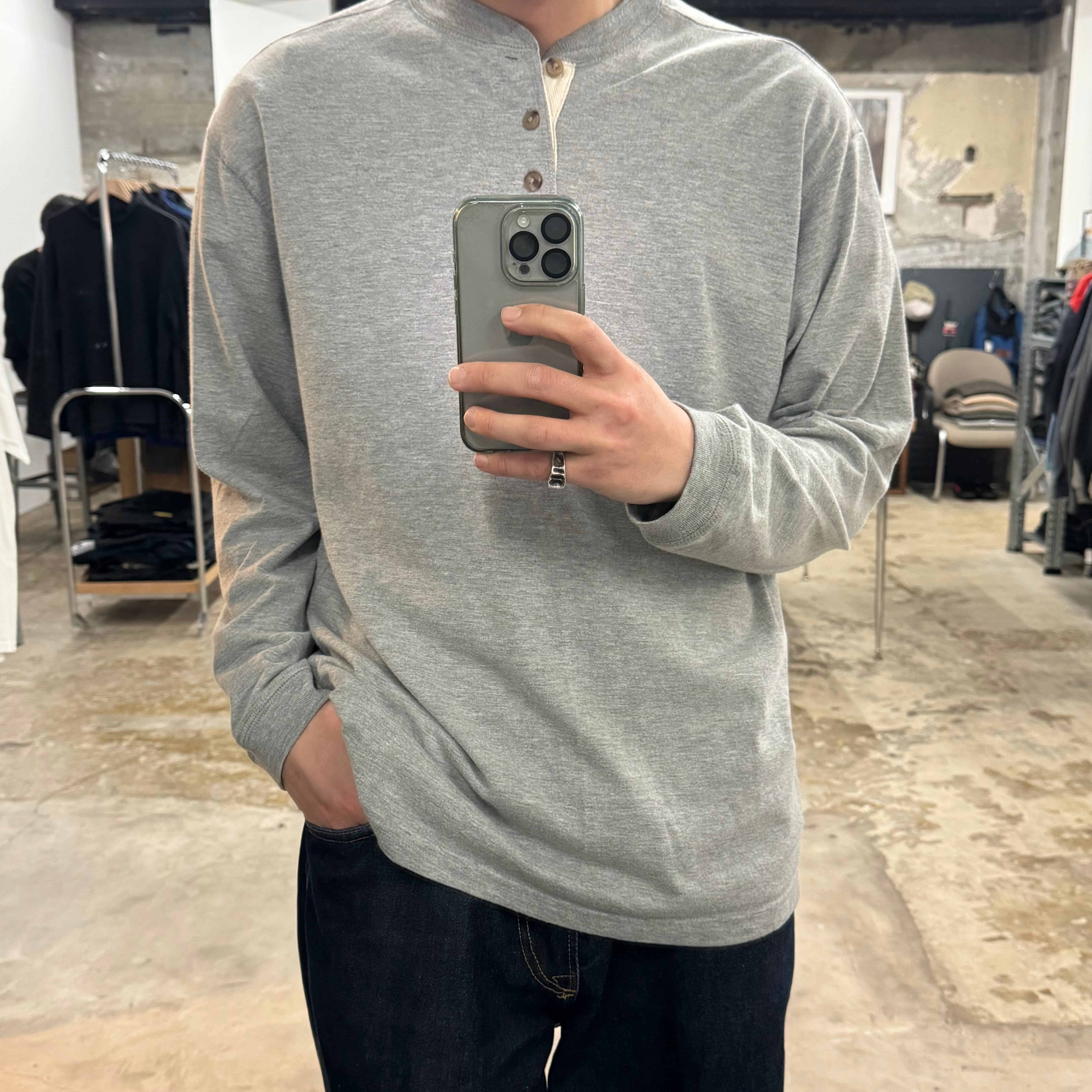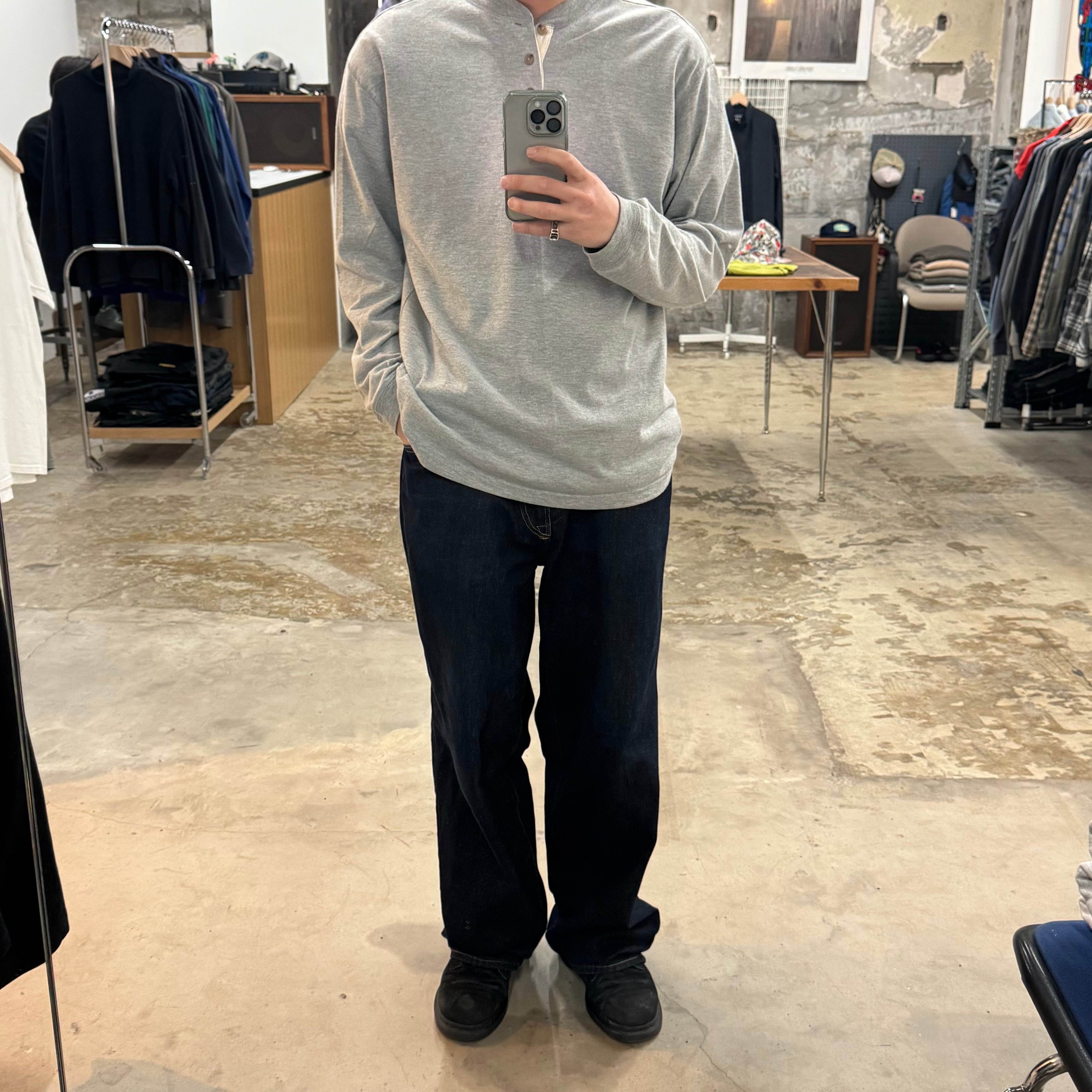 •SIZE L 肩幅 52cm 袖丈 58.5cm 身幅 57.5cm 着丈 71cm 175cm着用 •MATERIAL COTTON 60% POLYESTER 40% •COLOR グレー •CONDITION 使用感はございますが、目立った傷や汚れ等はございません。 f832