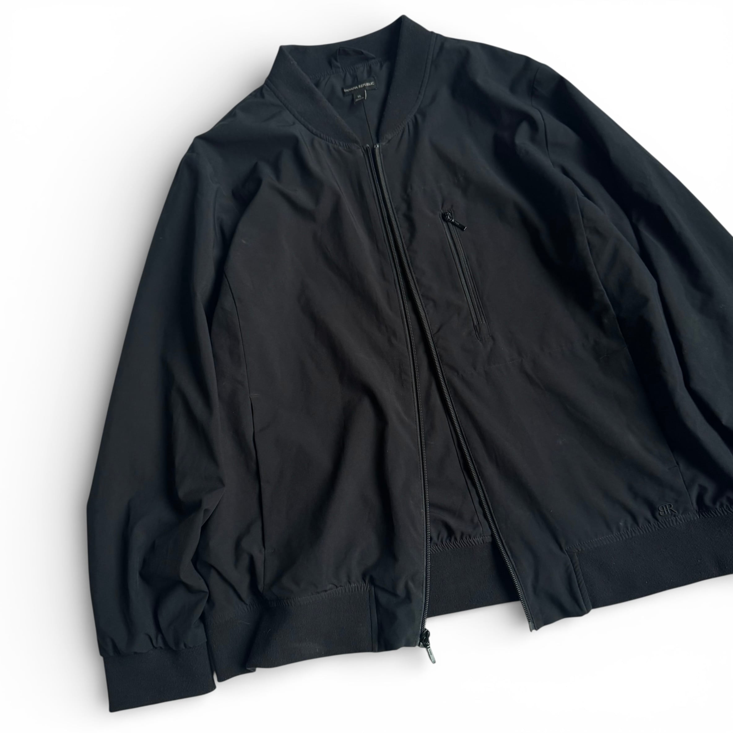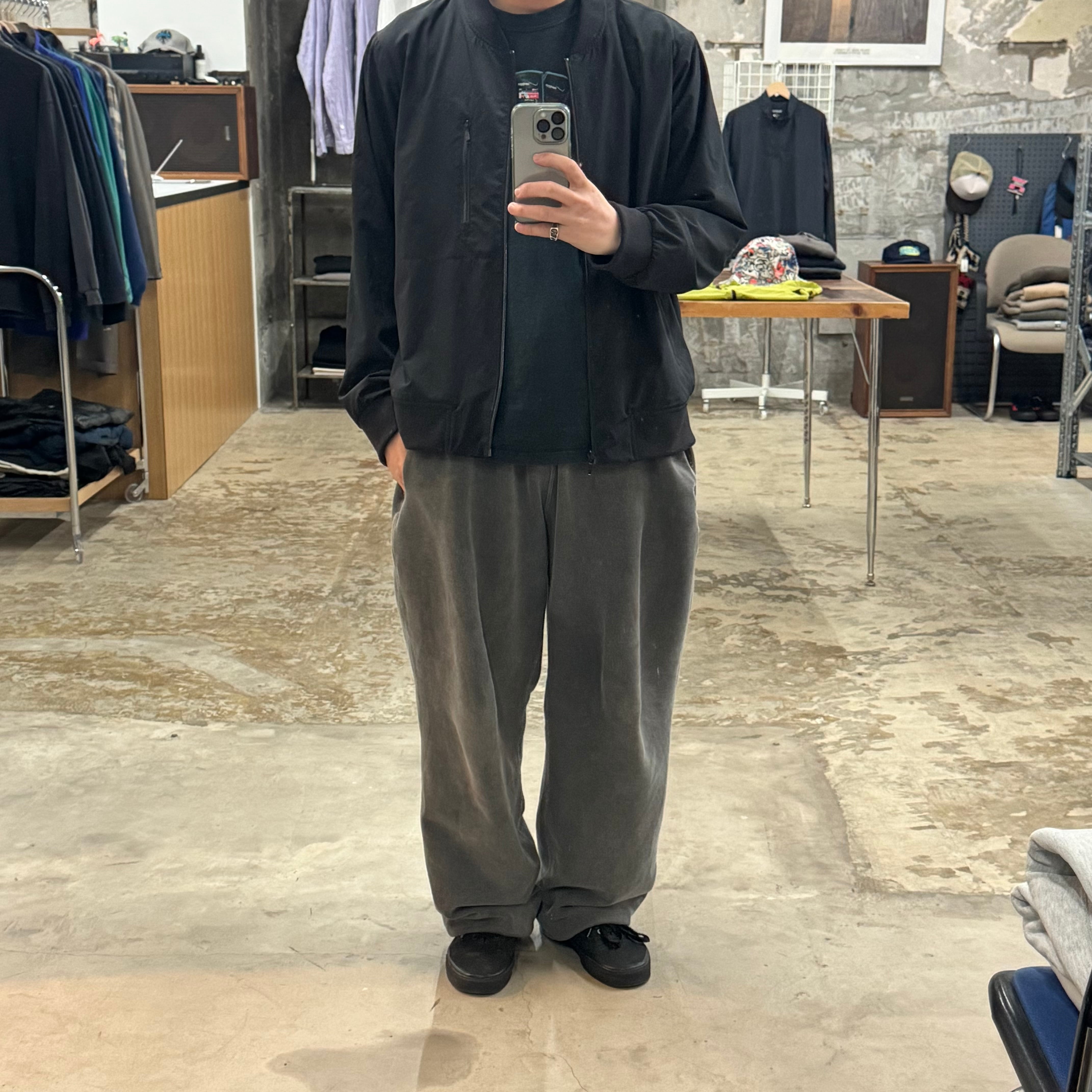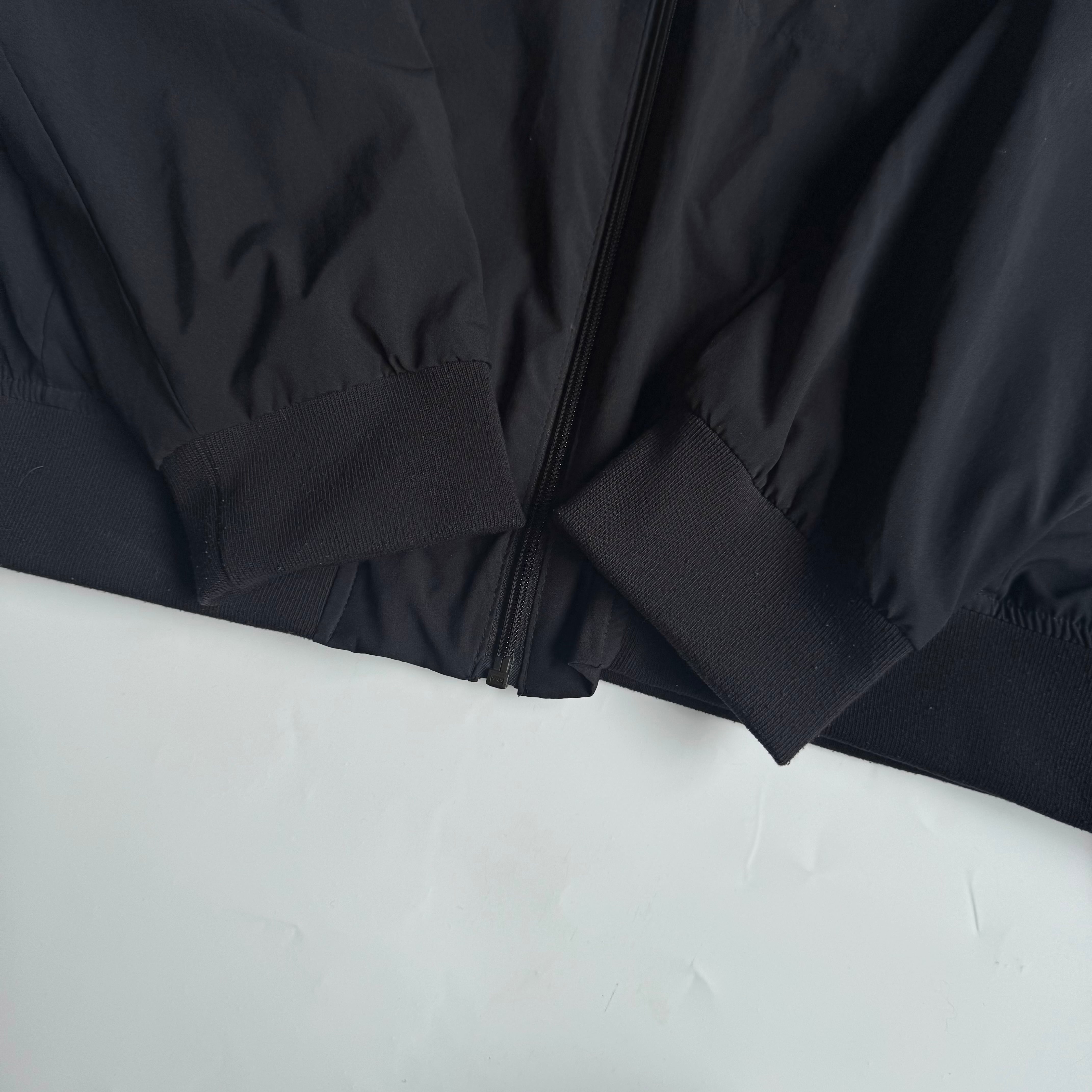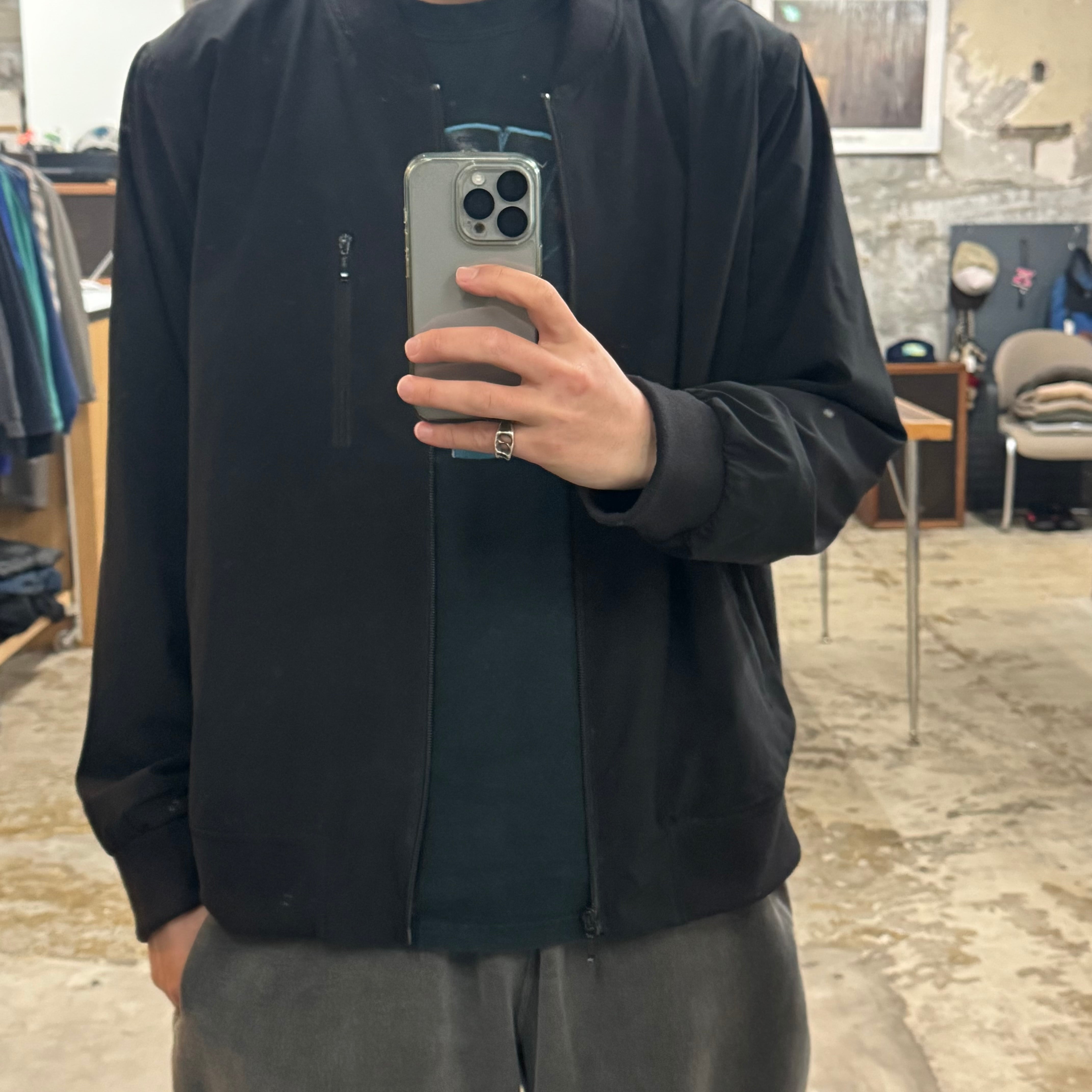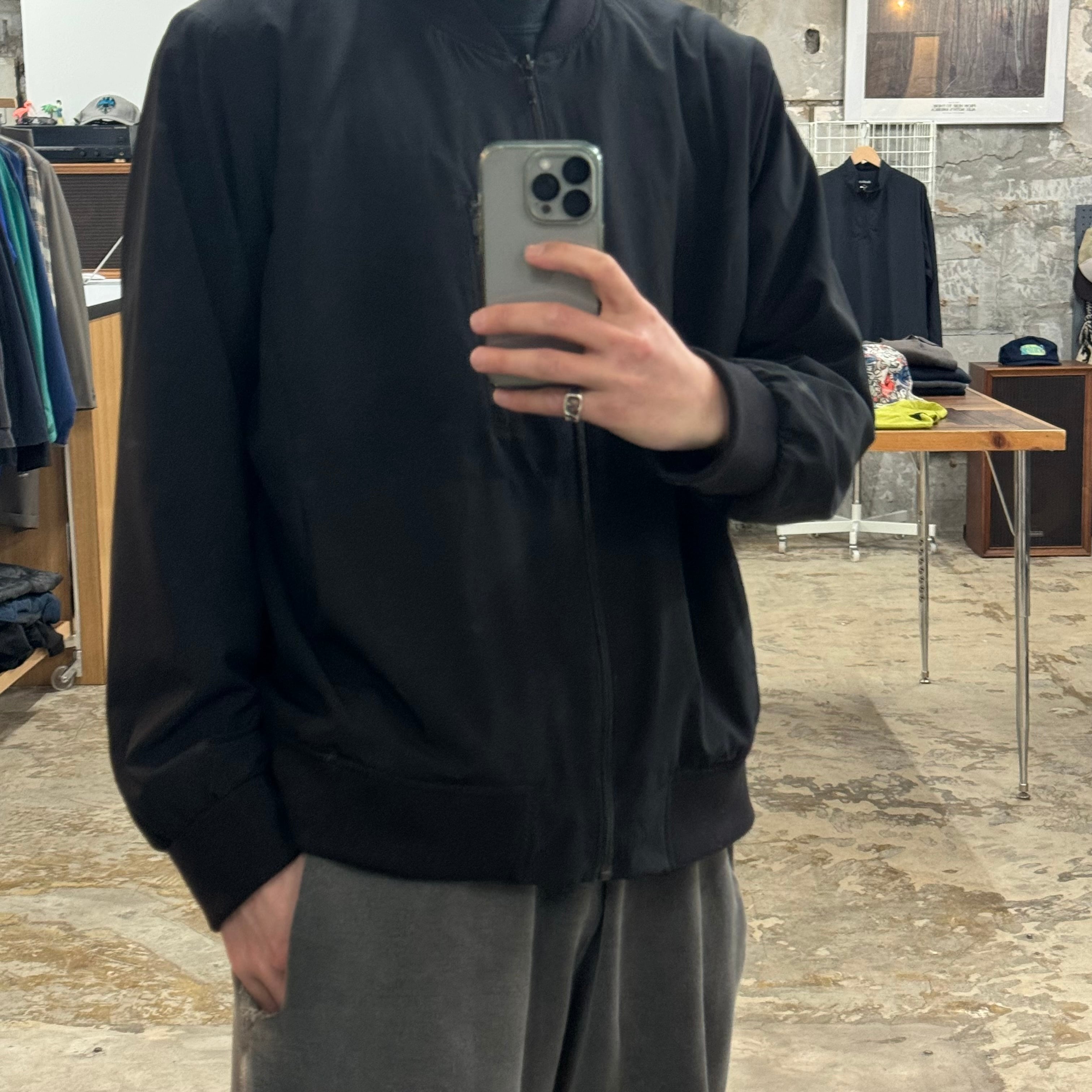 ミニマムでソリッド 諸所大人です •SIZE XL 肩幅 47cm 袖丈 63cm 身幅 64cm 着丈 64.5cm 175cm着用 •MATERIAL RECYCLED POLYESTER 86% SPANDEX 14% •COLOR ブラック •CONDITION 生地に多少の使用感。 写真にてご確認ください。 f831