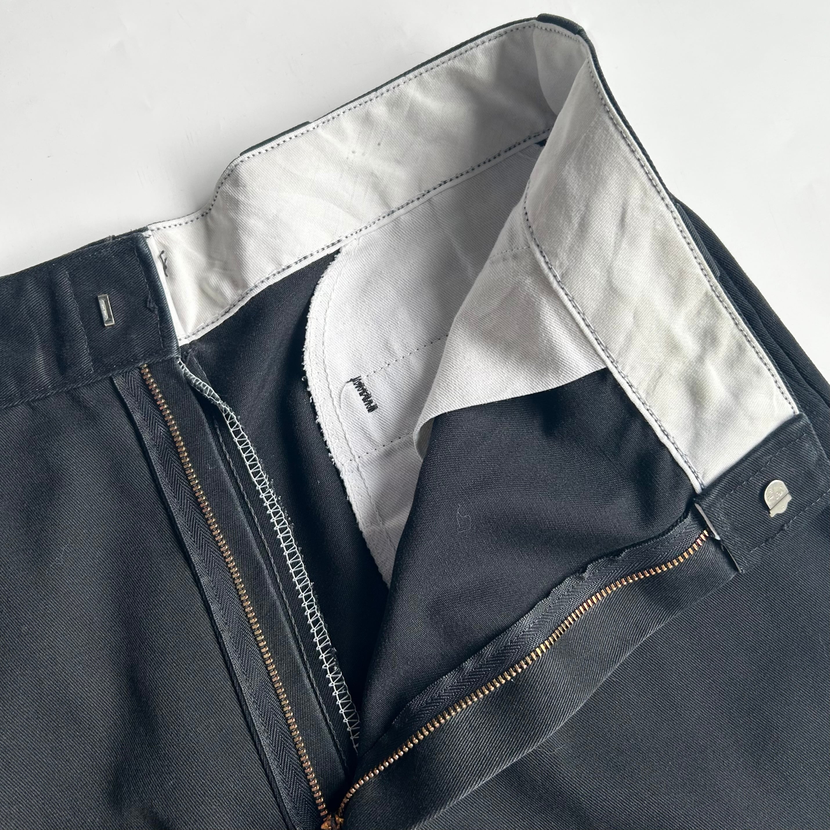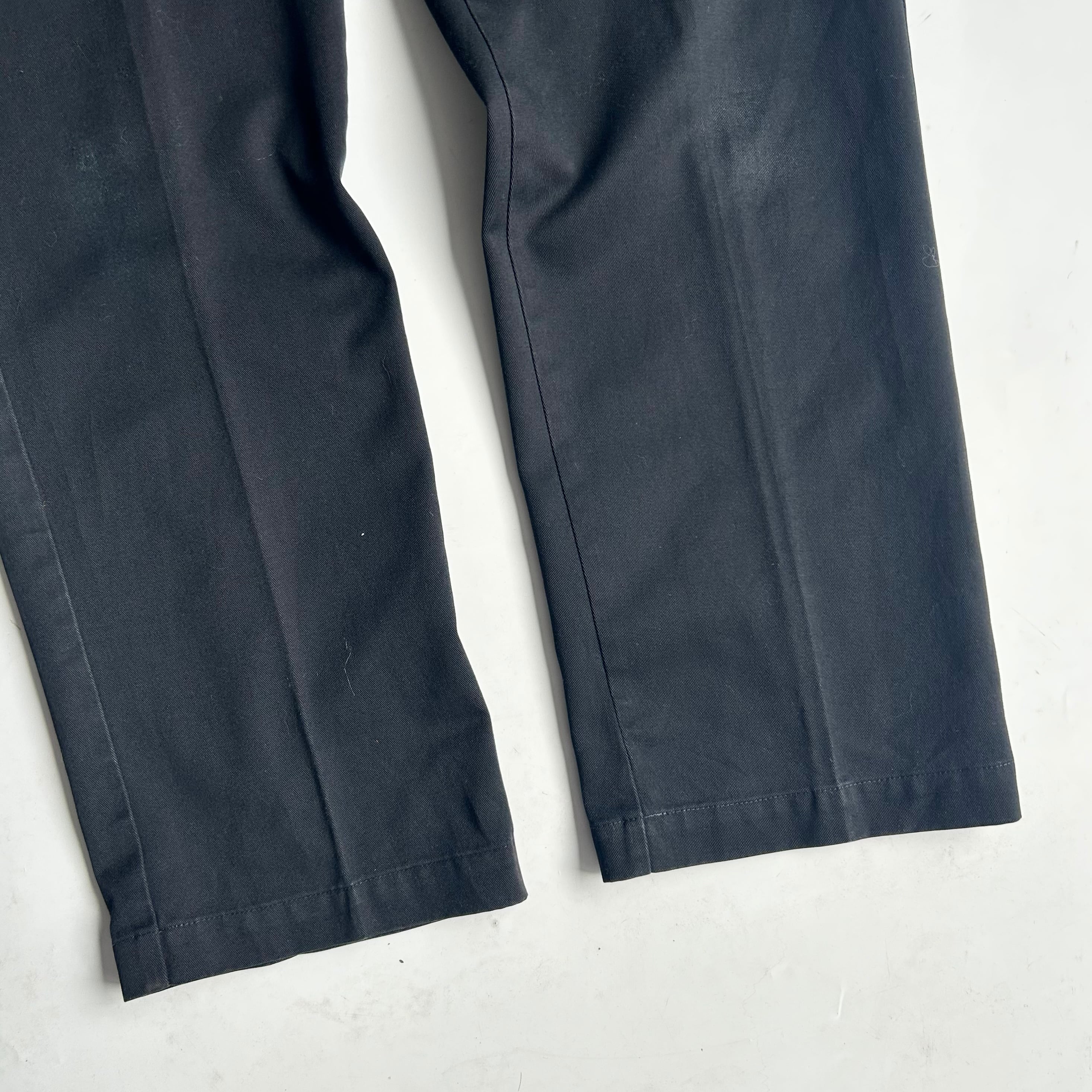 •SIZE W36L34 ウエスト 88cm 股上 35cm 股下 83cm わたり 31cm 裾幅 22.5cm •MATERIAL POLYESTER65% COTTON35% •COLOR ブラック •CONDITION 右膝に汚れあり 繊維タグ剥がれあり 写真参照 kt620