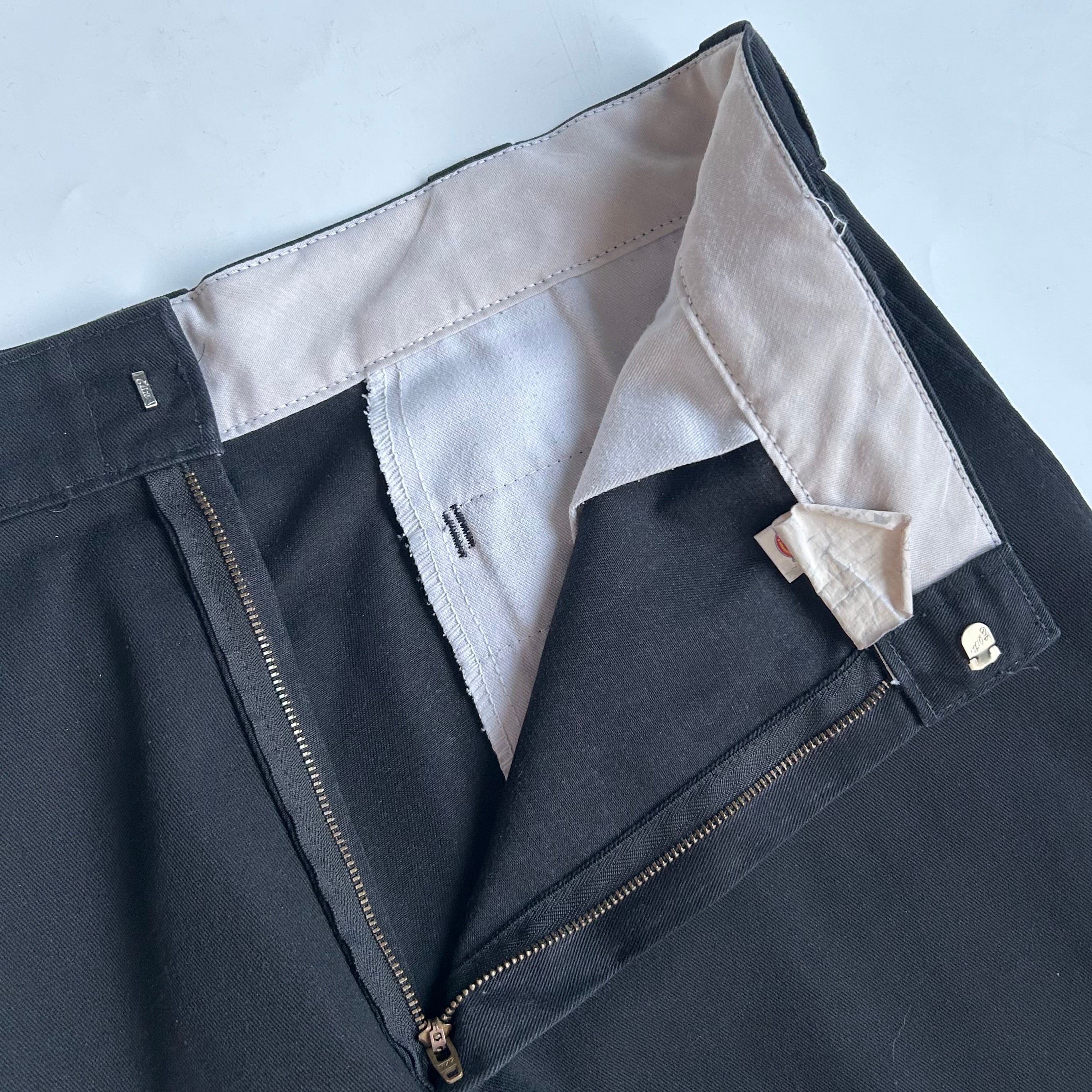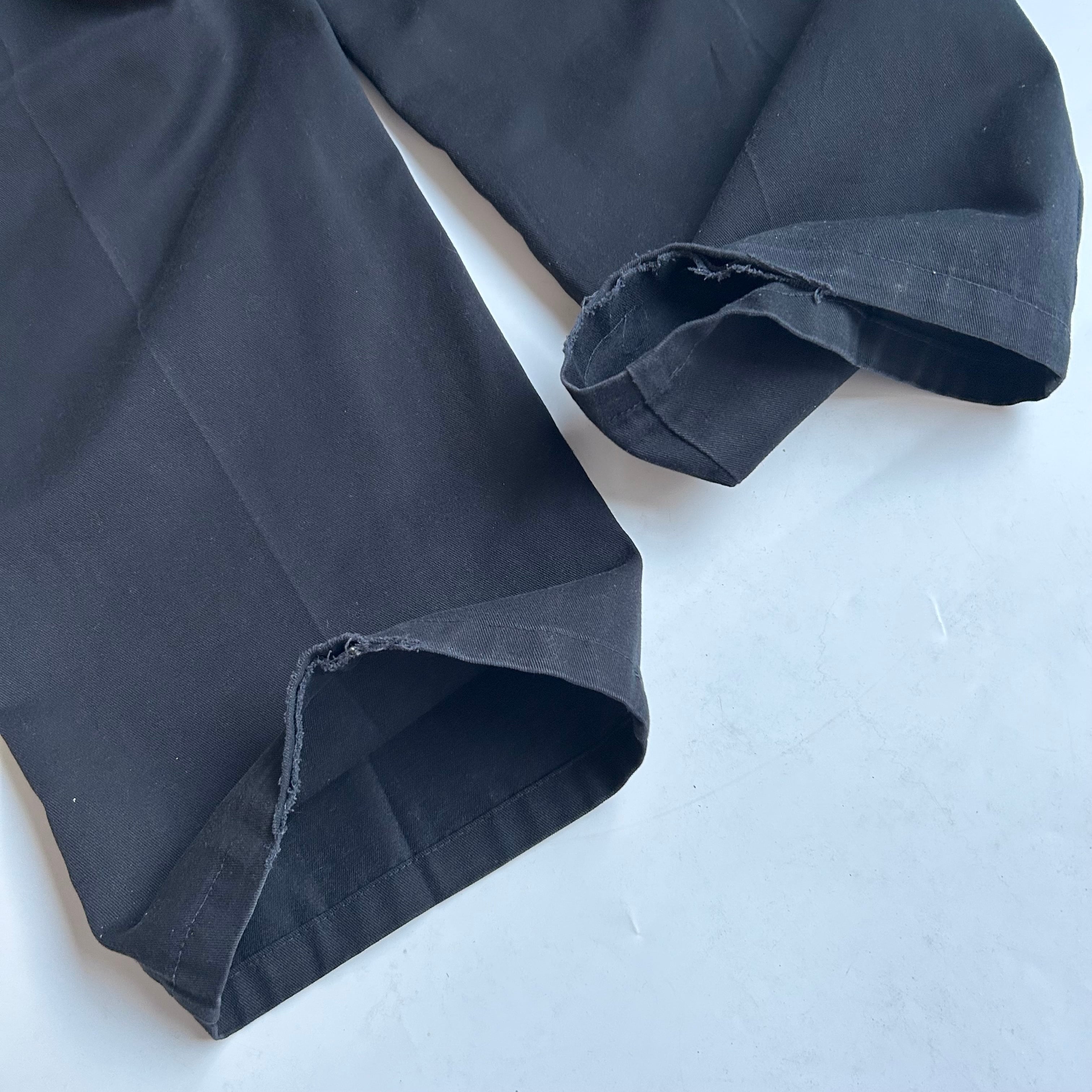 •SIZE W36L30 ウエスト 92cm 股上 32cm 股下 75.5cm わたり 33.5cm 裾幅 24cm •MATERIAL POLYESTER65% COTTON35% •COLOR ブラック •CONDITION 両裾にダメージあり gar2901