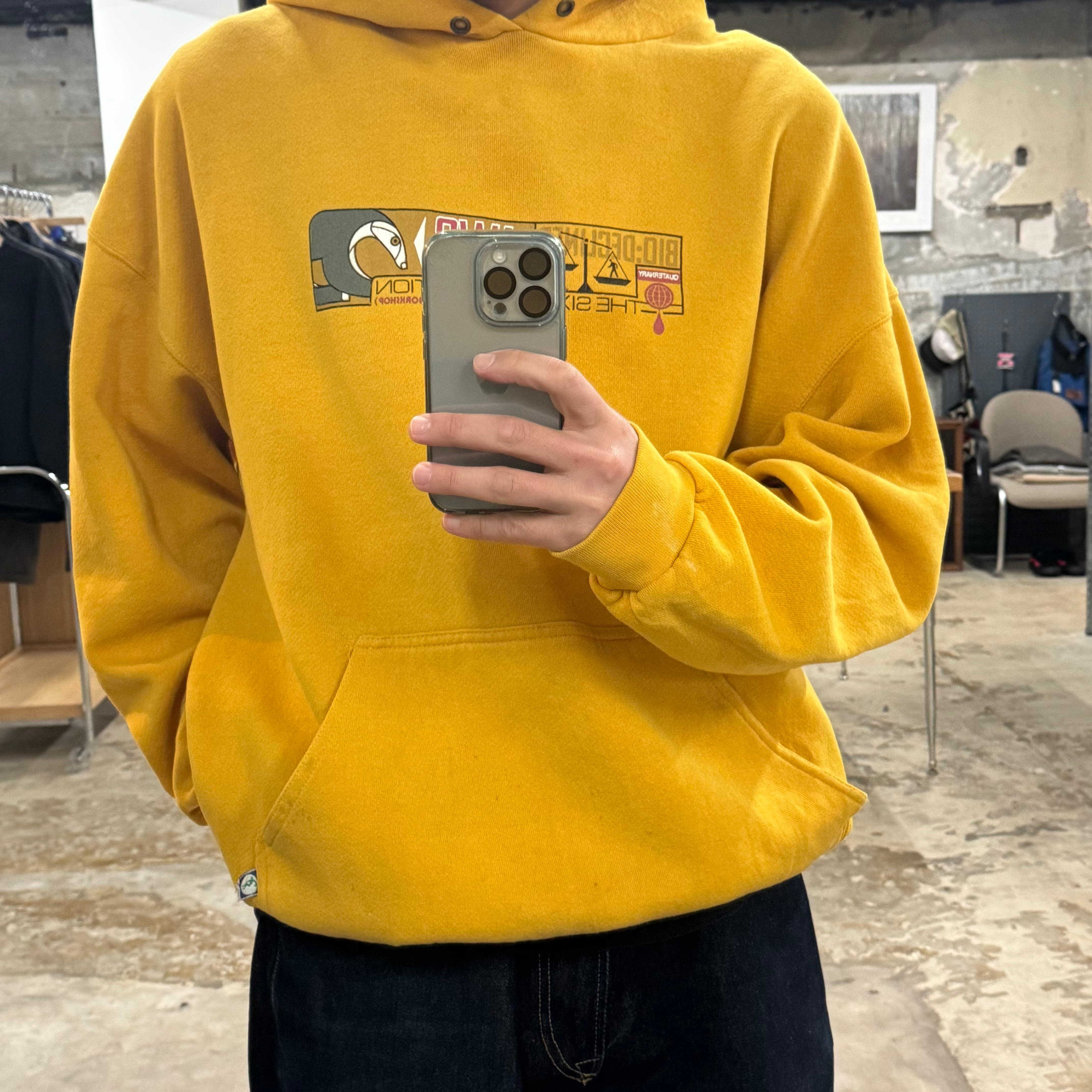 discusボディ ナイスカラーです •SIZE XXL 肩幅 71cm 袖丈 58cm 身幅 68cm 着丈 70.5cm 175cm着用 •MATERIAL COTTON 80% POLYESTER 20% •COLOR イエローマスタード系 •CONDITION 全体的に使用感、汚れ。 写真にてご確認ください。 kt587