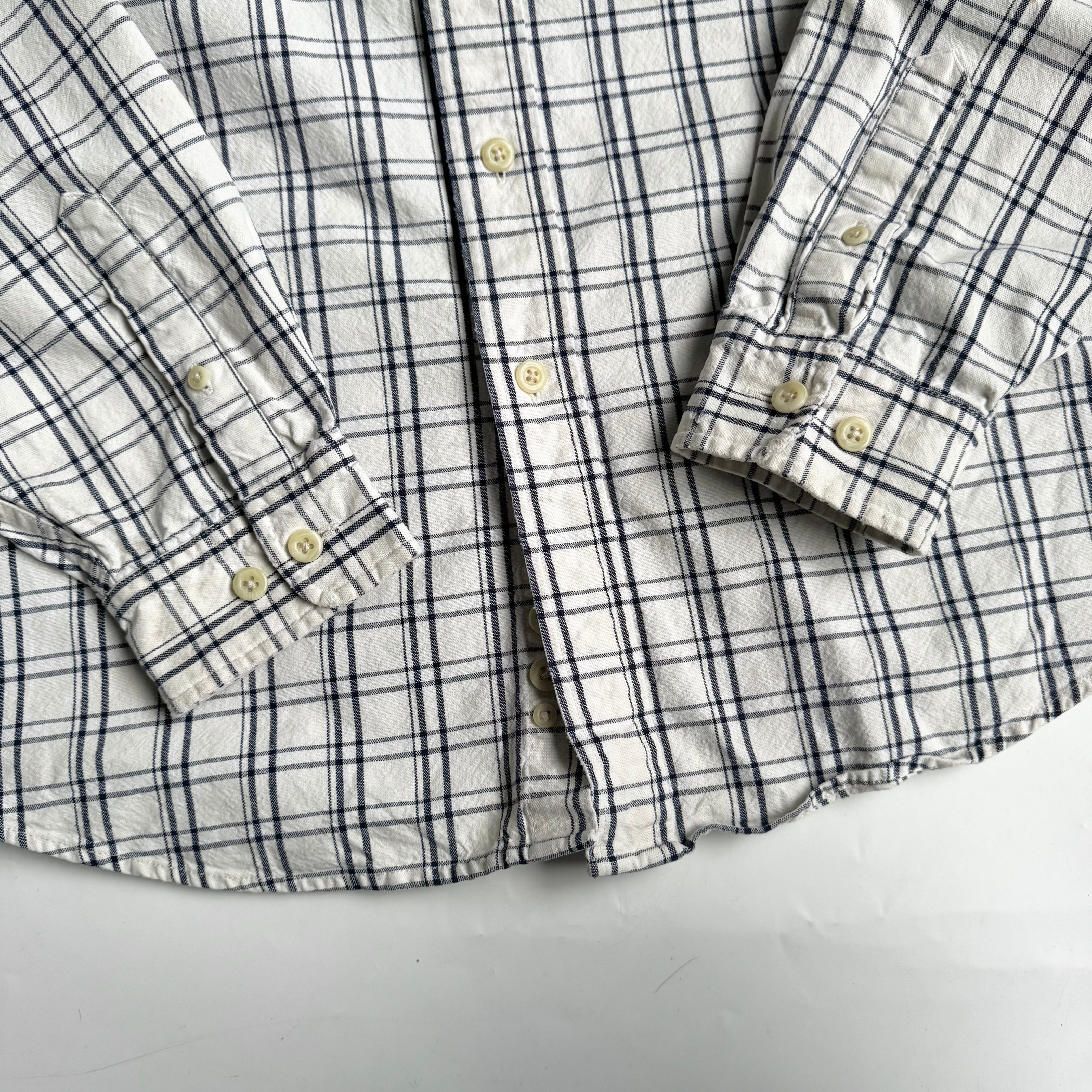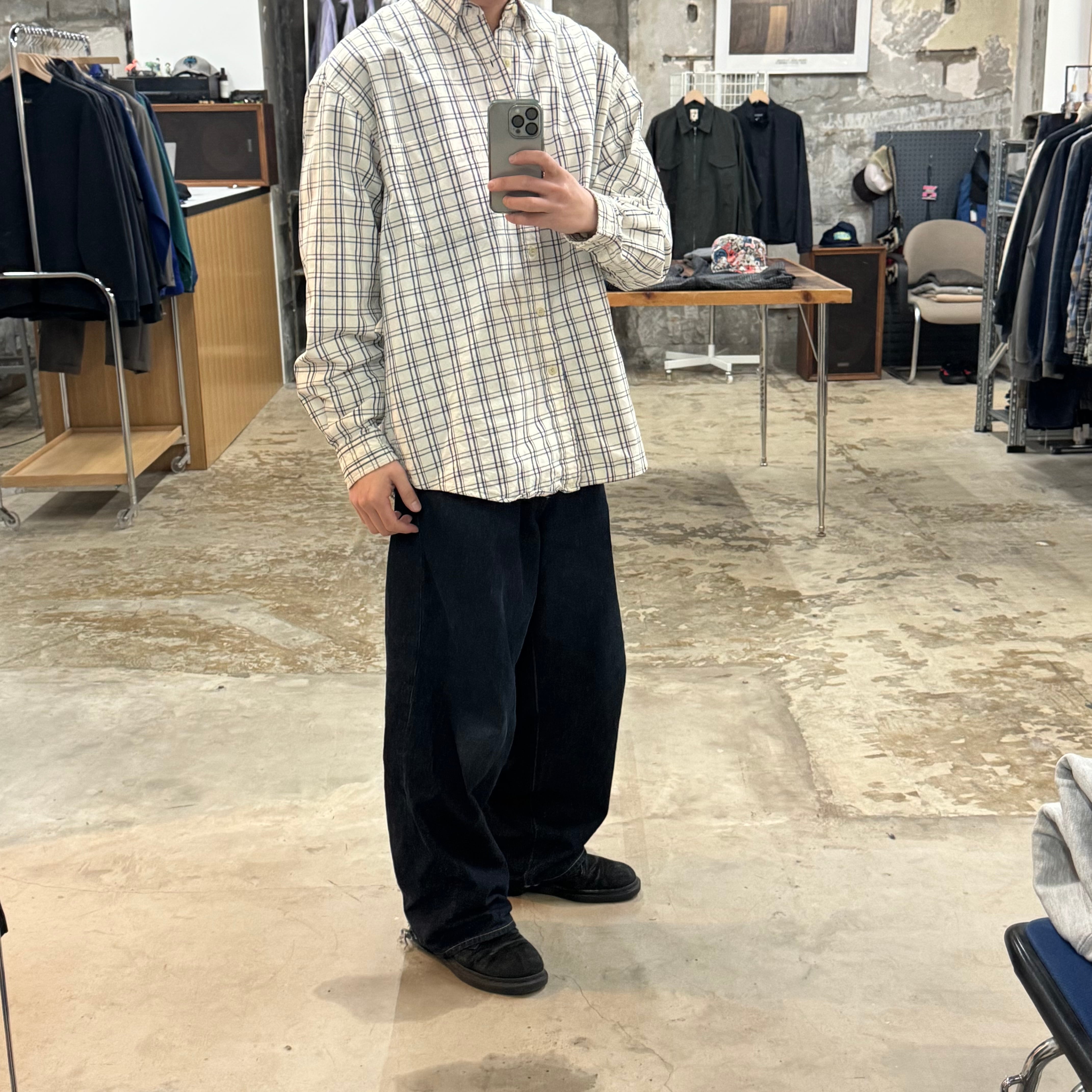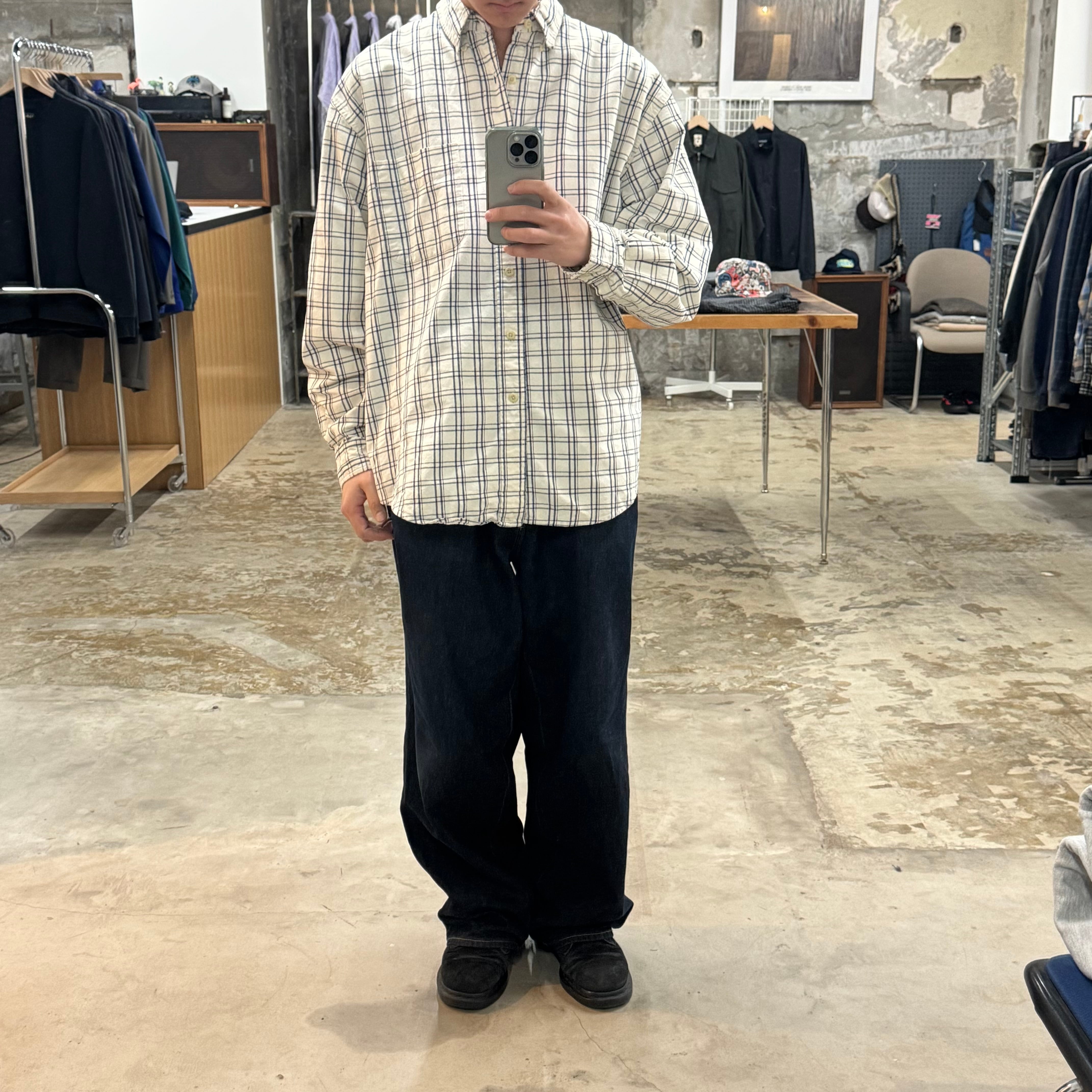 •SIZE L 肩幅 56cm 袖丈 63cm 身幅 66cm 着丈 82cm 175cm着用 •MATERIAL COTTON 100% •COLOR オフホワイト系 •CONDITION 使用感、襟周りに使用感、右袖口にダメージ、背面右肩に汚れ。写真にてご確認ください。 ya6613