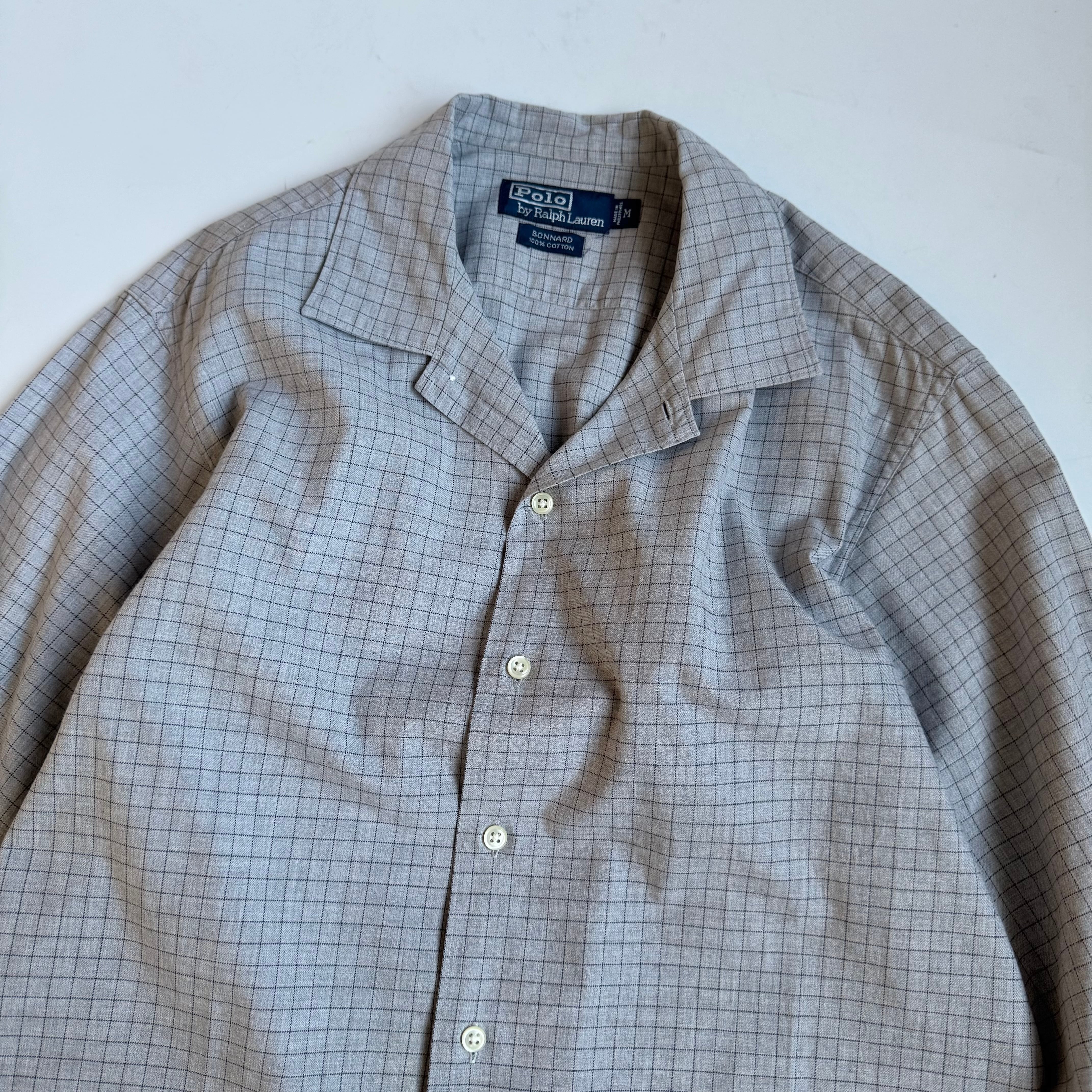 ラルフのオープンカラー品番”BONNARD” サラッとしてて大人です •SIZE M 肩幅 46.5cm 袖丈 57.5cm 身幅 56cm 着丈 82cm 175cm着用 •MATERIAL COTTON 100% •COLOR グレー系 •CONDITION 使用感はございますが、目立った傷や汚れ等はございません。 1134