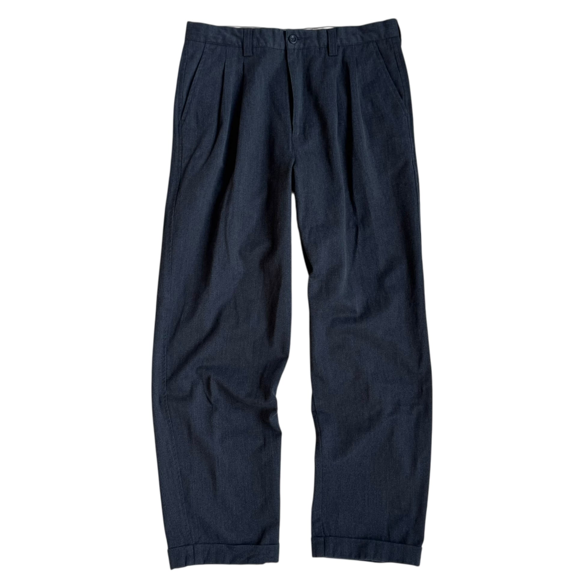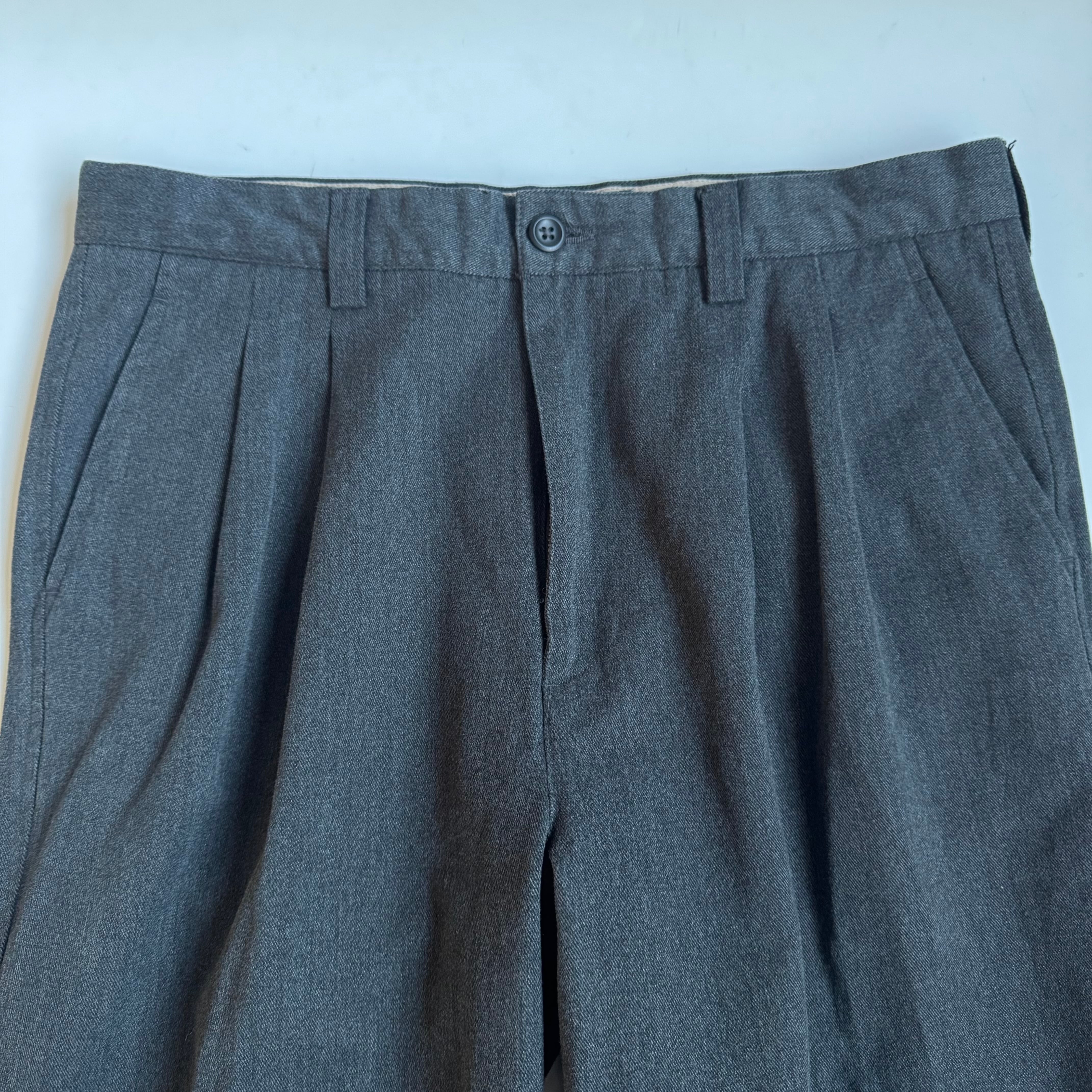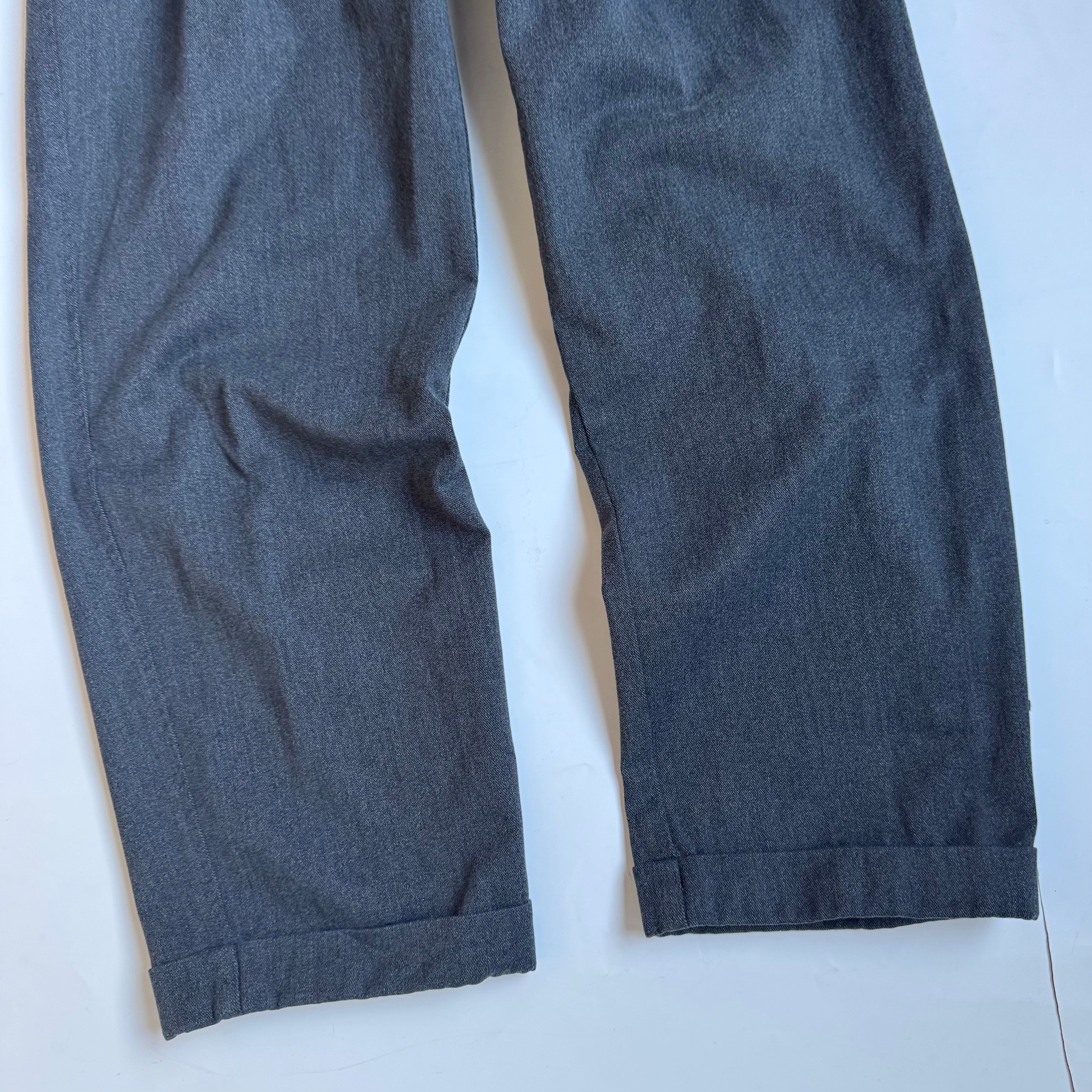 当店的隠れ定番 ディッキーズライクな綿ポリシャキっと系ワークトラウザー •SIZE 34/32 ウエスト 86cm 股上 31.5cm 股下 76cm 渡り 32.5cm 裾幅 22cm 175cm着用 •MATERIAL COTTON 81% POLYESTER 19% •COLOR グレー •CONDITION 使用感はございますが、目立ったダメージや汚れはございません。 kt629