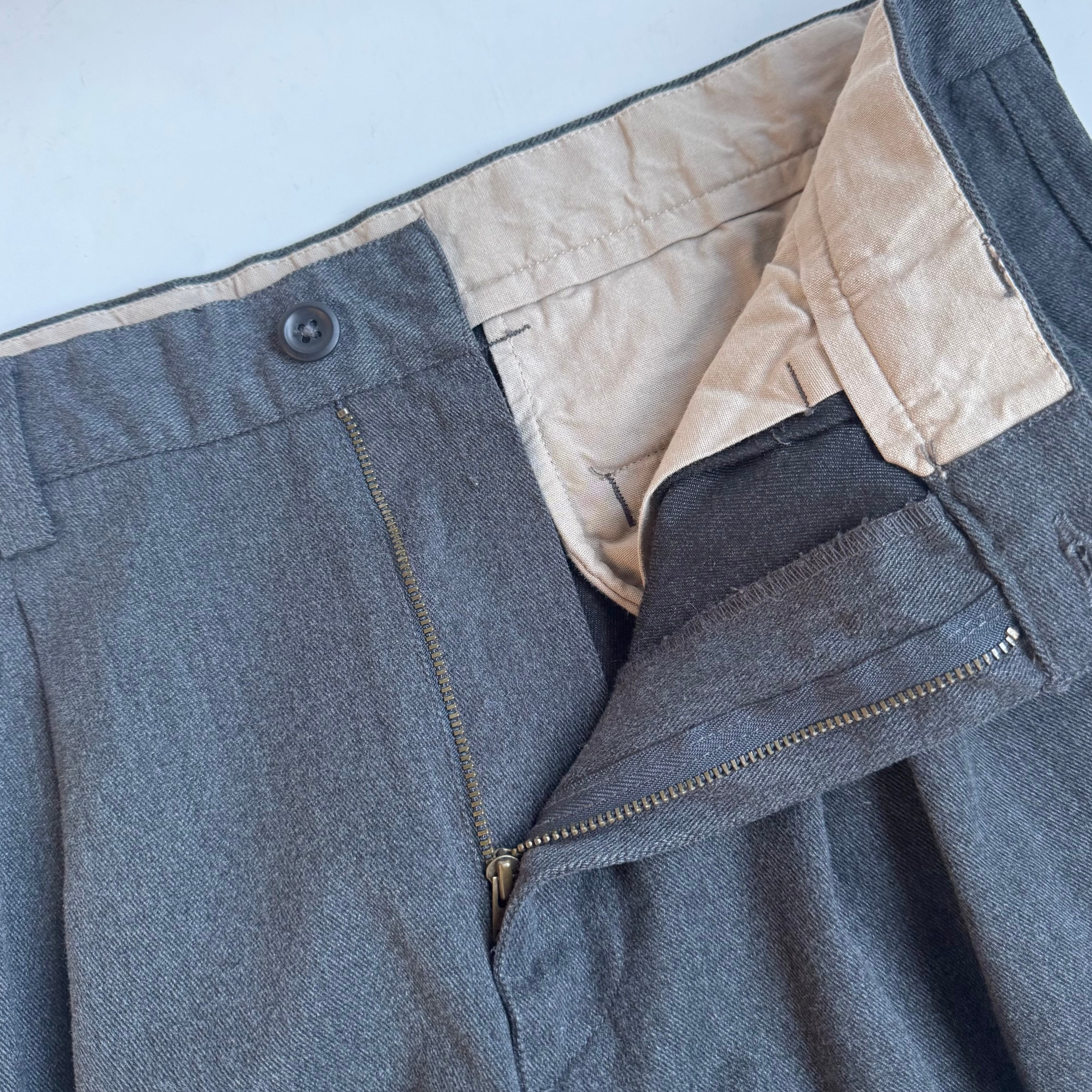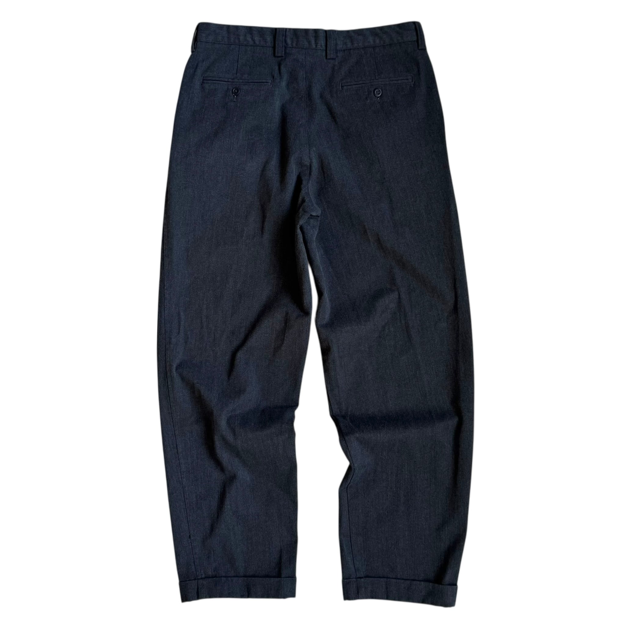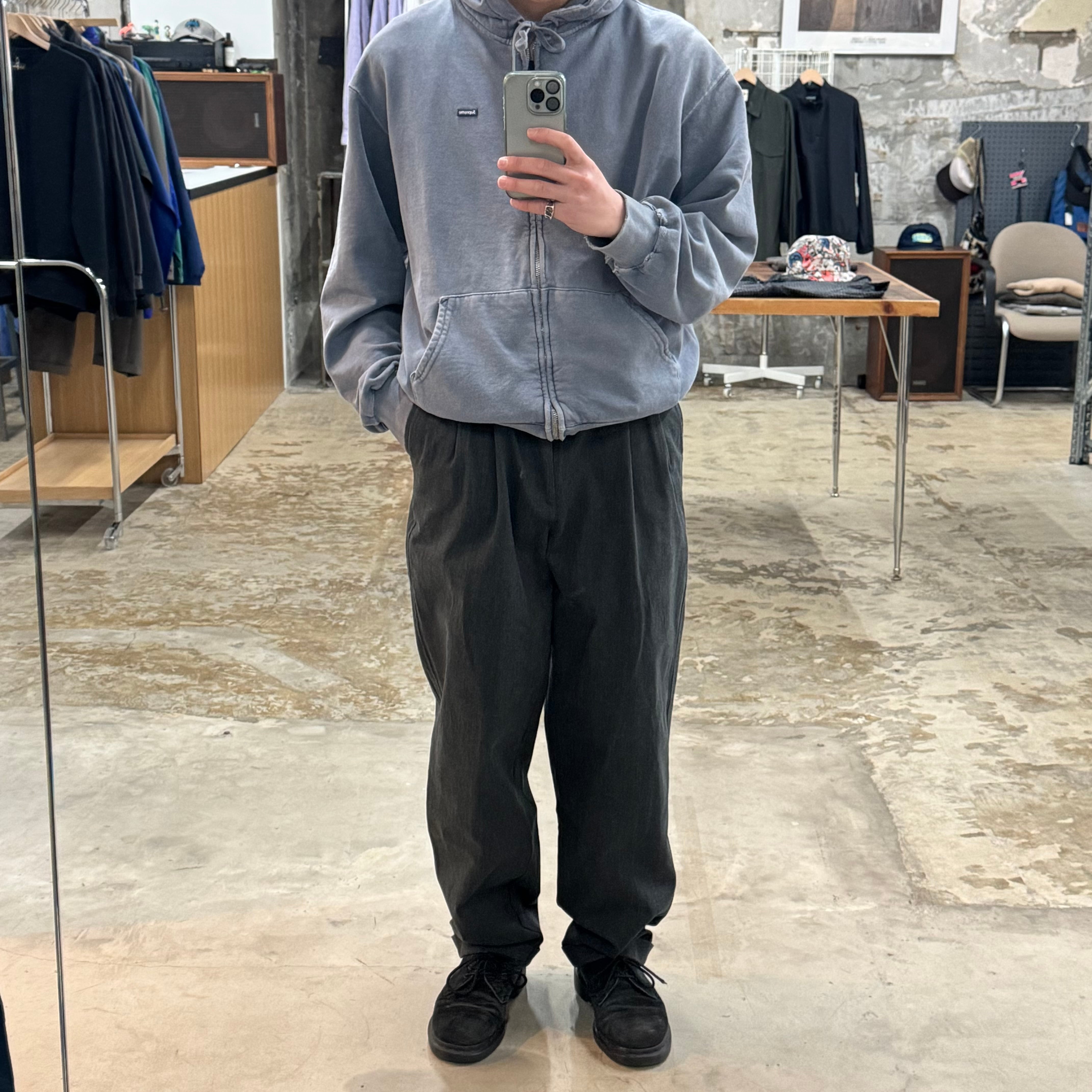 当店的隠れ定番 ディッキーズライクな綿ポリシャキっと系ワークトラウザー •SIZE 34/32 ウエスト 86cm 股上 31.5cm 股下 76cm 渡り 32.5cm 裾幅 22cm 175cm着用 •MATERIAL COTTON 81% POLYESTER 19% •COLOR グレー •CONDITION 使用感はございますが、目立ったダメージや汚れはございません。 kt629