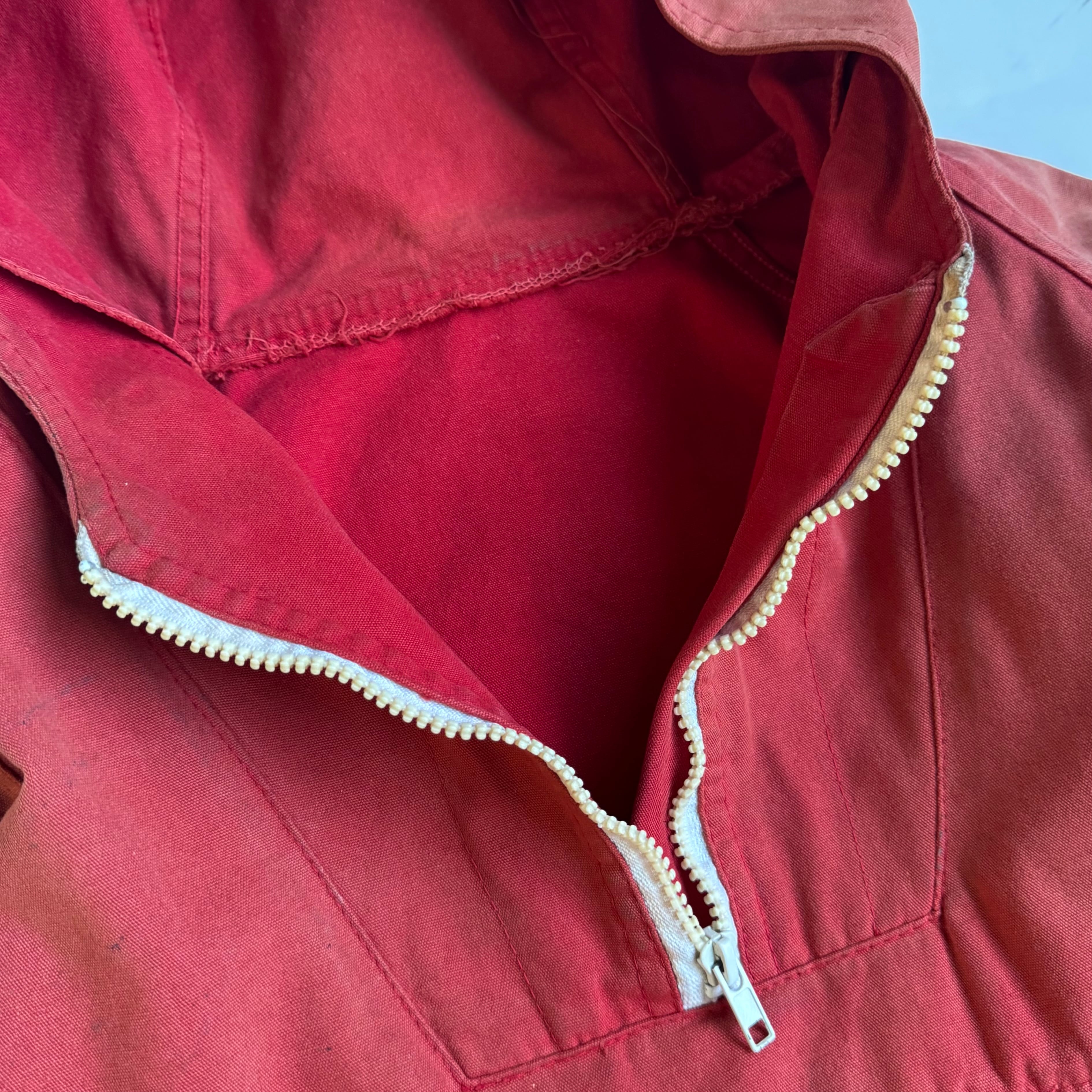 いい感じのフェード感 ガシッと強めのコットン◎ •SIZE 表記不明 裄丈 86cm 身幅 63cm 着丈 70cm 175cm着用 •MATERIAL 恐らく COTTON •COLOR 霞んだレッド系 •CONDITION 使用感、ヤケ、アタリ、フェード感。 いい雰囲気です。写真にてご確認下さい。 1136