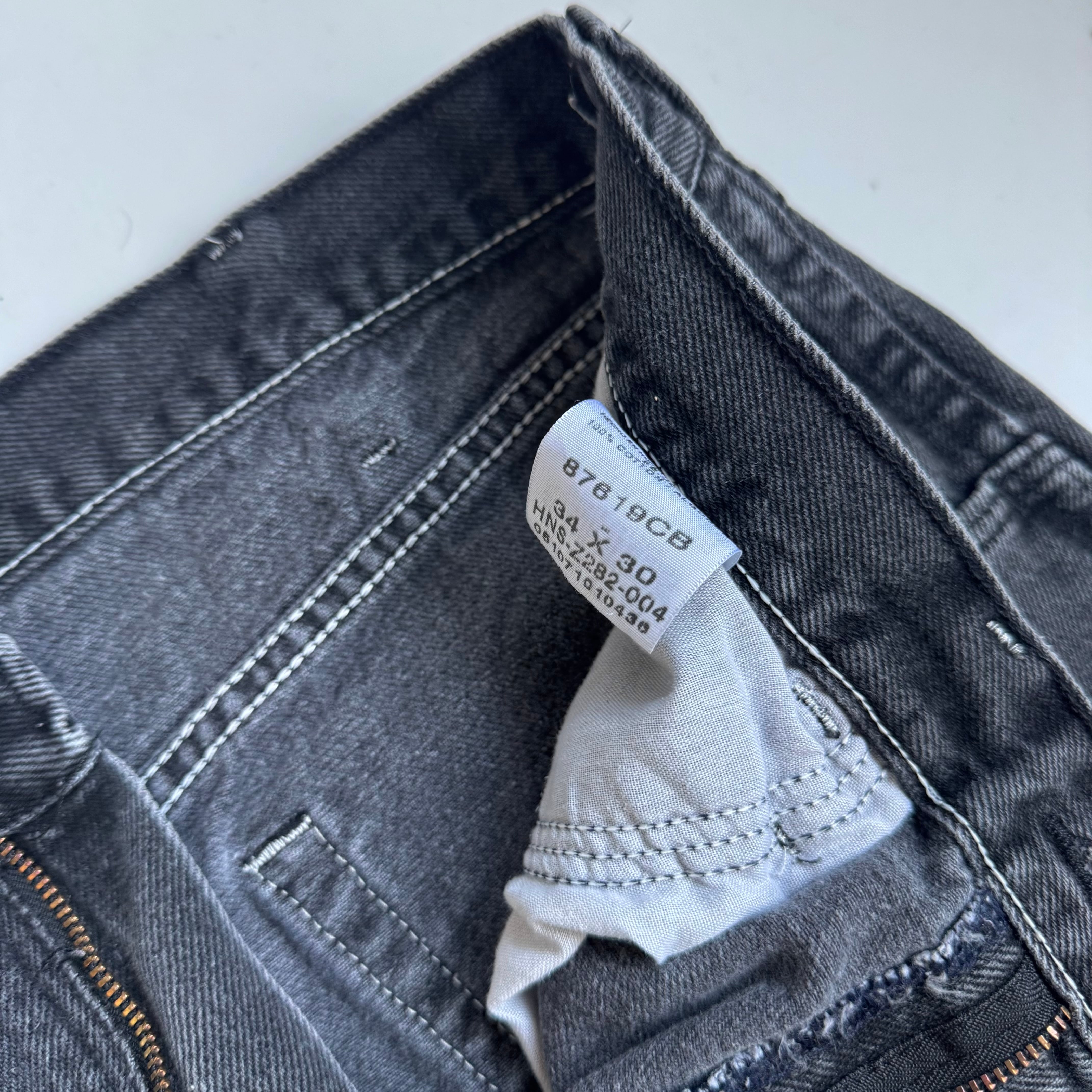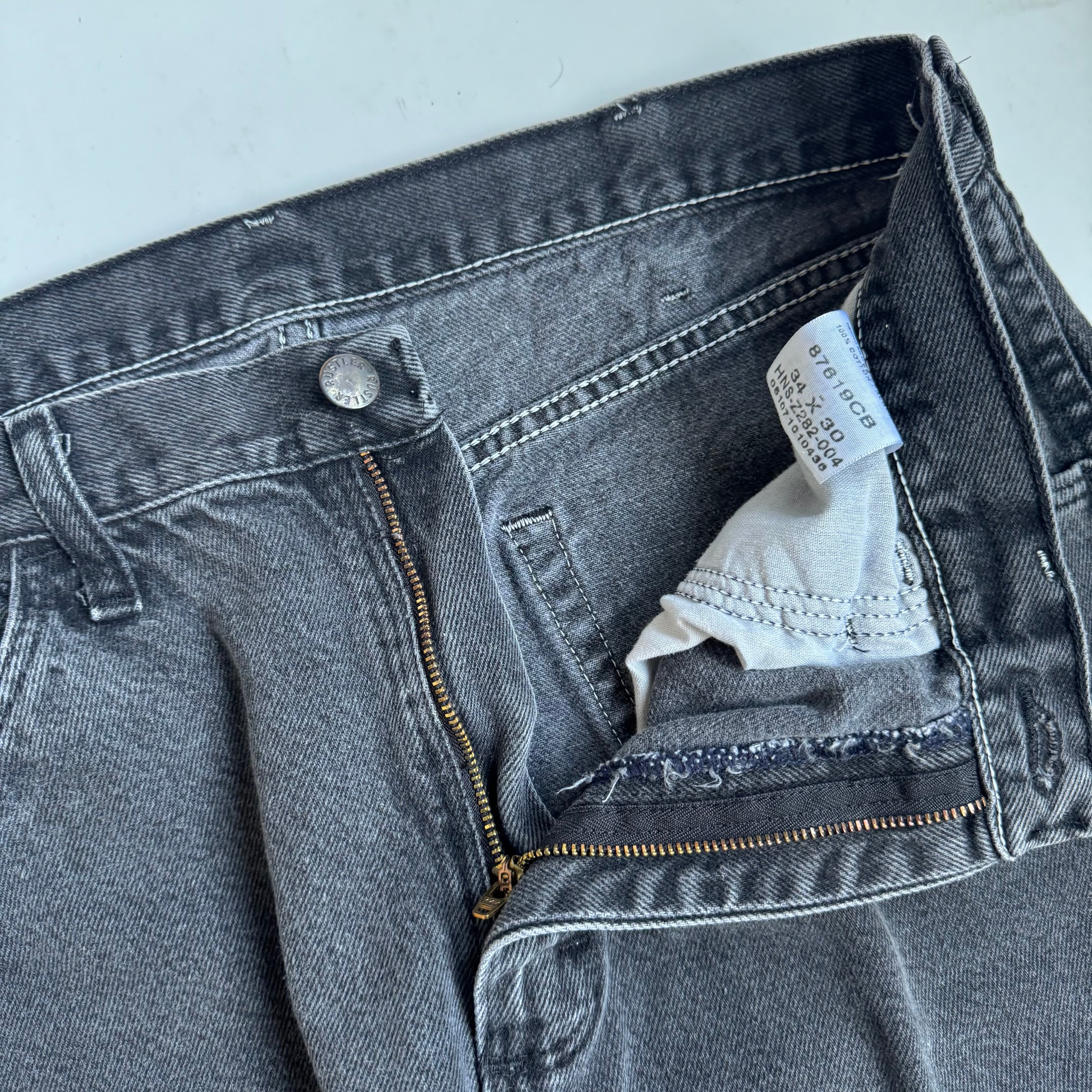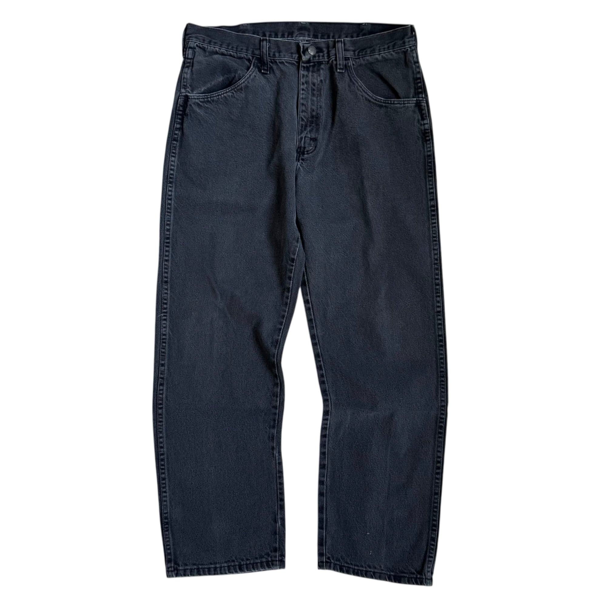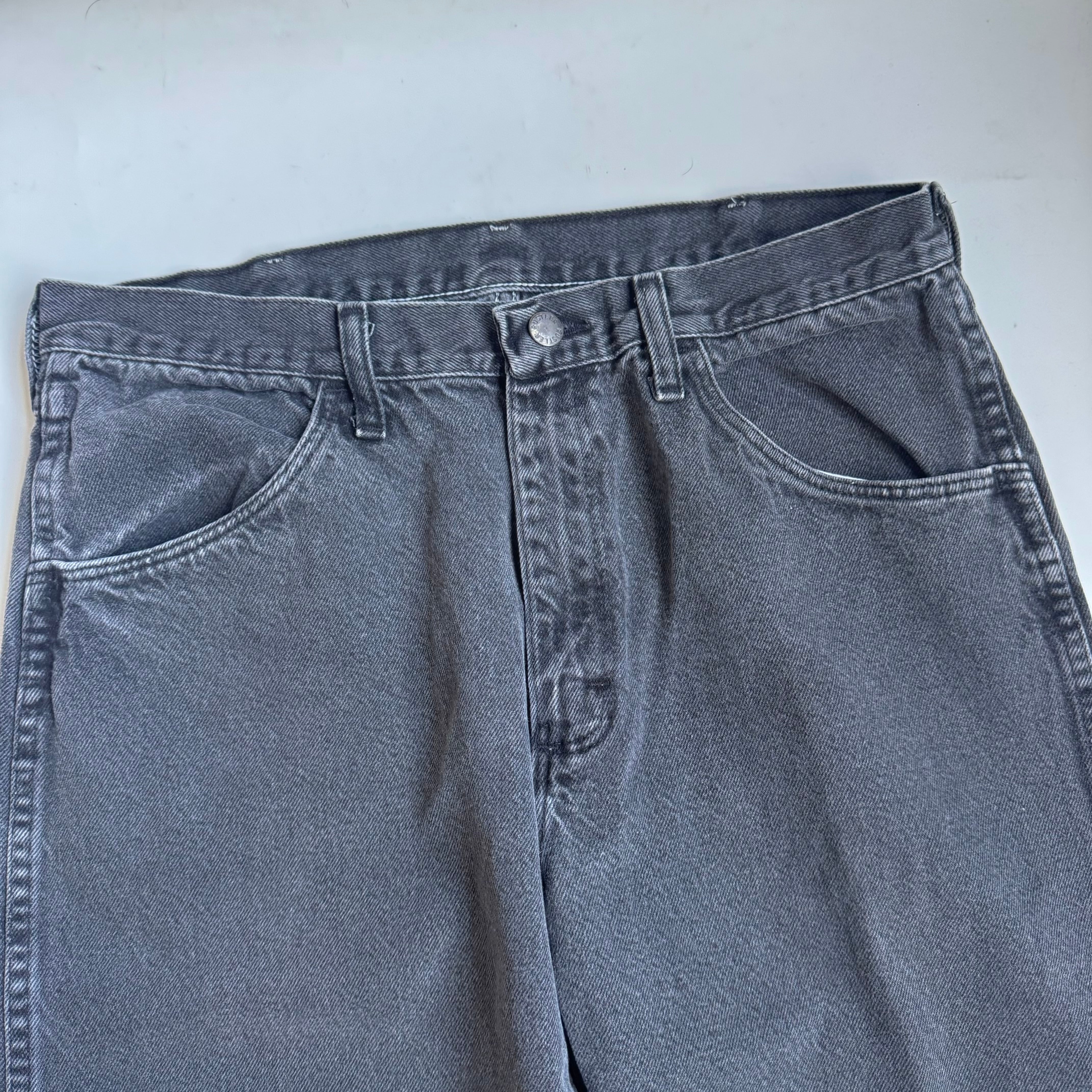 •SIZE 34×30 ウエスト 88cm 股上 30.5cm 股下 74.5cm 渡り 31cm 裾幅 21.5cm •MATERIAL COTTON 100% •COLOR ブラック •CONDITION 使用感、裾に汚れ。 写真にてご確認下さい。 ya6526