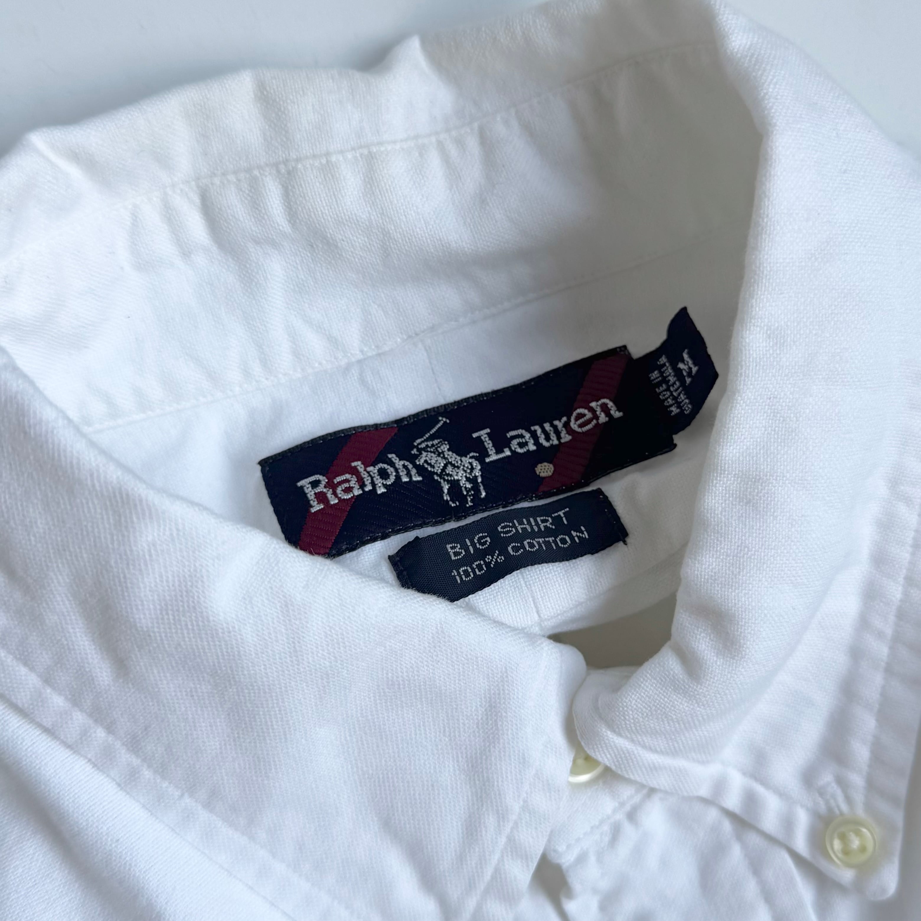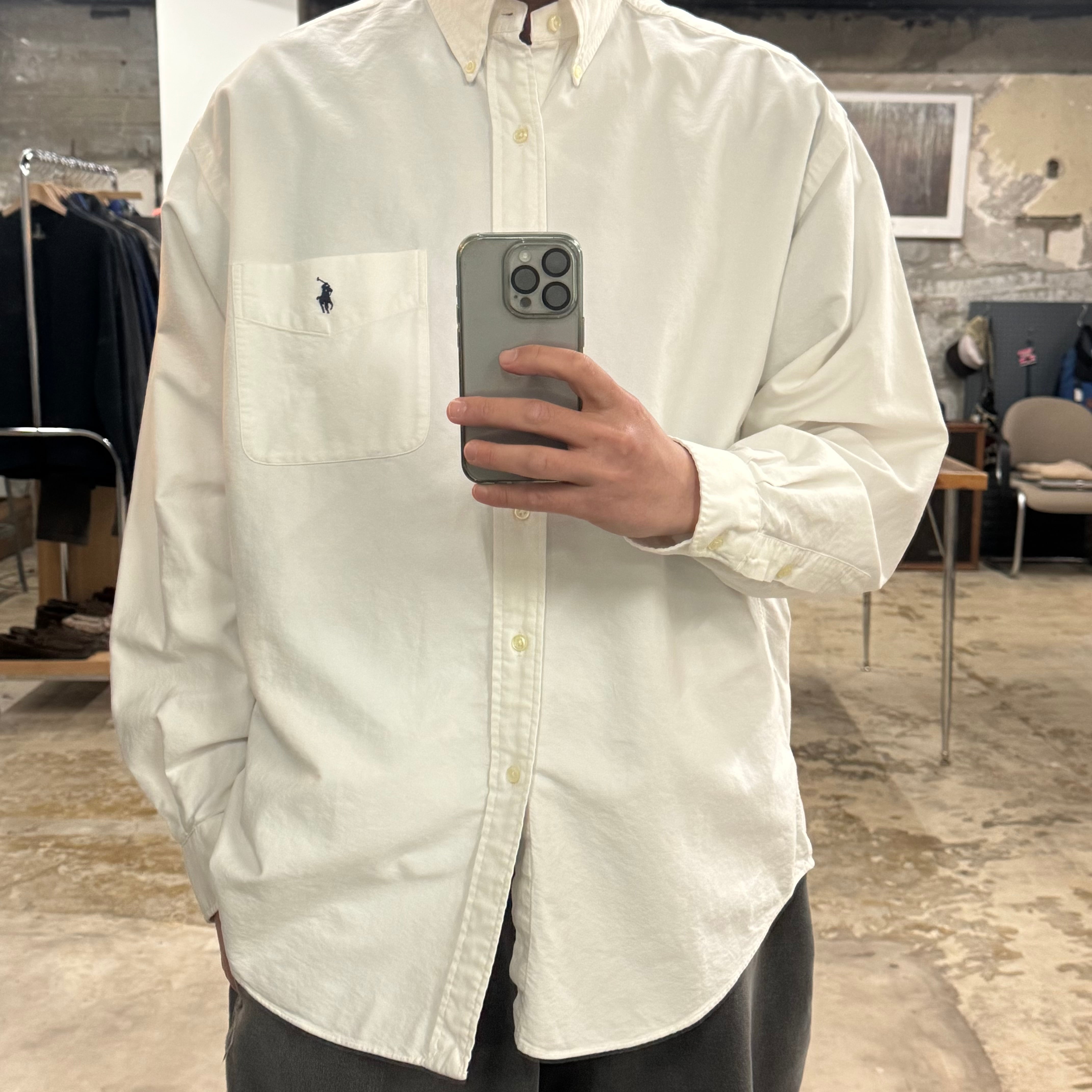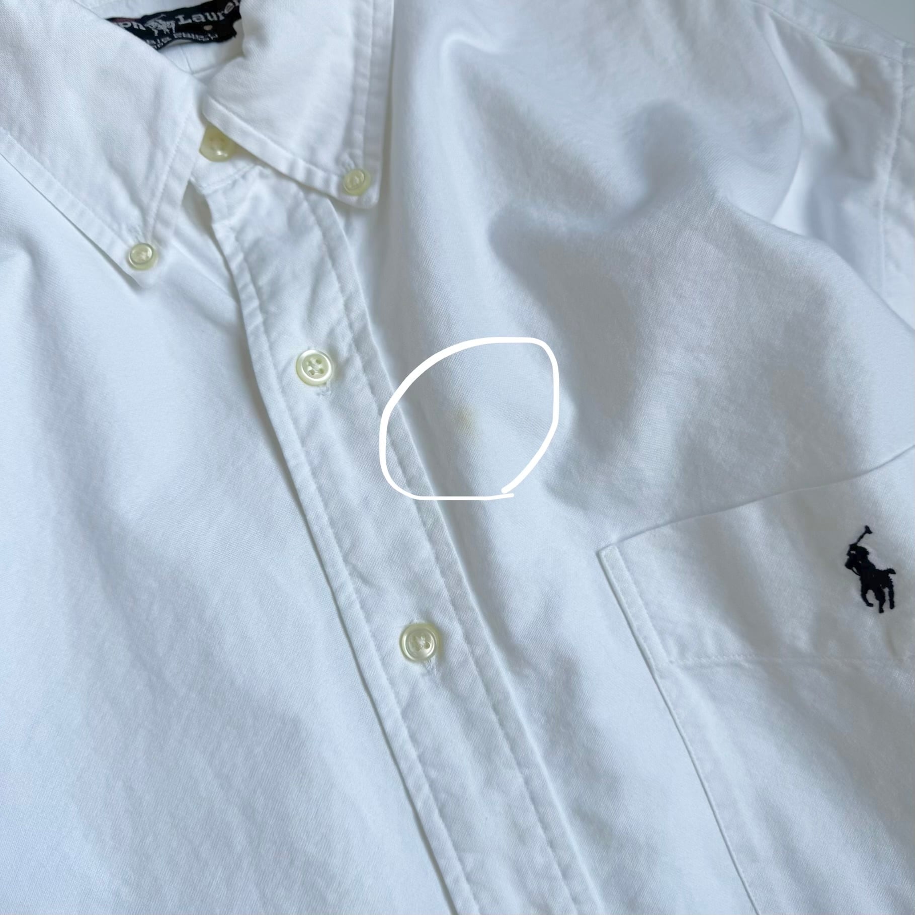 春先活躍しそうな 白のビッグシャツ 清涼感◎ •SIZE M 肩幅 53.5cm 袖丈 62cm 身幅 64.5cm 着丈 81cm(襟下から) •MATERIAL Cotton100% •COLOR ホワイト •CONDITION 左胸辺りにシミがあります。 写真にてご確認下さい。 ya6550