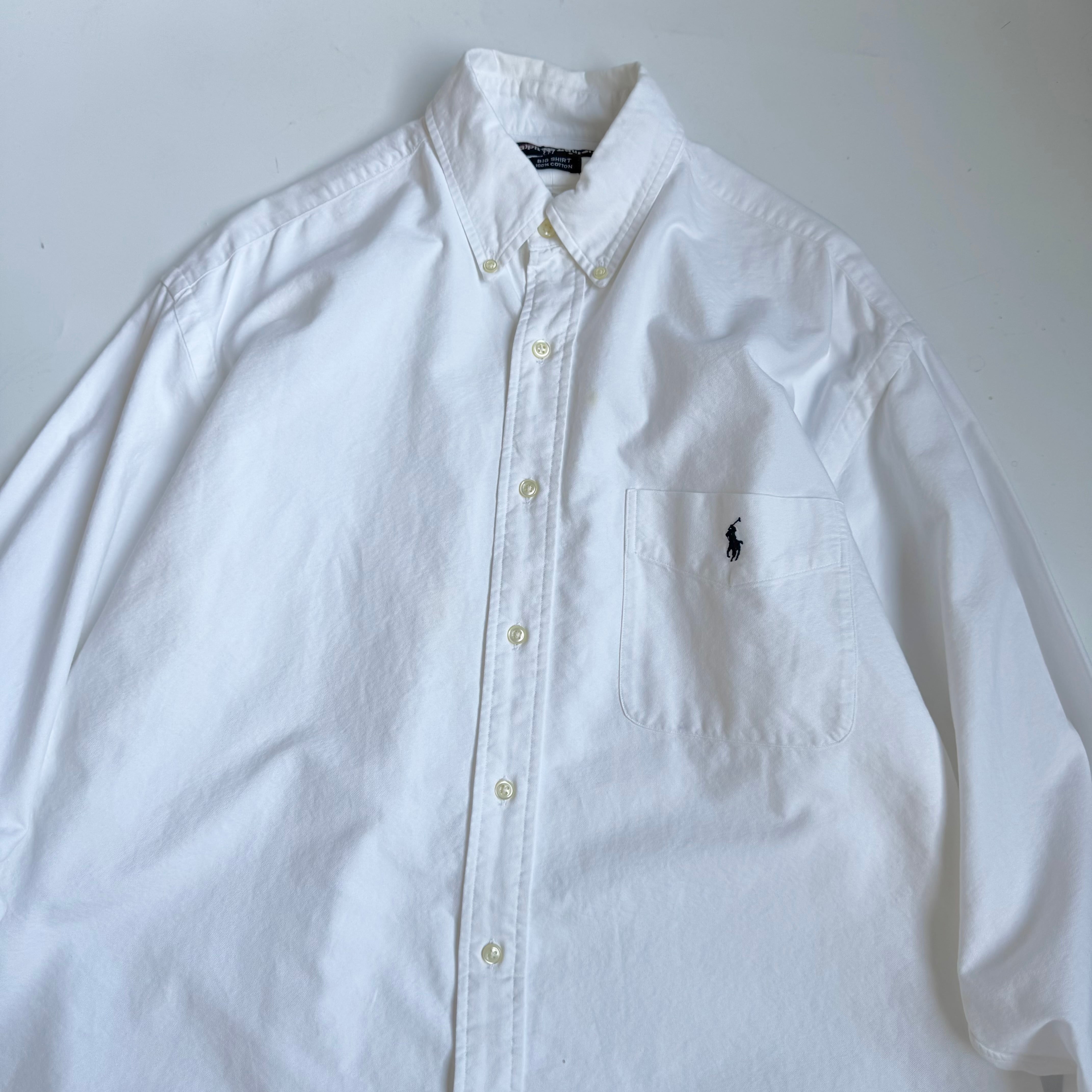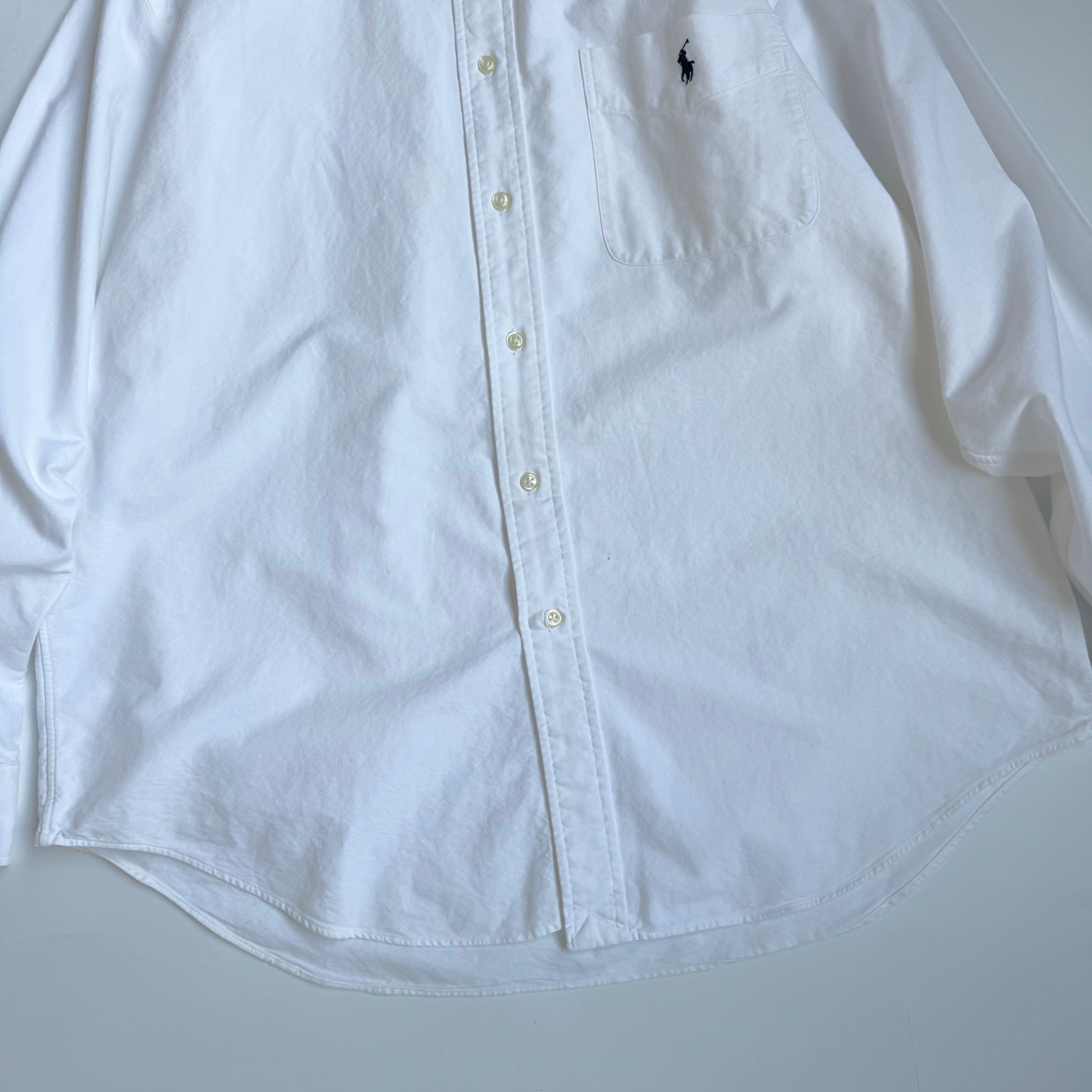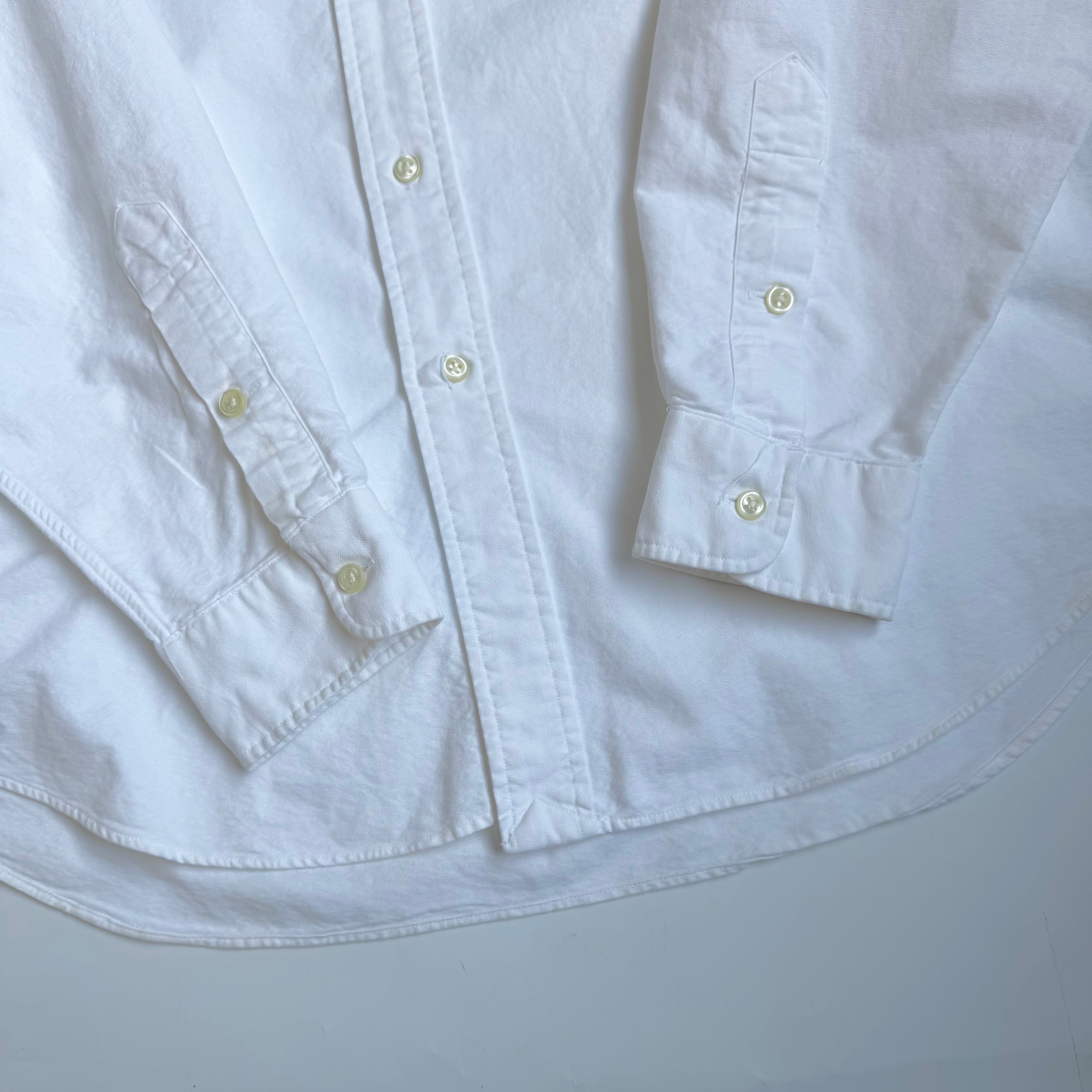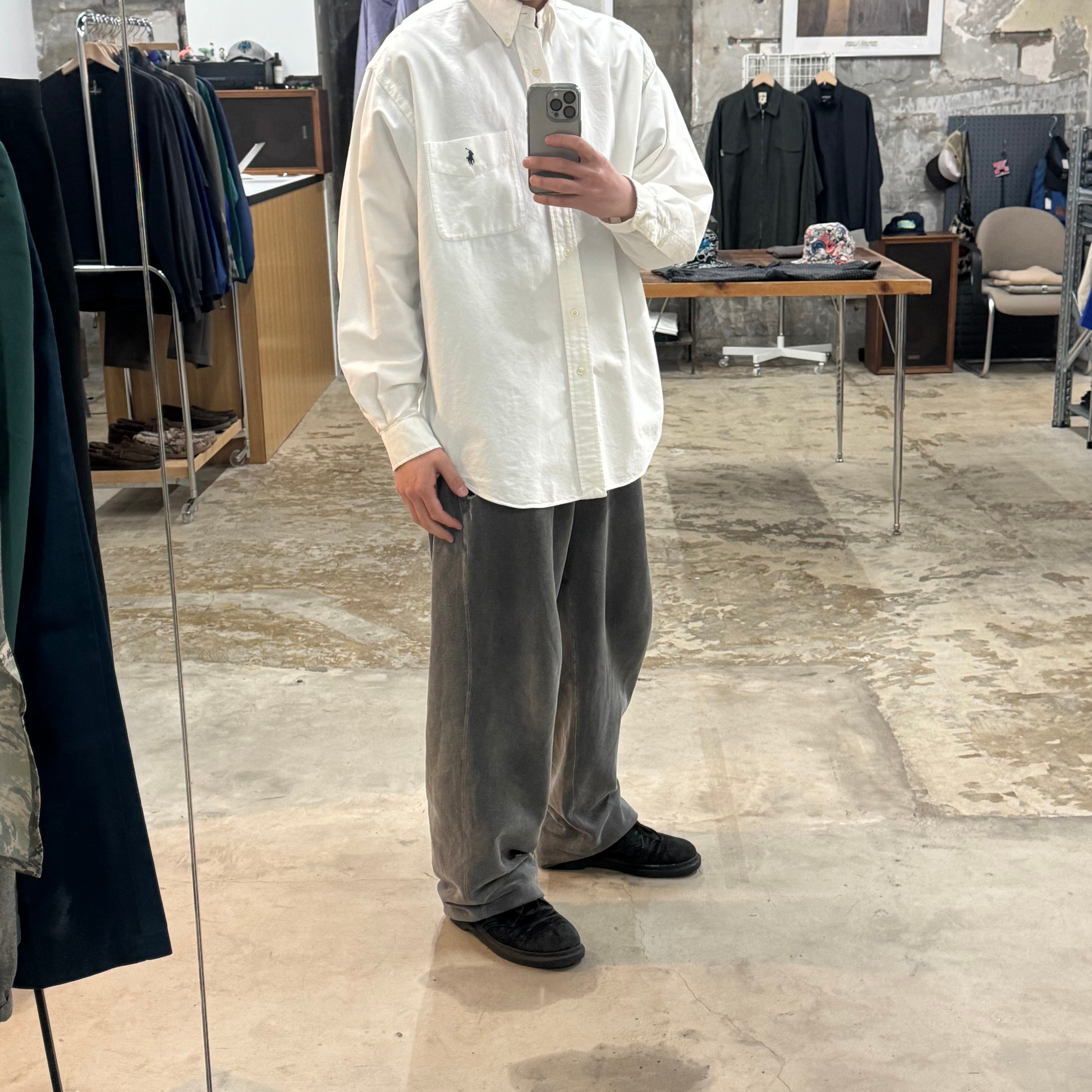 春先活躍しそうな 白のビッグシャツ 清涼感◎ •SIZE M 肩幅 53.5cm 袖丈 62cm 身幅 64.5cm 着丈 81cm(襟下から) •MATERIAL Cotton100% •COLOR ホワイト •CONDITION 左胸辺りにシミがあります。 写真にてご確認下さい。 ya6550