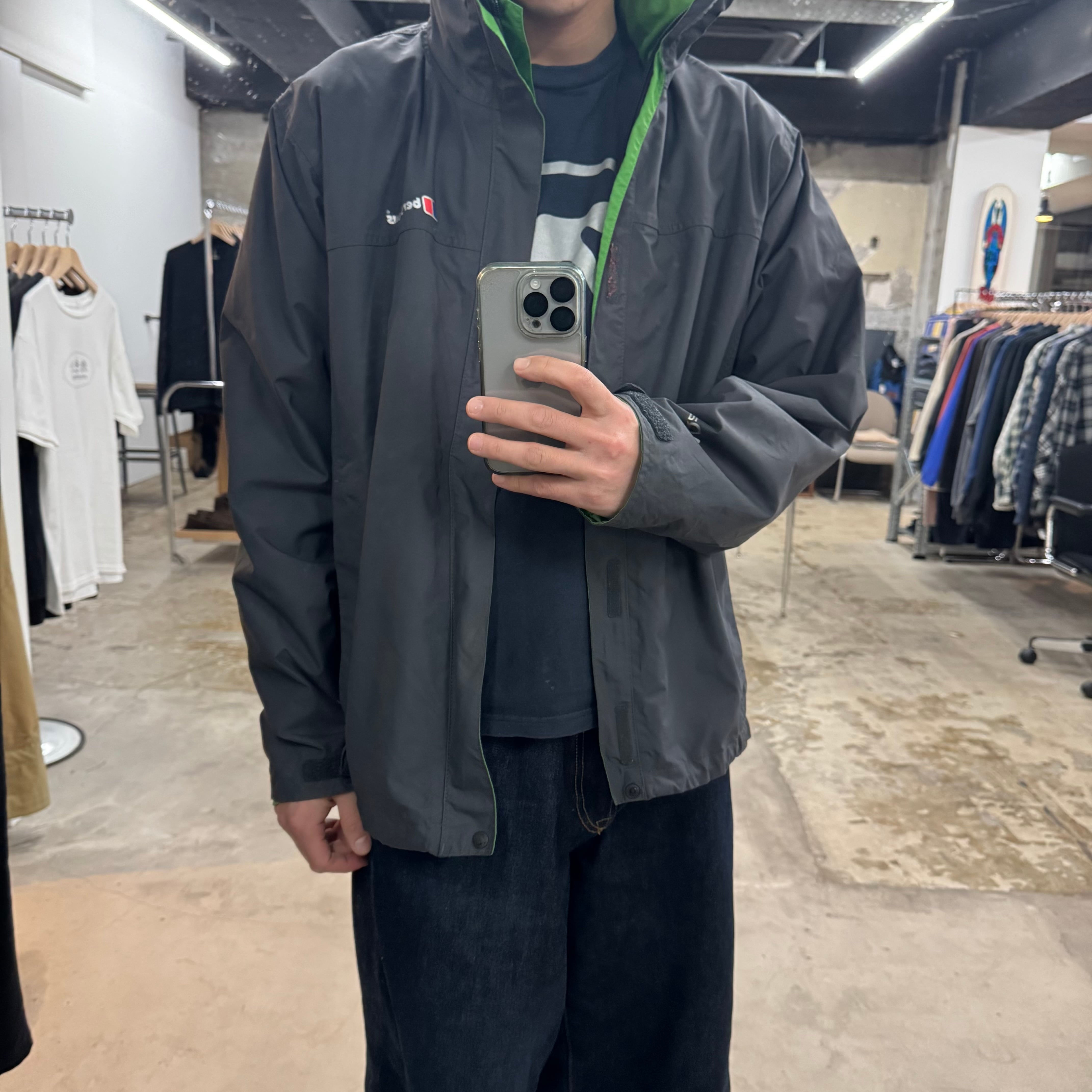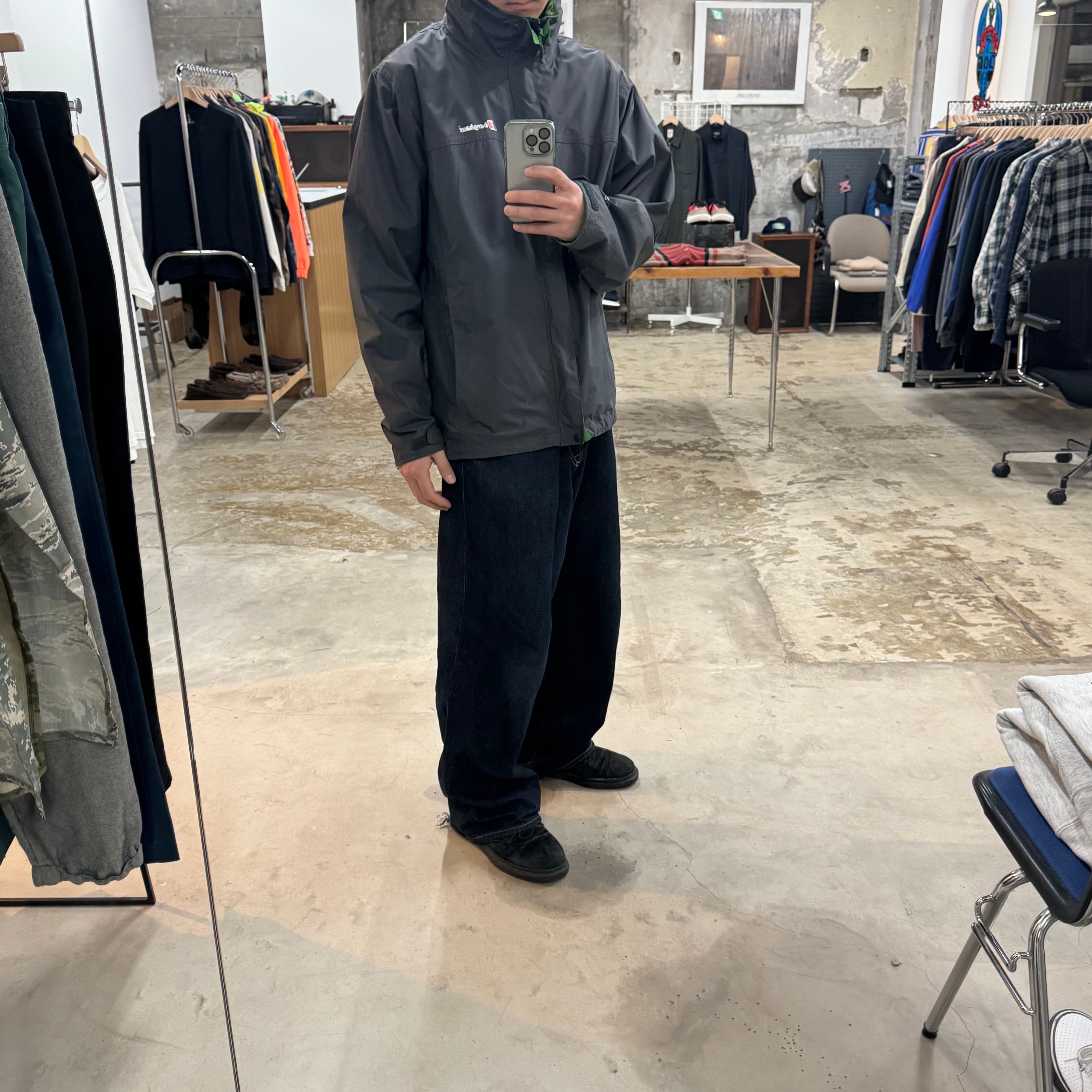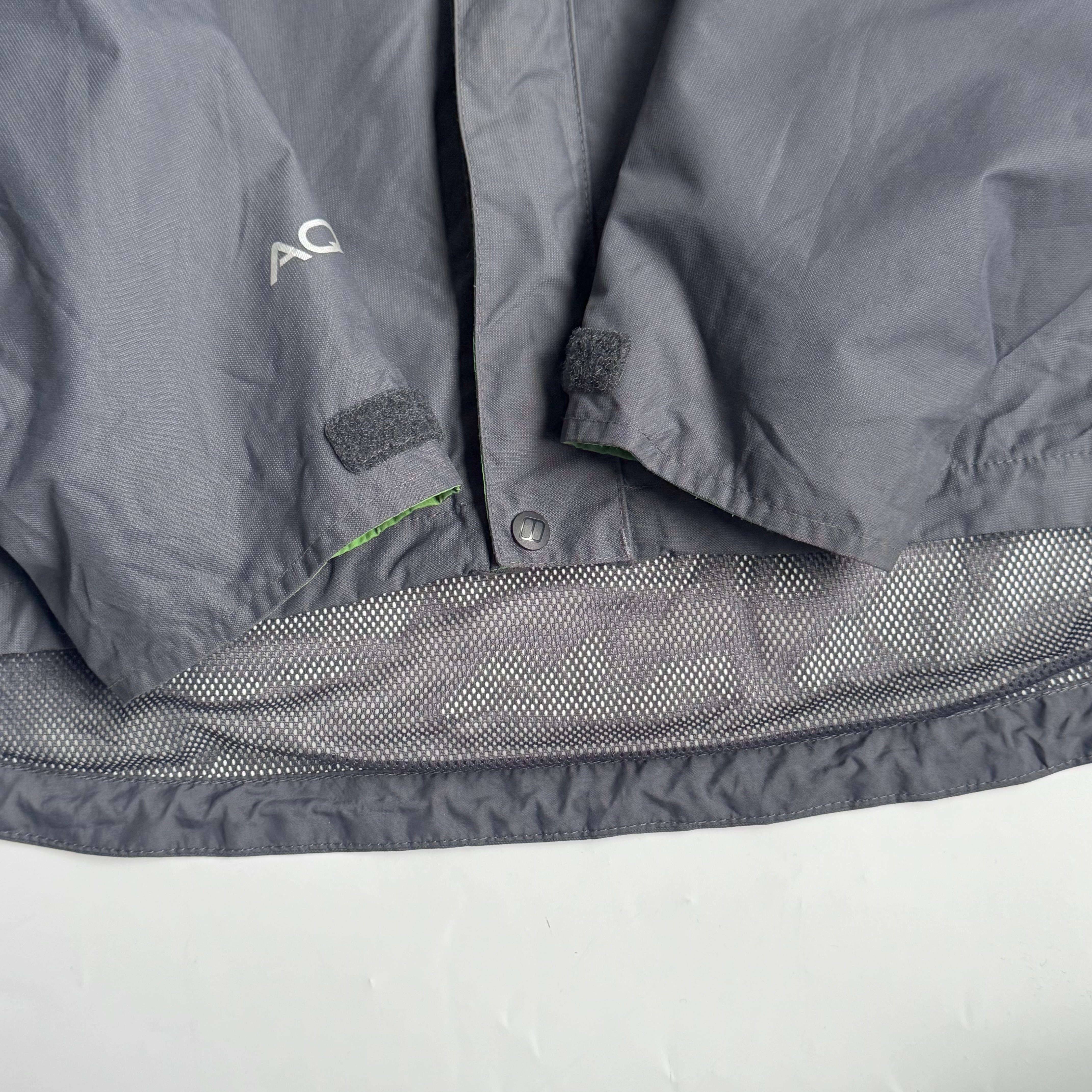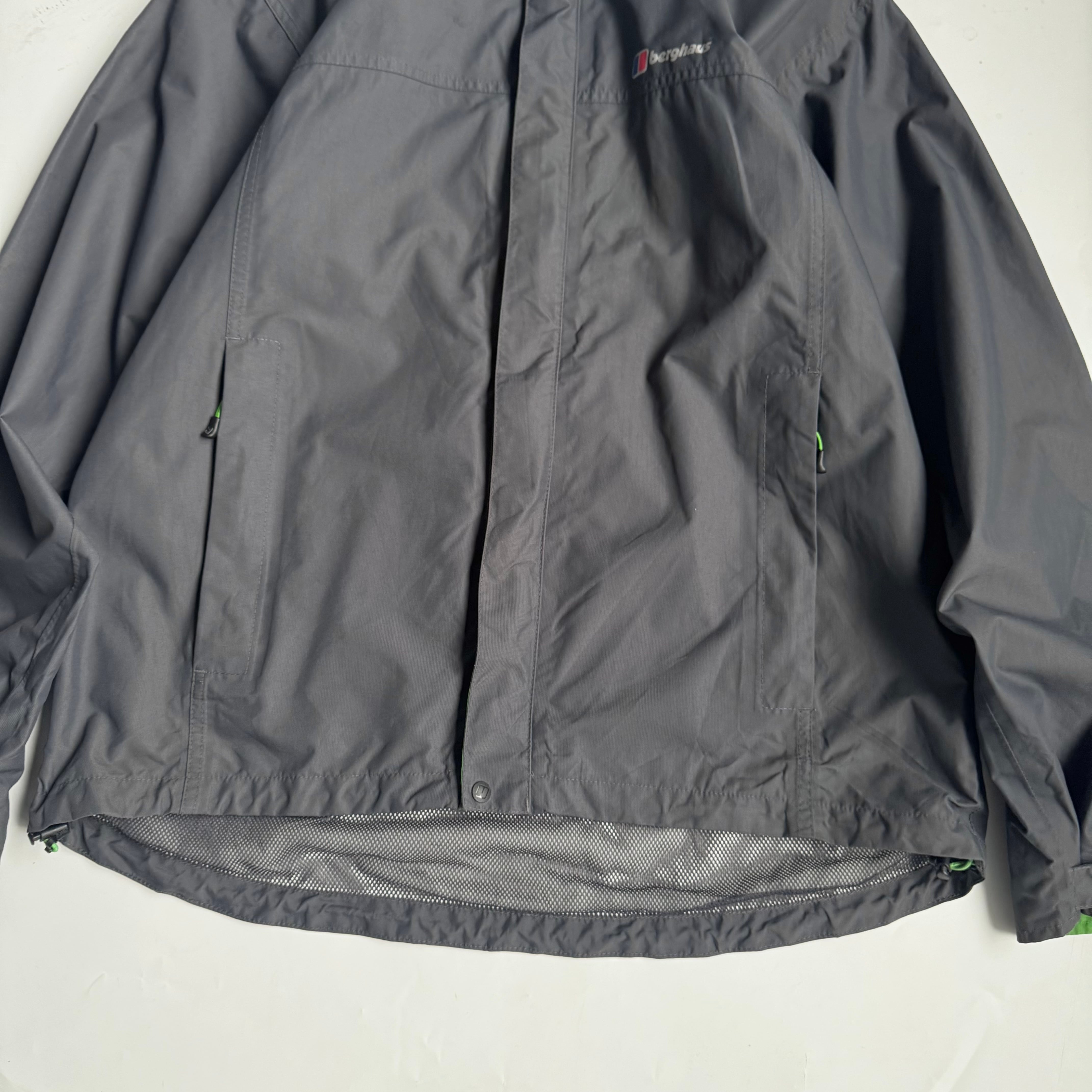 ネックと比翼部分裏の グリーンがいいアクセント◎ •SIZE L 肩幅 51cm 袖丈 62cm 身幅 62cm 着丈 78cm 175cm着用 •MATERIAL POLYAMIDE 100% •COLOR グレー •CONDITION 使用感、背面に汚れ、背面ネックのロゴプリントに剥がれ、袖に汚れ、内側の生地は劣化はございませんが、フード収納部分の生地の裏側に劣化による粉がございます。着用に問題ございませんが、神経質な方はお控えください。 ya6377