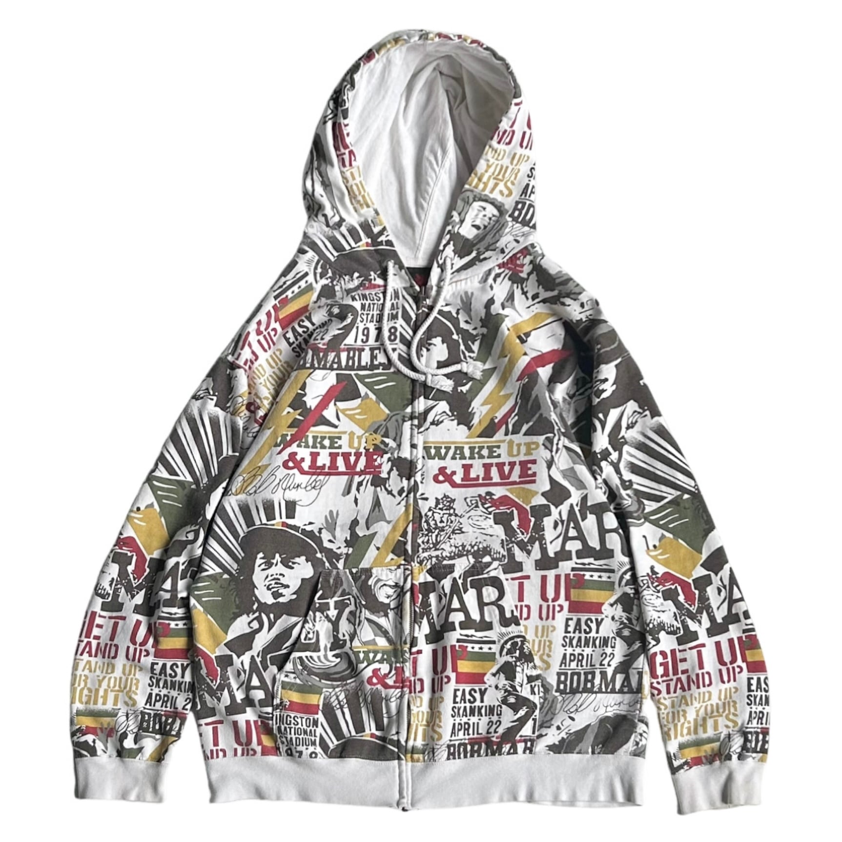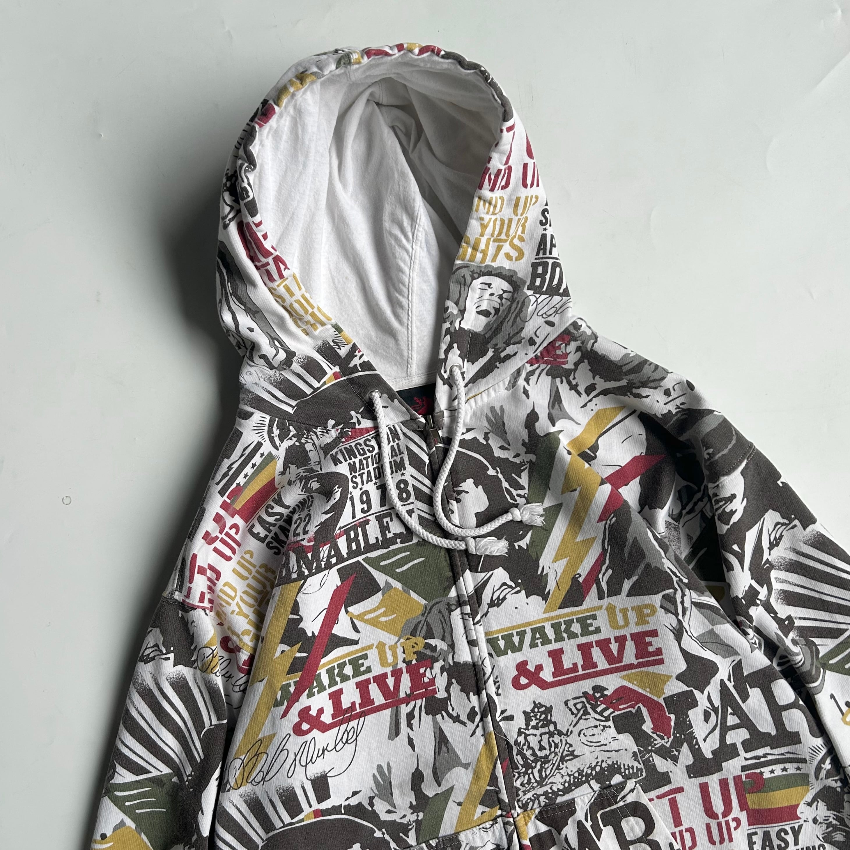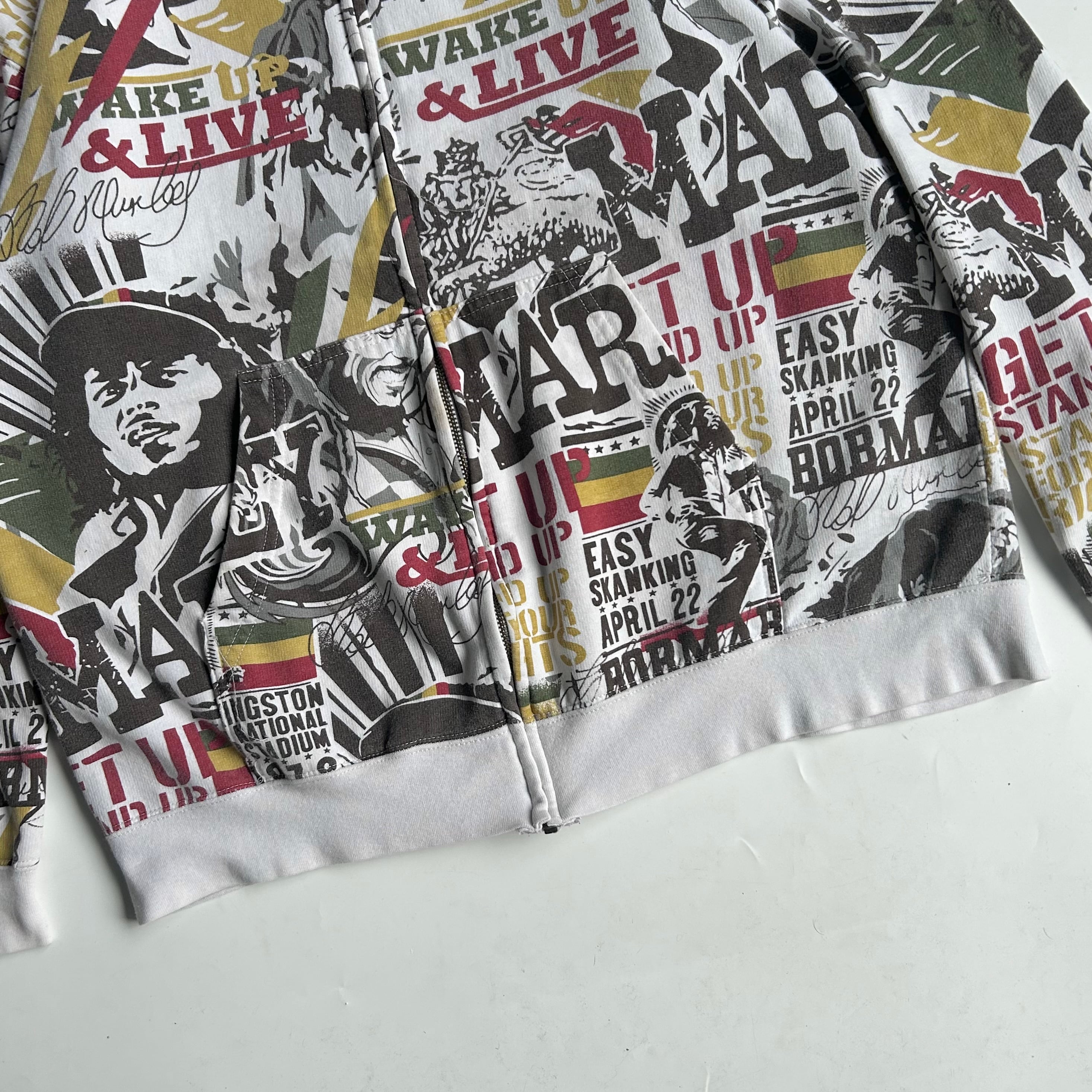ラスタやジャーな感じ カルチャー感じる総柄◎ •SIZE XL 肩幅 55.5cm 袖丈 54.5cm 身幅 57cm 着丈 63cm 175cm着用 •MATERIAL COTTON80% POLYESTER20% •COLOR 総柄 •CONDITION リブに小さな汚れあり ジップ付近に汚れあり 左脇下からリブにかけて使用感あり 写真参照 ya6515