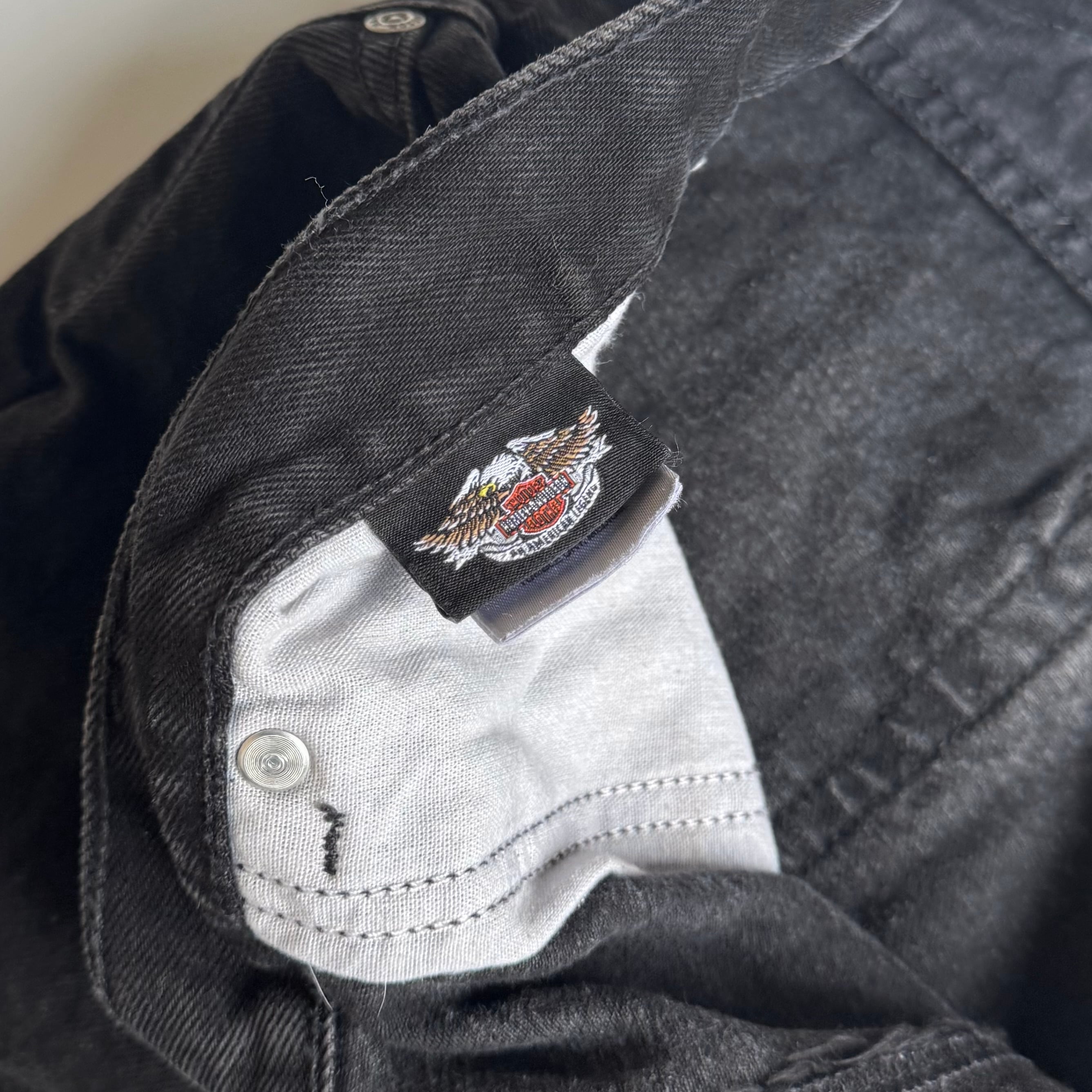 ハーレーデニム ロゴとか絶妙でかっこいい •SIZE 33/32 ウエスト 88cm 股上 30cm 股下 81.5cm 渡り 33cm 裾幅 20.5cm •MATERIAL COTTON 100% •COLOR ブラック •CONDITION 使用感はございますが、目立ったダメージや汚れはございません。