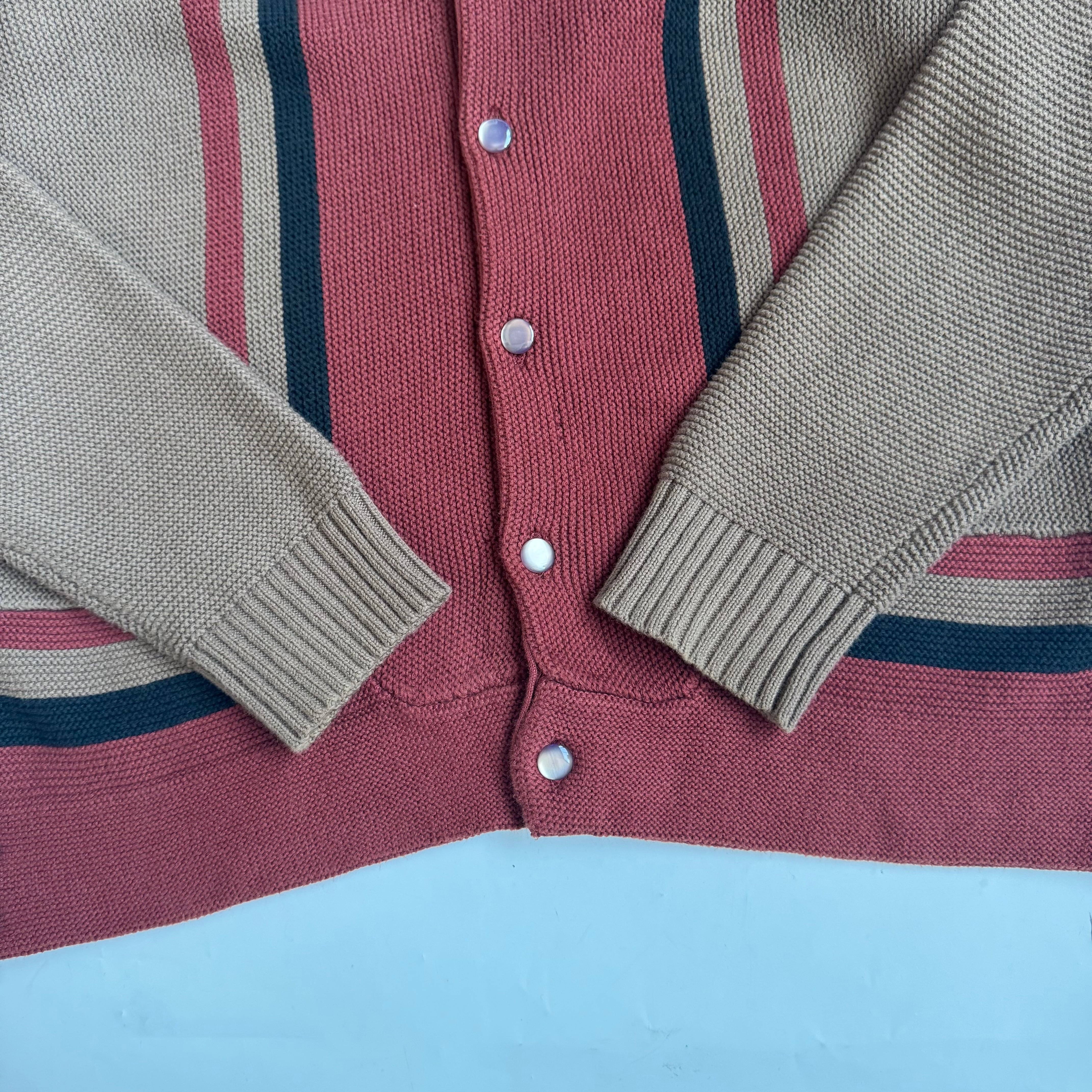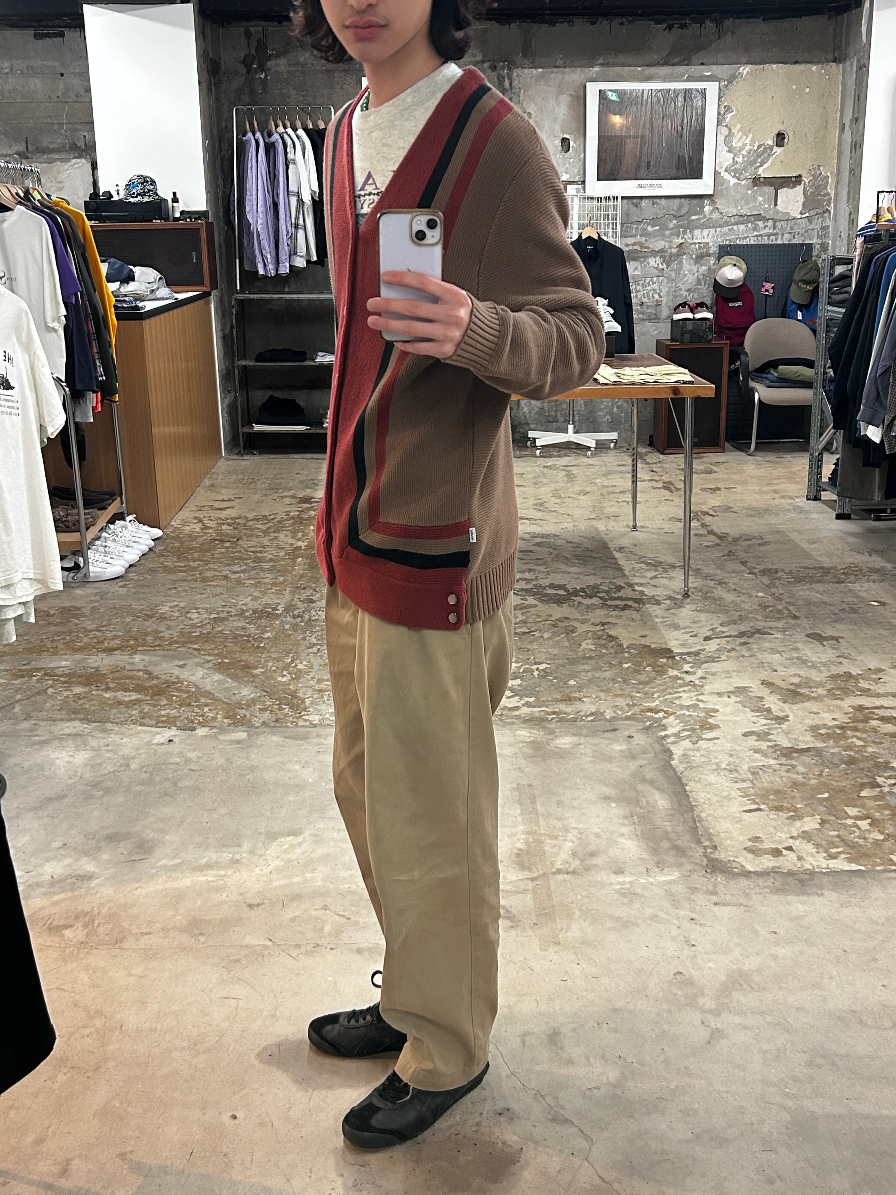 •SIZE L 肩幅 45.5cm 袖丈 67cm 身幅 53.5cm 着丈 66cm 180cm着用 •MATERIAL ACRYLIC 100% •COLOR ブラウン レッド ブラック •CONDITION 使用感はございますが、目立った傷や汚れ等はございません。 1063