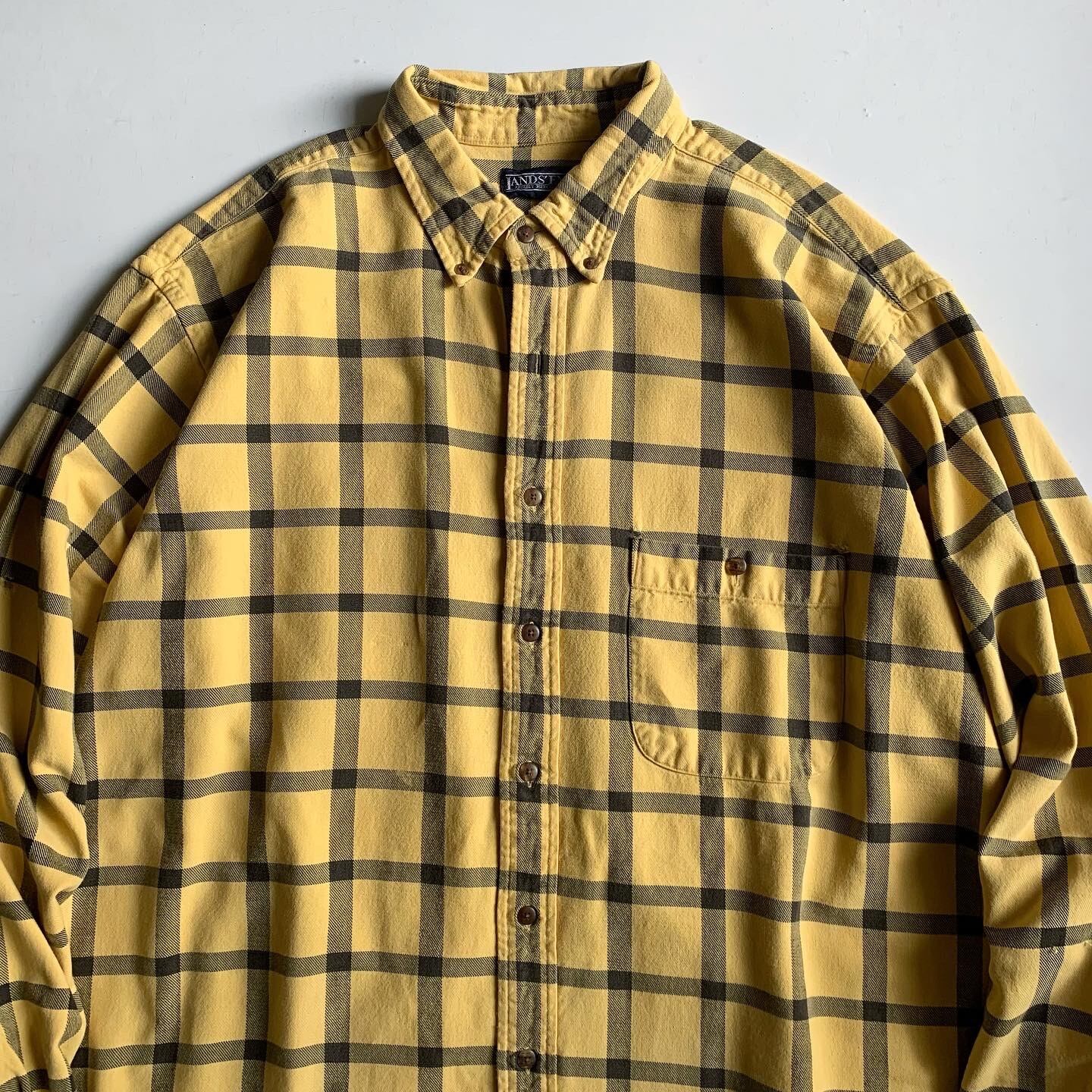 •SIZE XL tall 肩幅 55cm 袖丈 65cm 身幅 69cm 着丈 86cm •MATERIAL COTTON 100% •COLOR イエロー ブラック •CONDITION 第二ボタンございませ。 替えボタン付きになります。 フロントに汚れあり。 cha364