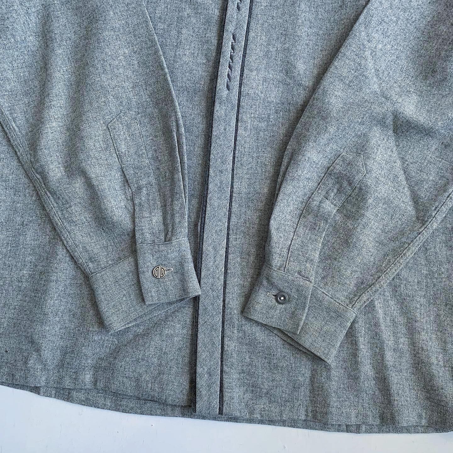 •SIZE M 肩幅 45cm 袖丈 60.5cm 身幅 59cm 着丈 74cm •MATERIAL WOOL 100% •COLOR グレー •CONDITION フロント、背面共にピンホールあり。 168cm着用 f223