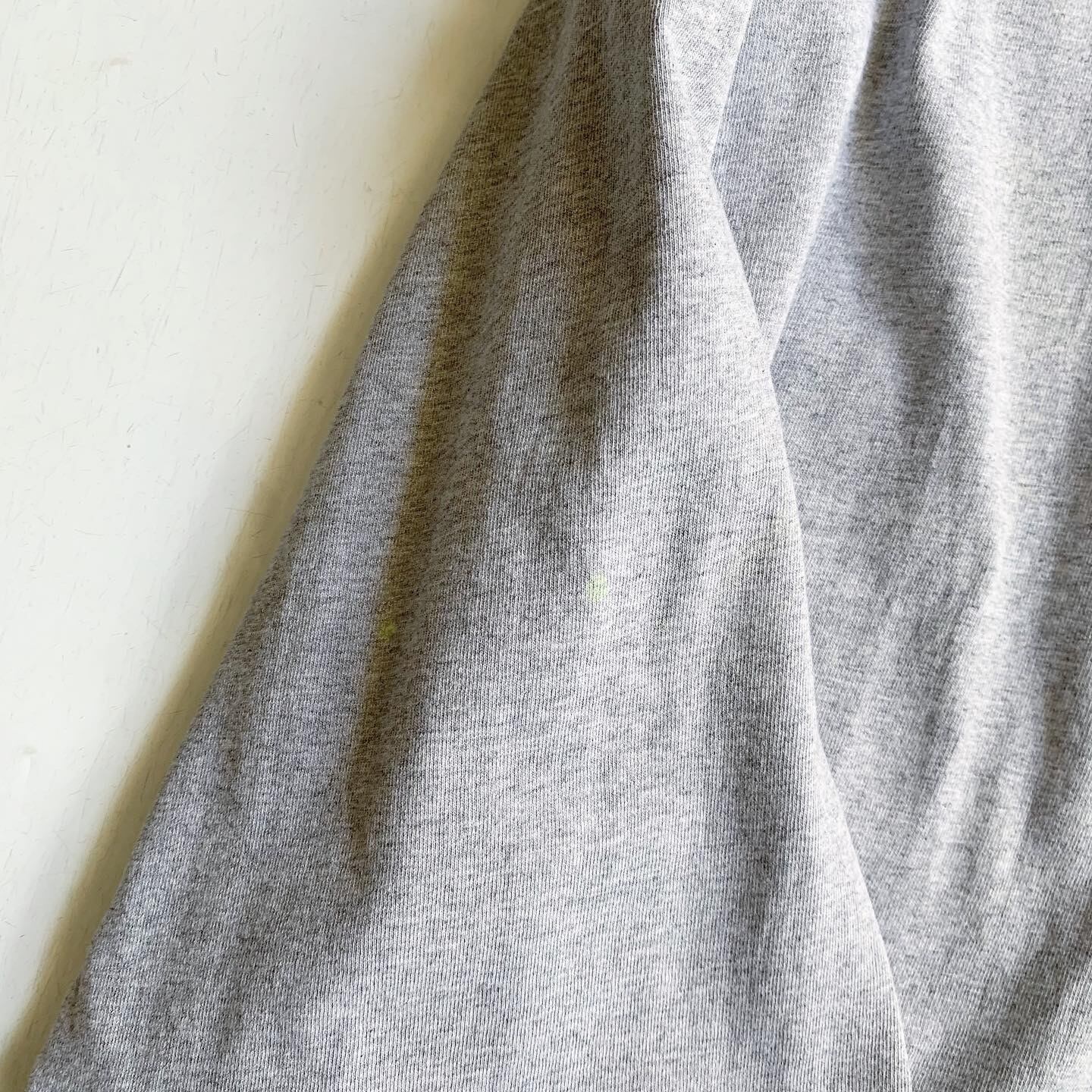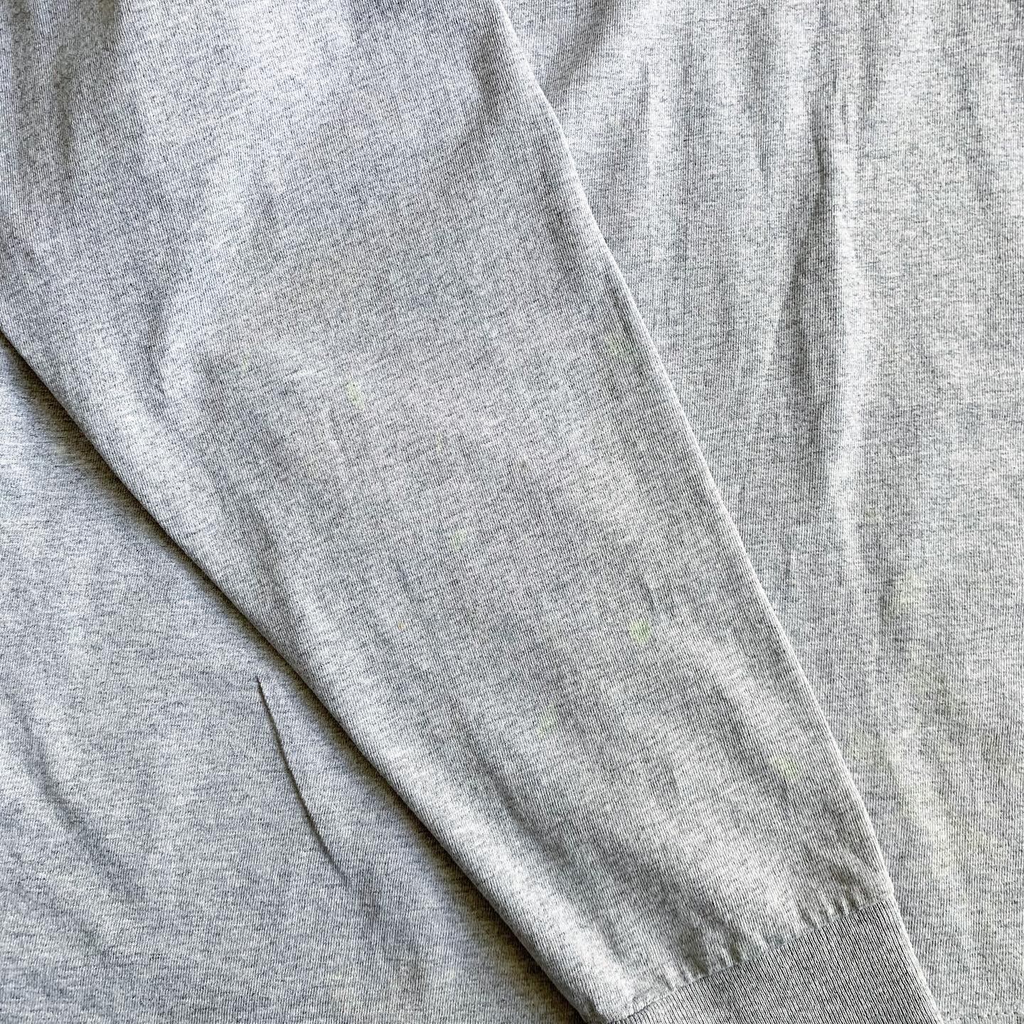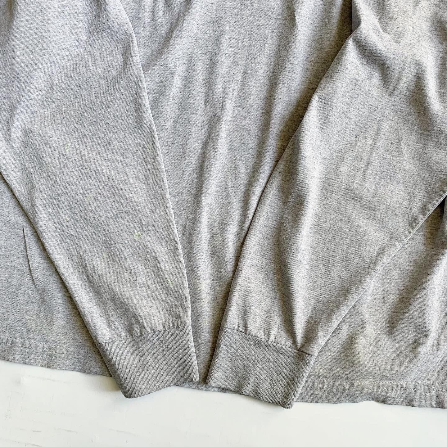 •SIZE XL 肩幅 57cm 袖丈 65cm 身幅 58cm 着丈 74.5cm •MATERIAL COTTON 100% •COLOR グレー •CONDITION フロント、袖に汚れあり。