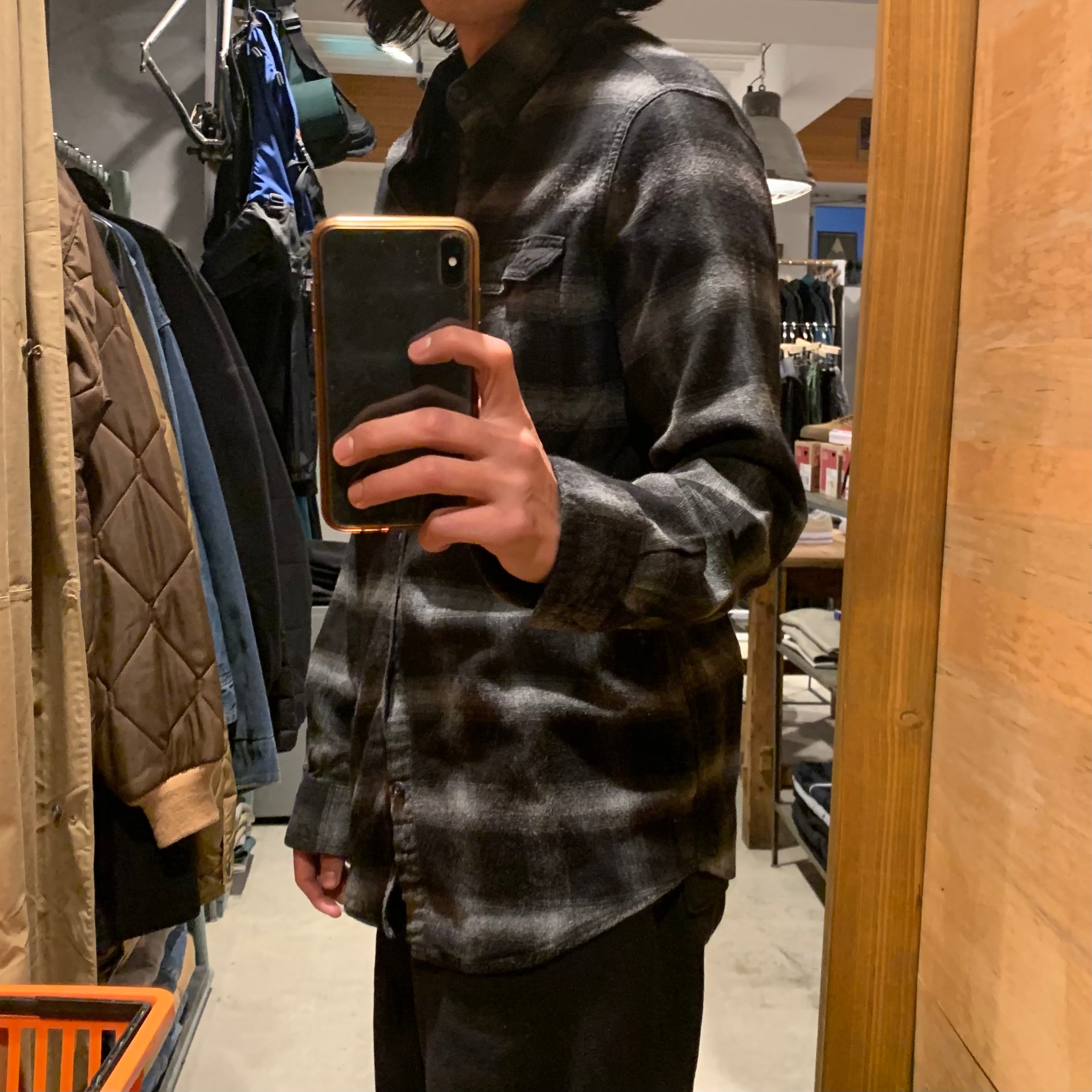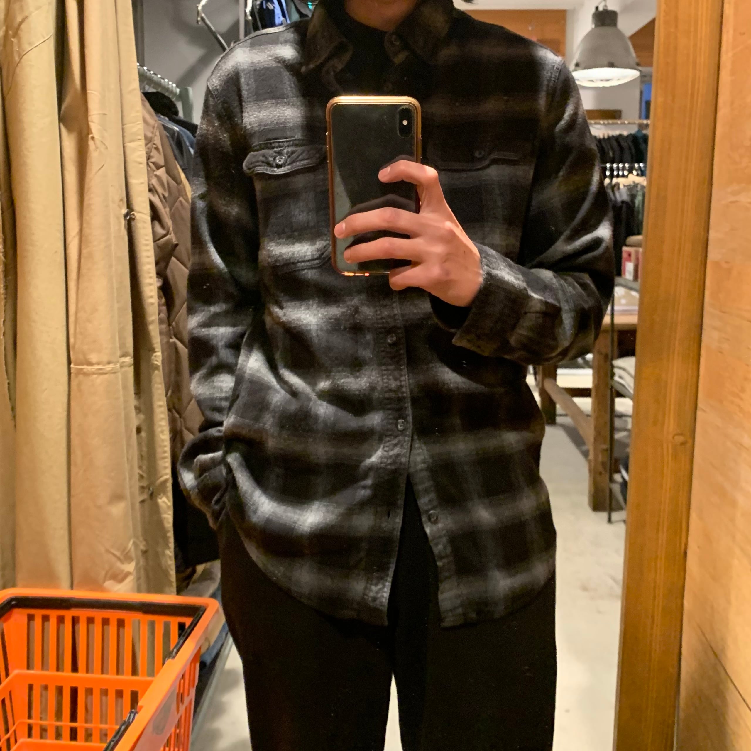 •SIZE L 肩幅 48cm 袖丈 63cm 身幅 54cm 着丈 75.5cm 着用者170cm •MATERIAL COTTON 55% RAYON 45% •COLOR ブラック グレー •CONDITION 使用感はございますが、目立った傷や汚れ等はございません。 f260