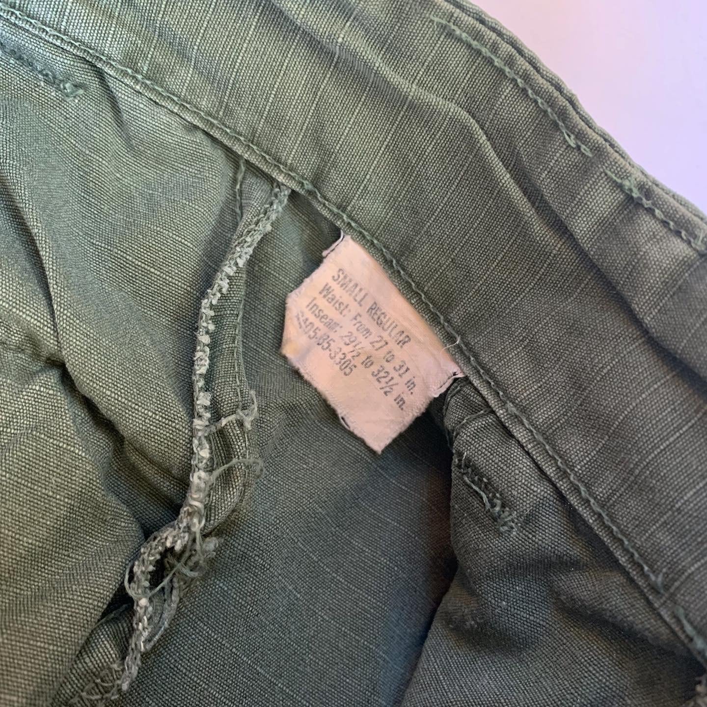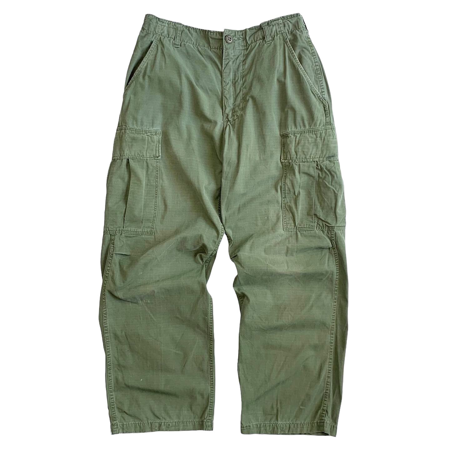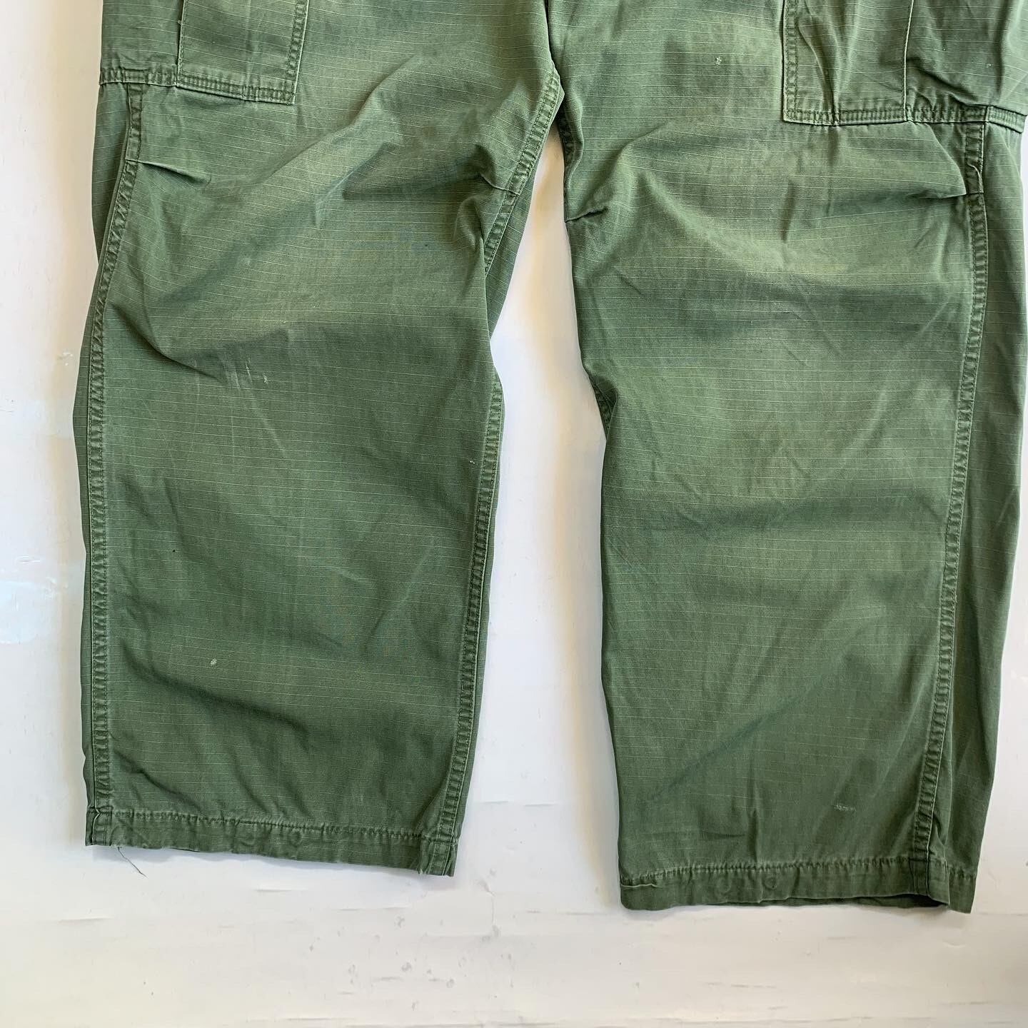 •SIZE S-R ウエスト 76cm 股上 27cm 股下 74cm 着用者170cm •MATERIAL COTTON 100% •COLOR グリーン系 •CONDITION 所々に汚れ、ダメージ。 背面にリペア跡あり。 使用感のある品になります。 写真にてご確認下さい。 gar982