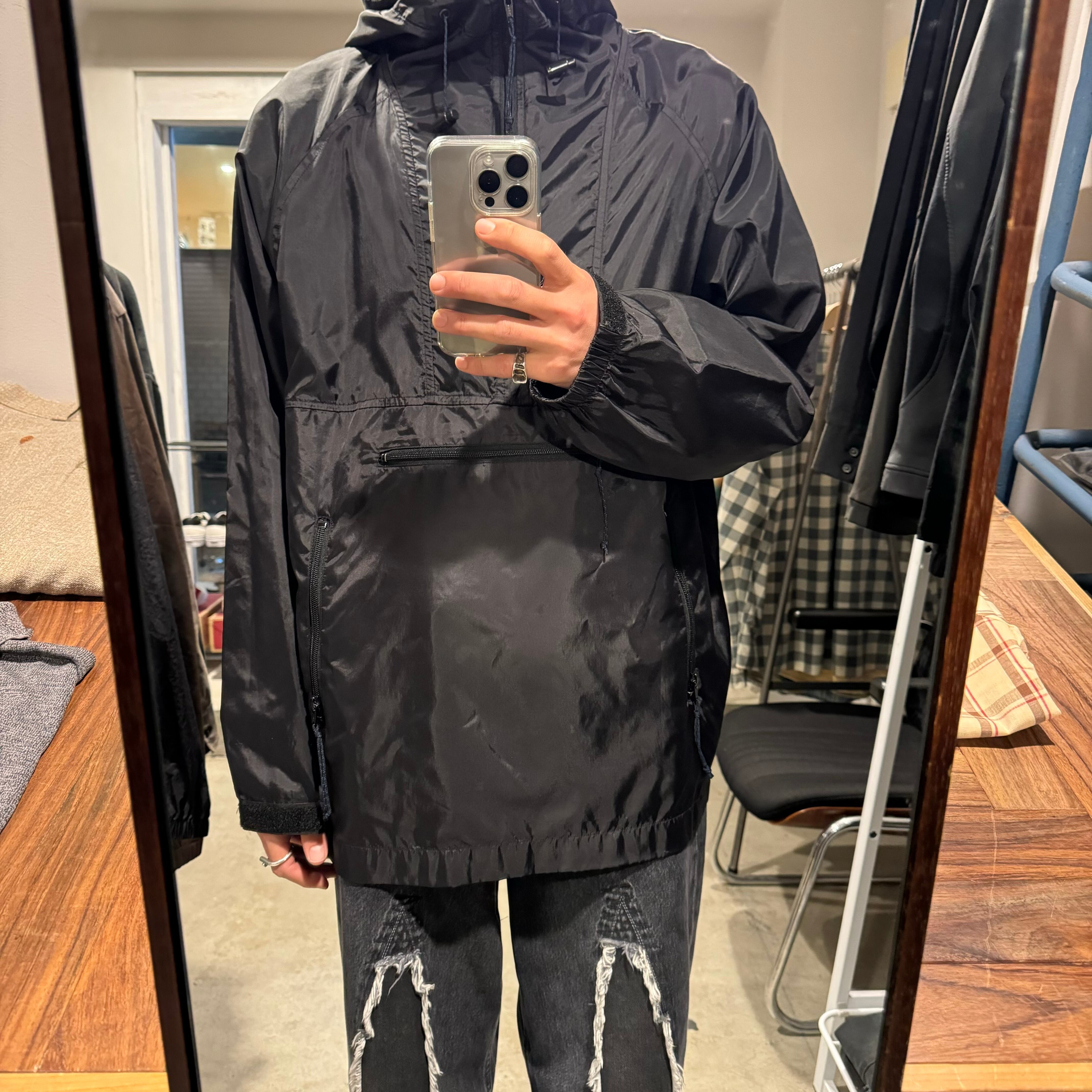 •SIZE M 裄丈 93cm 身幅 63cm 着丈 72.5cm 175cm着用 •MATERIAL NYLON 100% •COLOR ブラック •CONDITION 使用感、内側に劣化がございます。 写真にてご確認ください。 ya5035