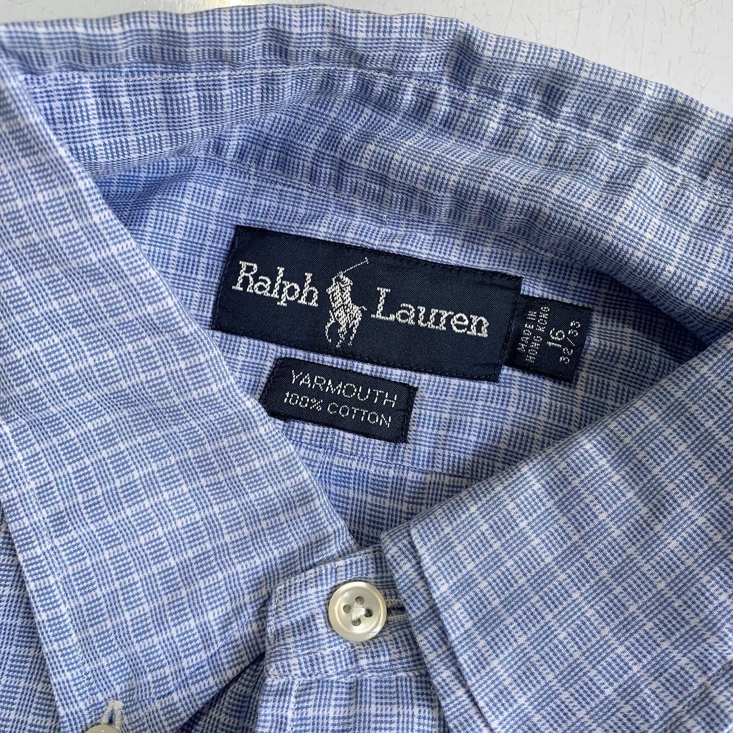 珍しいチェックパターン 爽やかな配色が◎ •SIZE 16 32/33 肩幅 50cm 袖丈 58cm 身幅 69cm 着丈 85.5cm 175cm着用 •MATERIAL COTTON 100% •COLOR ブルー系 •CONDITION 右袖ボタン欠損 ya5024