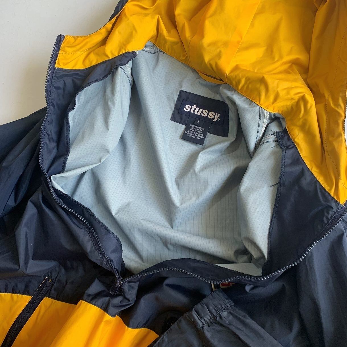 •SIZE L 裄丈 95cm 身幅 72cm 着丈 82cm •MATERIAL NYLON 100% •COLOR ネイビー イエロー •CONDITION 使用感はございますが、目立った傷や汚れ等はございません。 me675