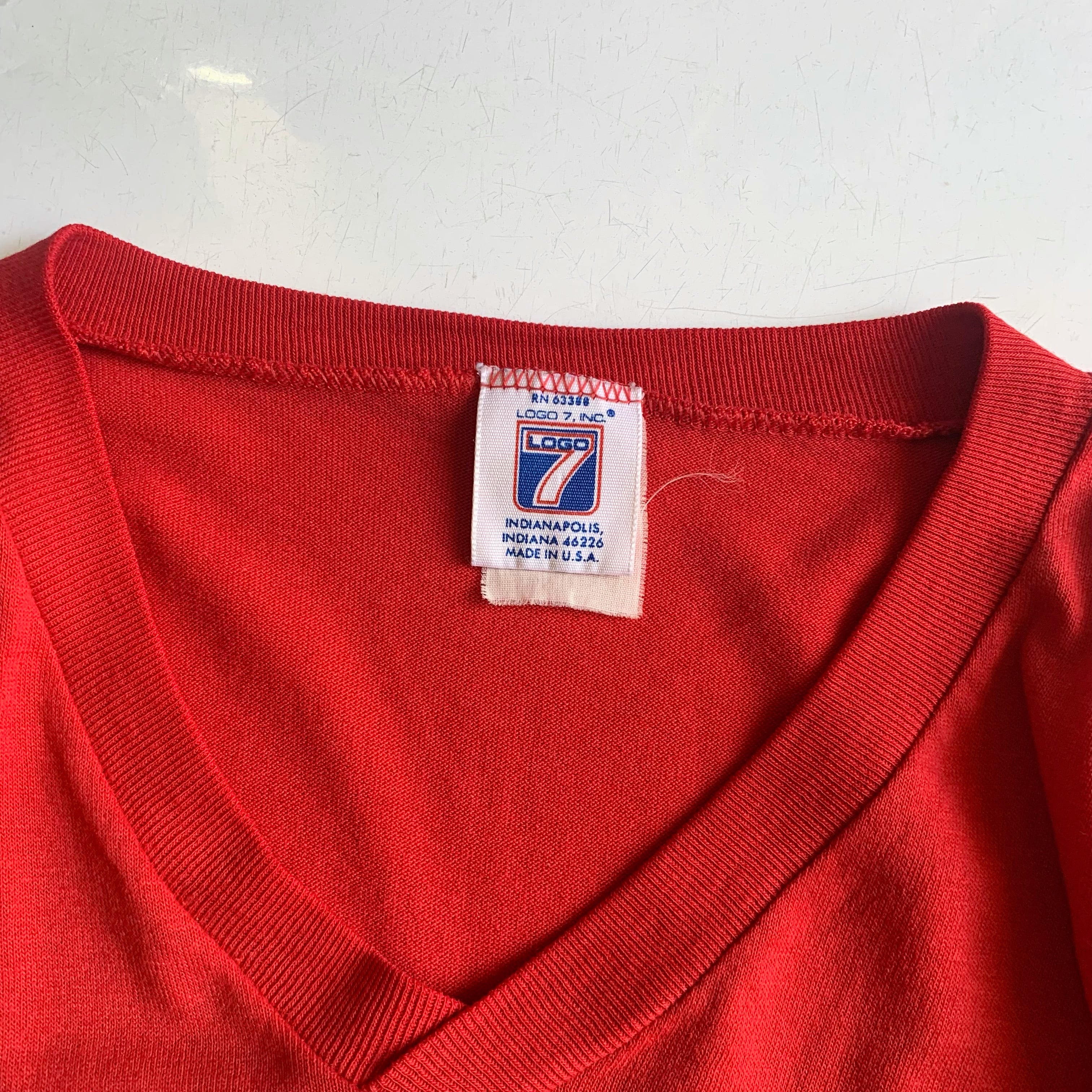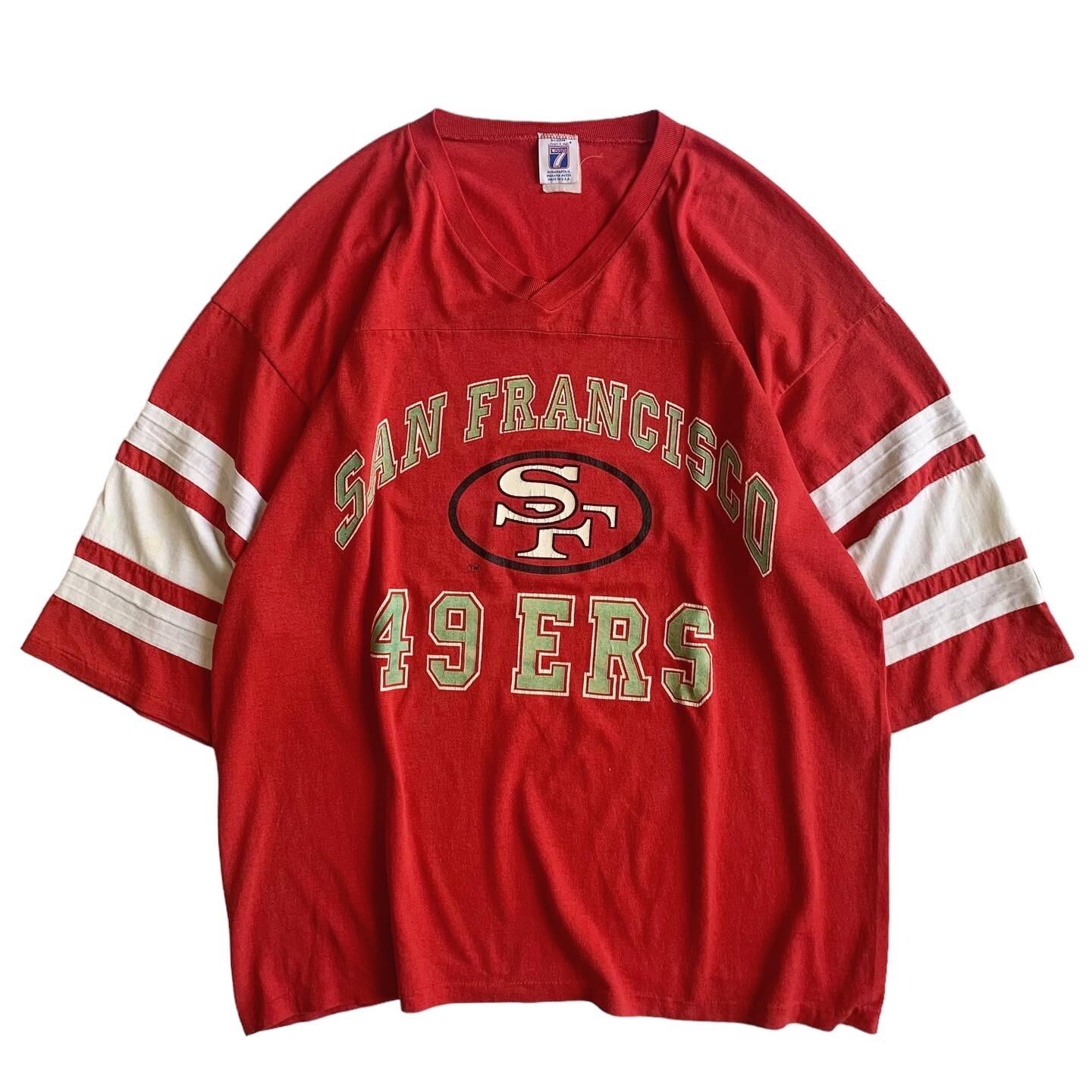•SIZE 肩幅 59cm 袖丈 32cm 身幅 60cm 着丈 70cm 着用者170cm •MATERIAL 恐らくCOTTON POLYESTER •COLOR レッド ゴールド ホワイト •CONDITION フロント、両袖に汚れあり。 ya596