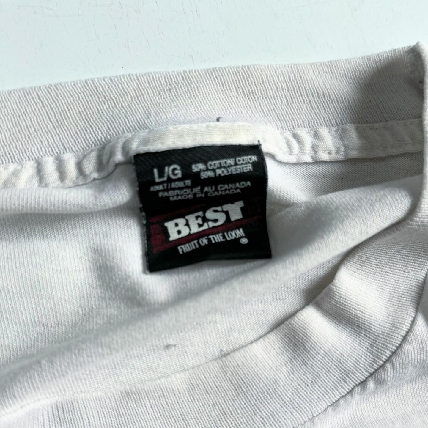 •SIZE L 肩幅 51cm 袖丈 19cm 身幅 55cm 着丈 63.5cm •MATERIAL COTTON 50% POLYESTER 50% •COLOR ホワイト •CONDITION 全体的な使用感、フロントや脇にシミがございます。 写真にてご確認ください。 168cm着用 gar1116