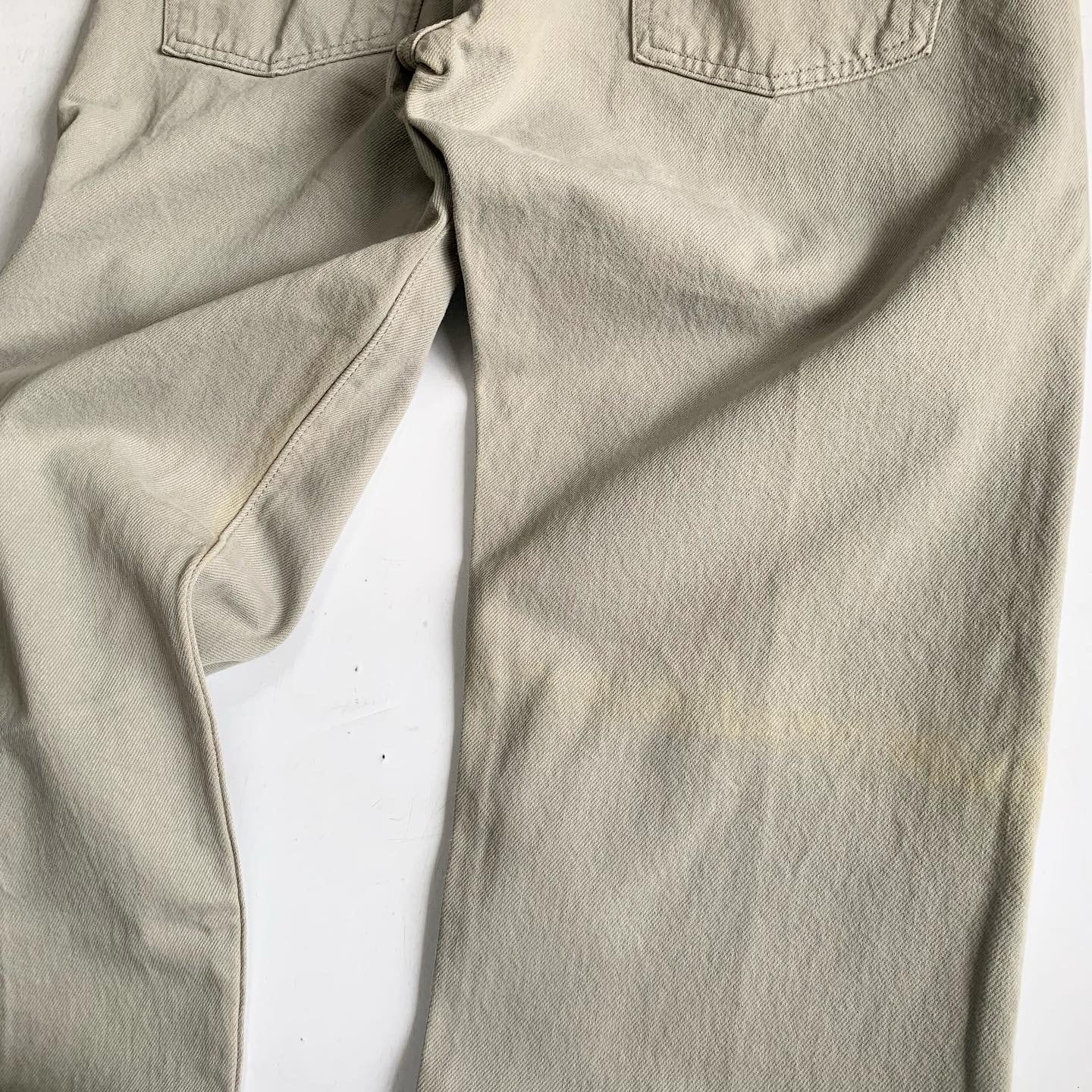 •SIZE 30×32 ウエスト 80cm 股上27.5cm 股下84cm わたり 30cm 裾幅 20cm •MATERIAL COTTON 100% •COLOR グレー系 •CONDITION 背面に薄汚れございます。 gar34