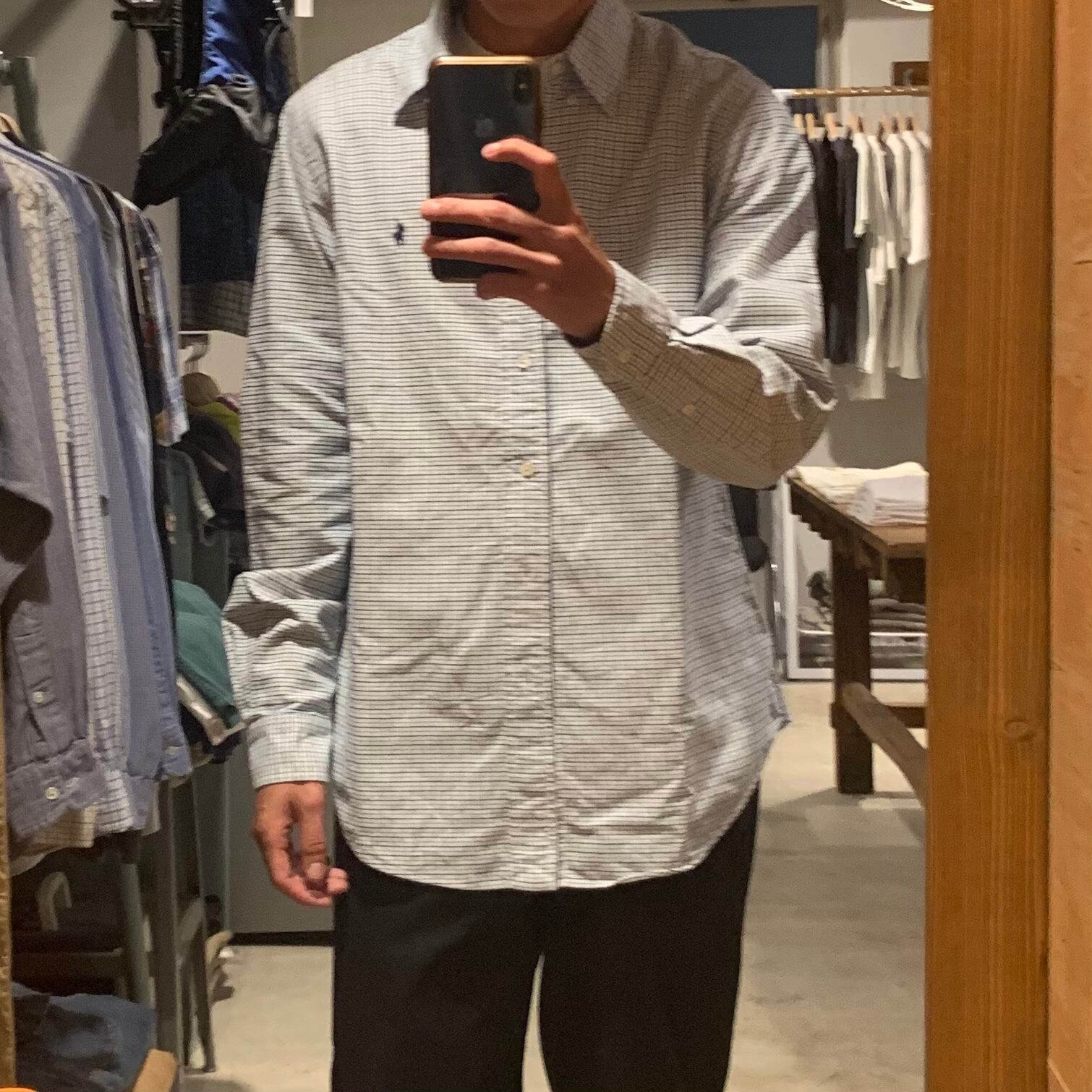 小さいサイズパターンのカスタムフィット。 タックインも良さそうです。 •SIZE M 肩幅 46cm 袖丈 64cm 身幅 57cm 着丈 78.5cm 着用者170cm •MATERIAL COTTON 100% •COLOR ホワイト ブルー ブラック •CONDITION 使用感はございますが、目立った傷や汚れ等はございません。 ya5266