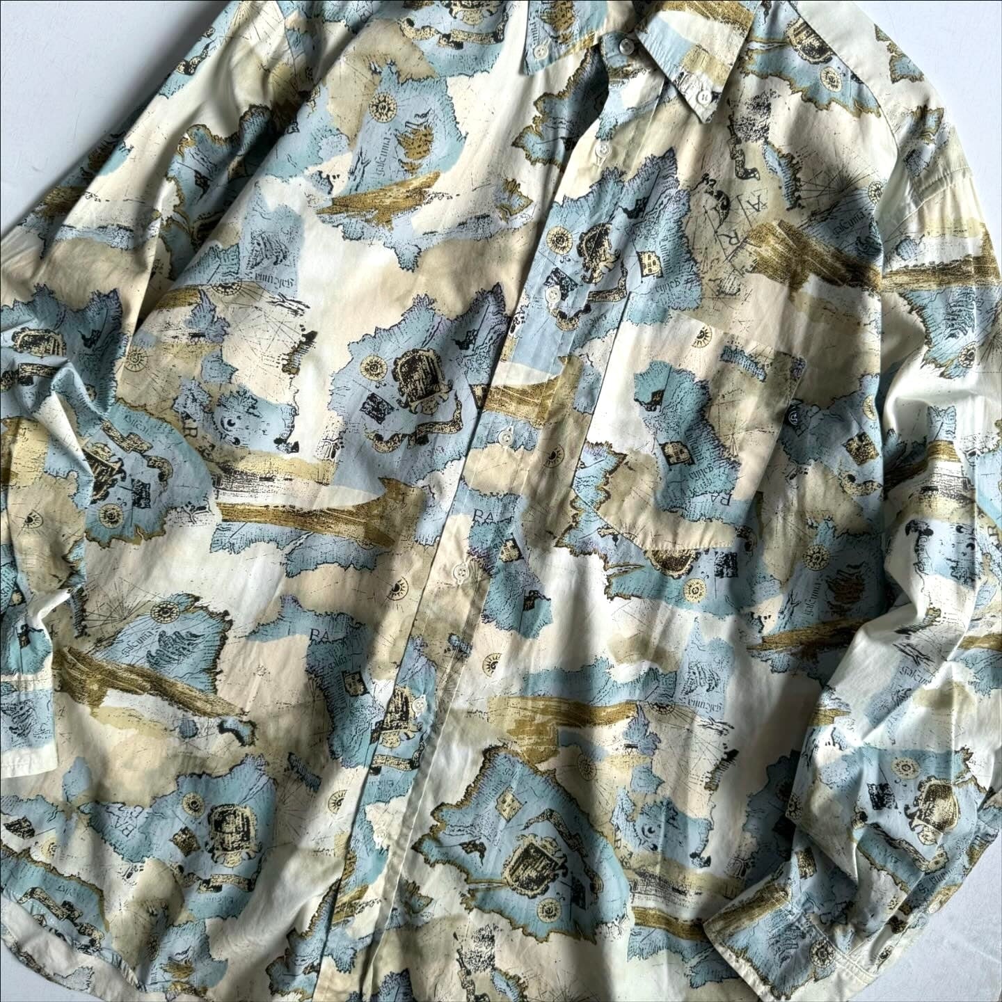 宗教やスカルの総柄もいいですが ワールドマップ系の総柄もなかなか見ないのでオススメです◎ •SIZE M 肩幅 50.5cm 袖丈 60cm 身幅 64.5cm 着丈 81cm •MATERIAL COTTON 100% •COLOR マルチカラー •CONDITION 使用感はございますが、目立った傷や汚れ等はございません。 me676