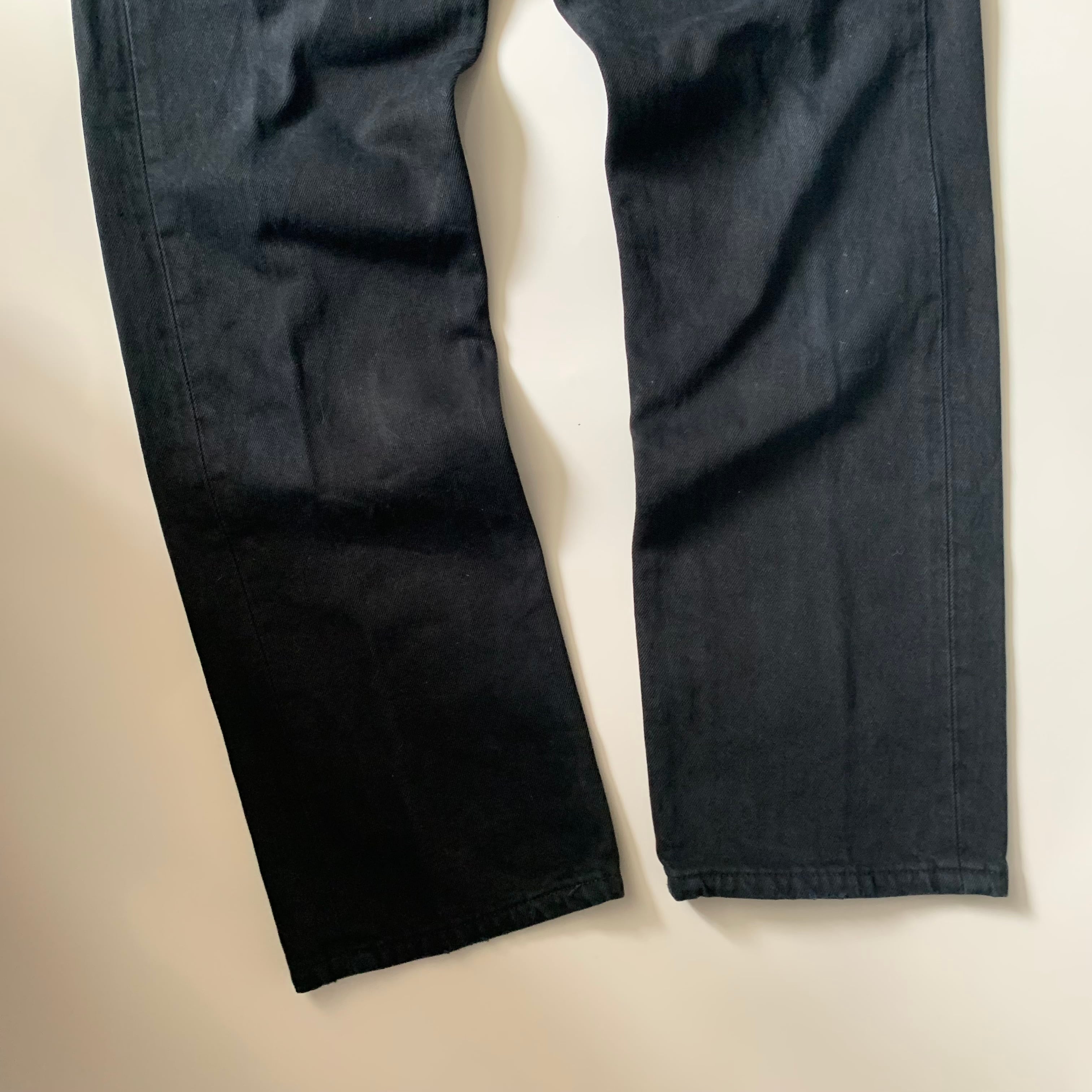 アメリカ物とは違った趣き 足元はクラークスやアディダスでどうでしょうか。 •SIZE 31×30 ウエスト 76cm 股上 28.5cm 股下 75cm 着用者170cm •MATERIAL COTTON 100% •COLOR ブラック •CONDITION 使用感はございますが、目立った傷や汚れ等はございません。 ya5440