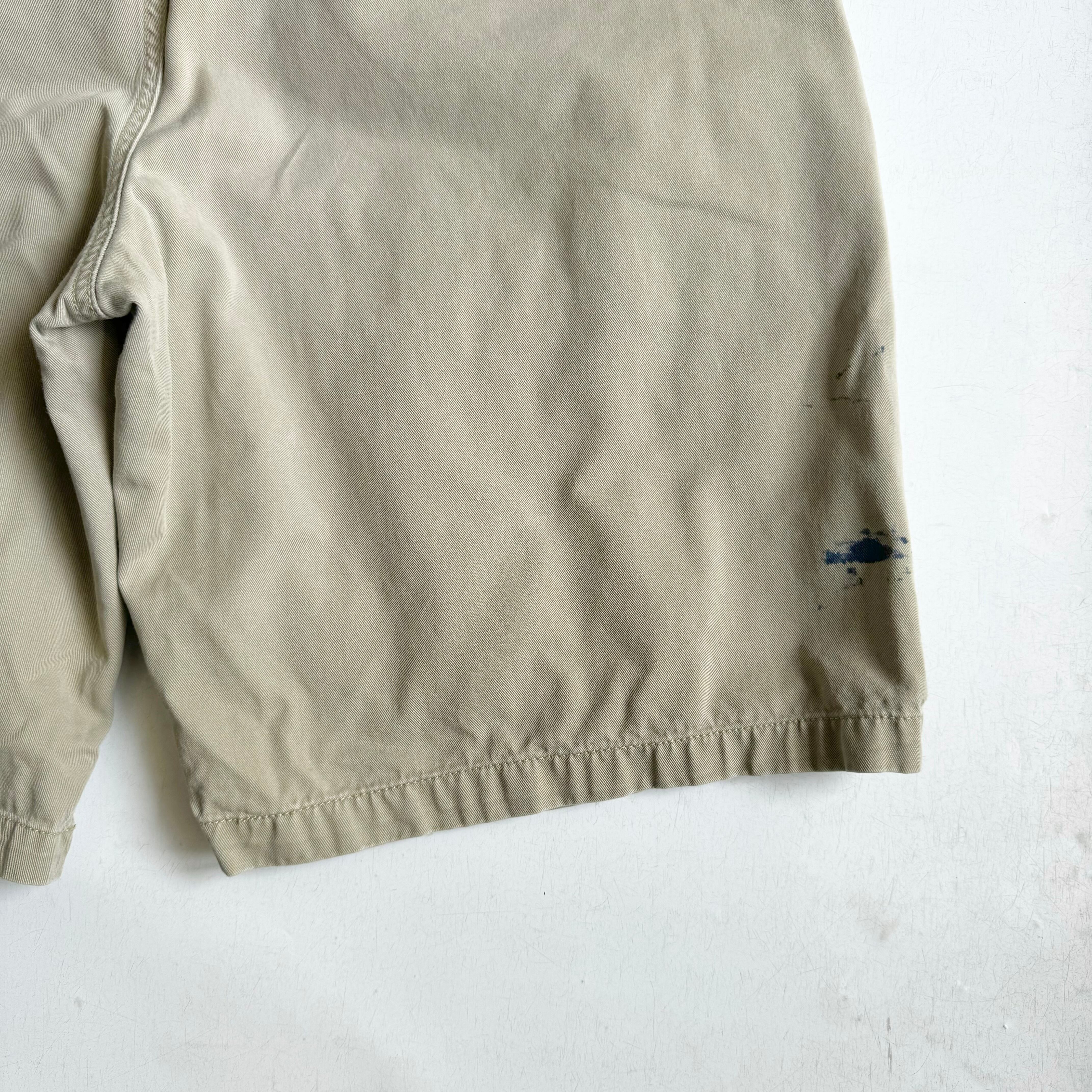 •SIZE 36 ウエスト 92cm 股上 35.5cm 股下 28cm わたり 36cm 裾幅 33cm 175cm着用 •MATERIAL COTTON 100% •COLOR ベージュ系 •CONDITION 背面裾に汚れ。 f471