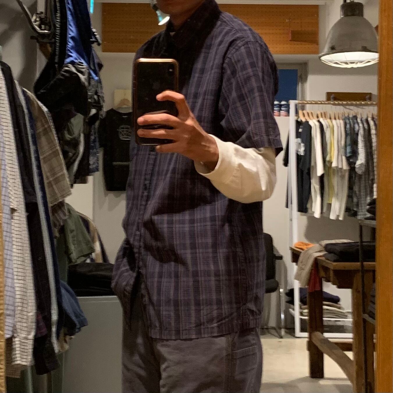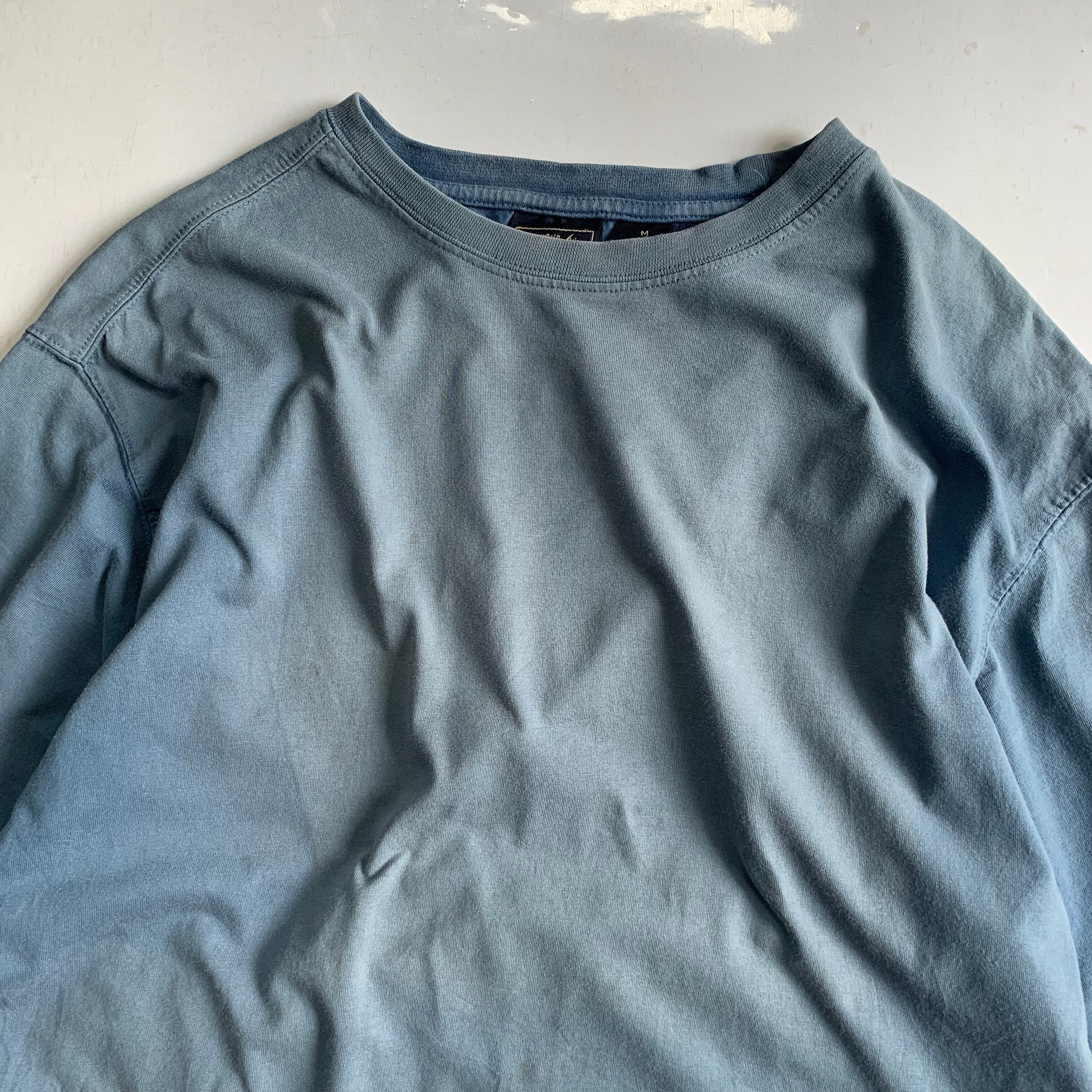 良い塩梅のフェード、ねじれ、汚れあり 1点物です •SIZE M 肩幅 52cm 袖丈 23.5cm 身幅 53cm 着丈 71cm 着用者170cm •MATERIAL COTTON 100% •COLOR ブルー系 •CONDITION 所々に薄汚れあり。 ya5037