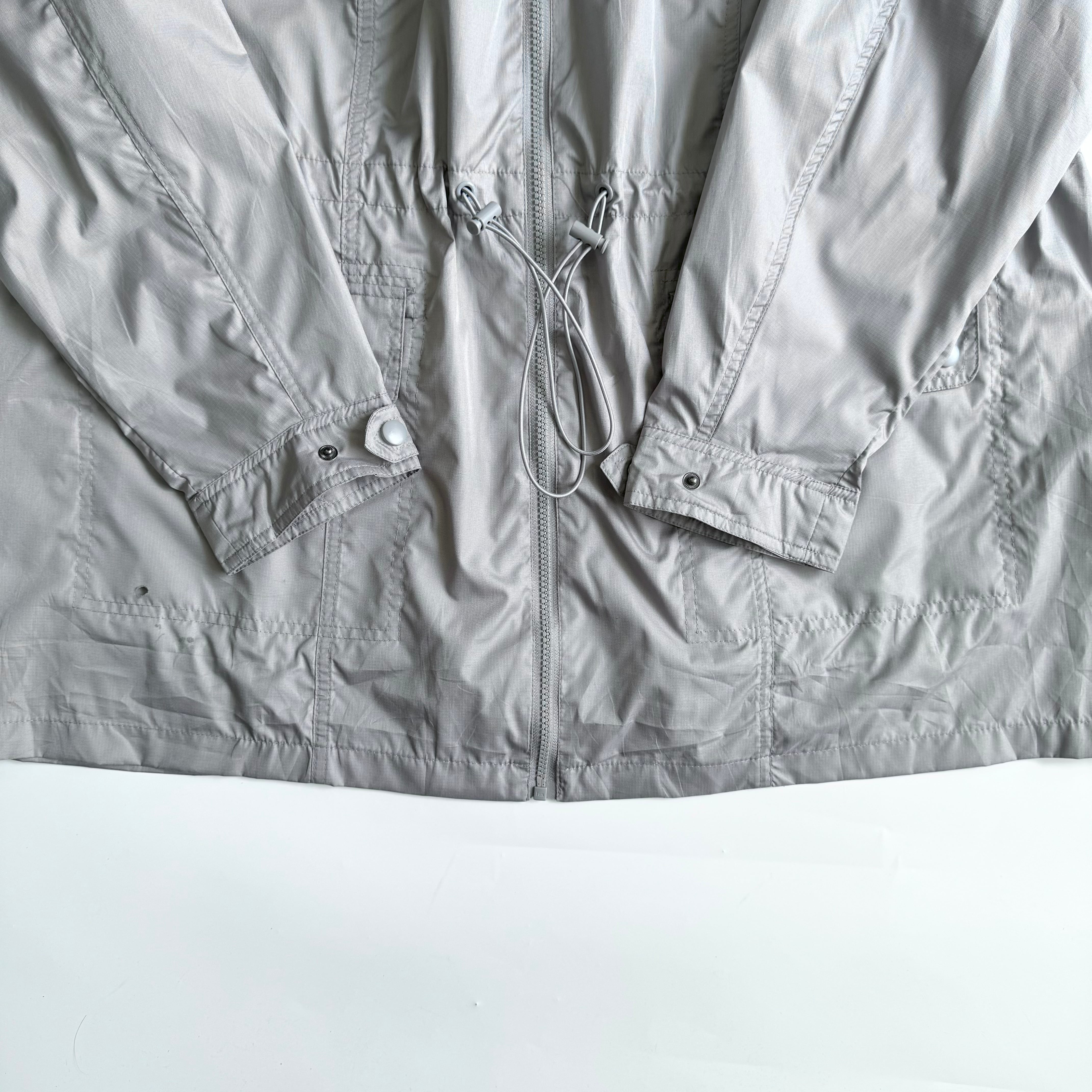 ジョンズベイのウェザーギア パッカブルでオシャレなパターンの切り替わり ユーロ感あるジョンズベイです •SIZE 肩幅 45.5cm 袖丈 64.5cm 身幅 66cm 着丈 79cm 175cm着用 •MATERIAL POLYESTER 100% •COLOR グレー系 •CONDITION フロントの右ポケットに小穴。 写真にてご確認ください。