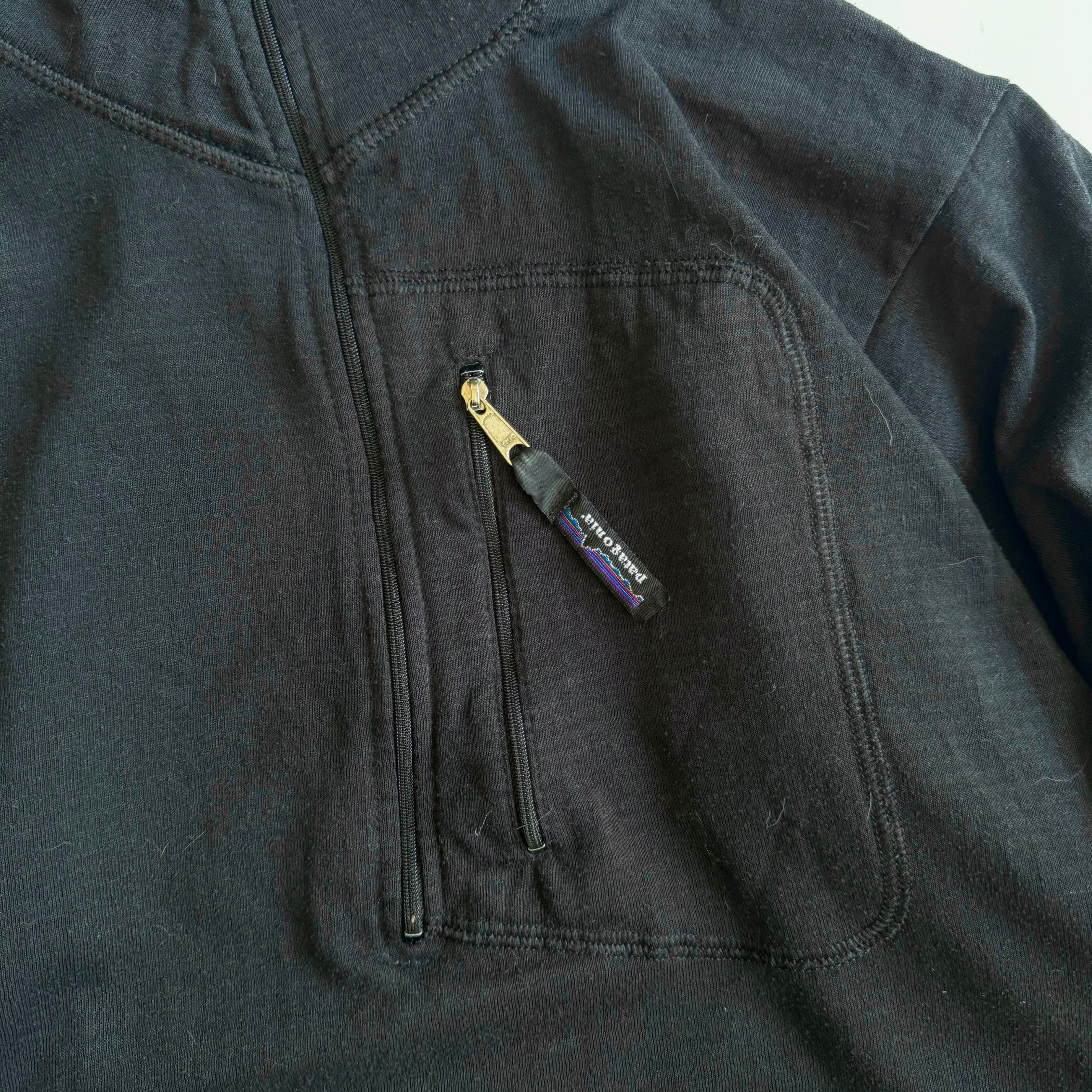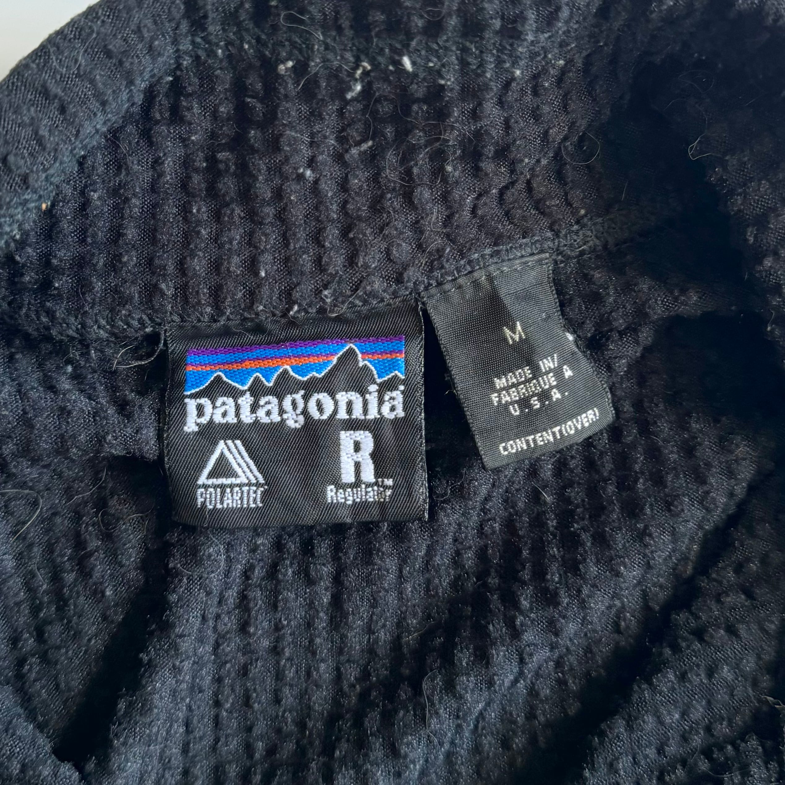 通気性と保温性のあるポーラテック社の格子のようなグリッドフリースボディ◎ •SIZE M 肩幅 42.5cm 袖丈 61cm 身幅 56cm 着丈 66cm 175cm着用 •MATERIAL POLYESTER 100% •COLOR ブラック •CONDITION 使用感、毛玉あり。 ya5564