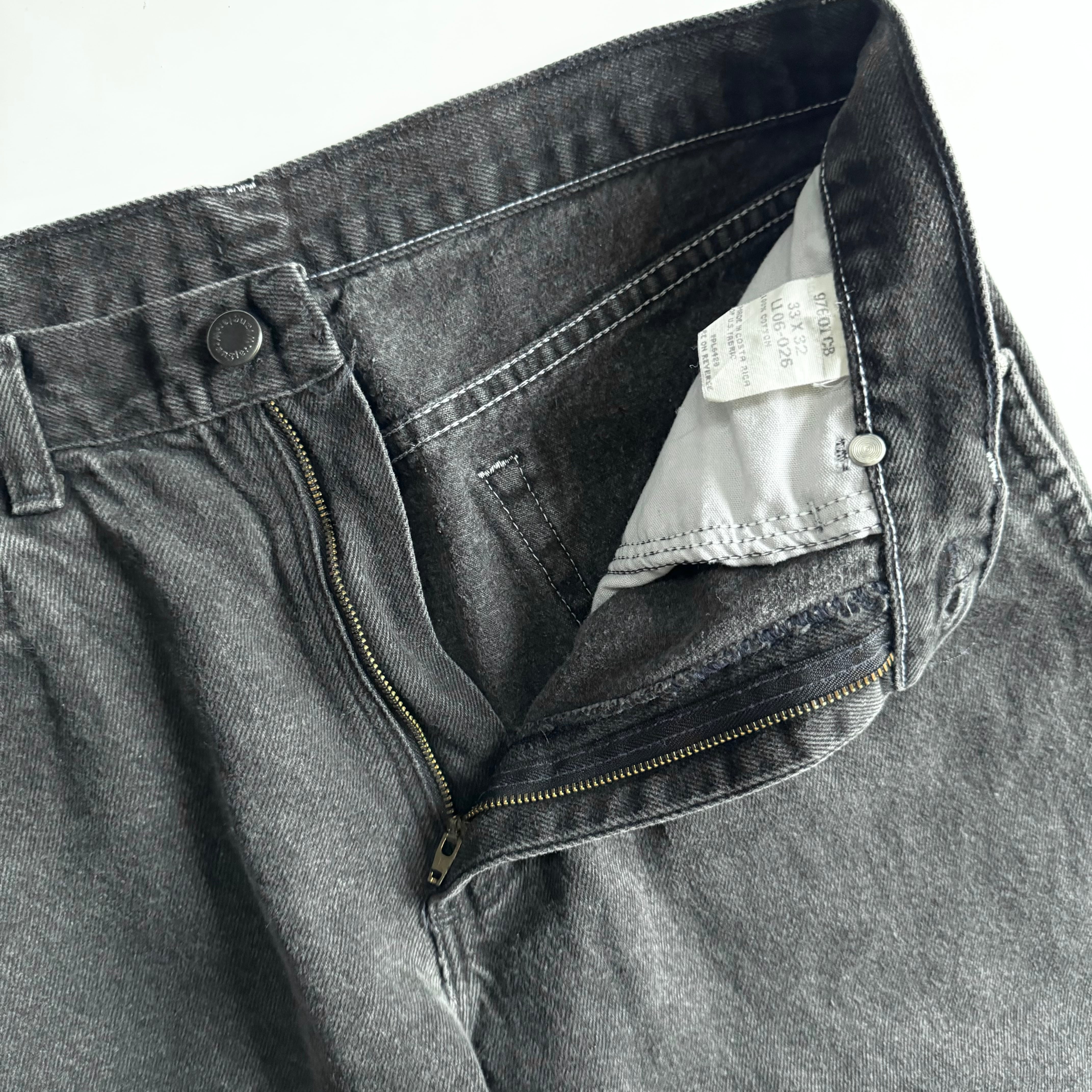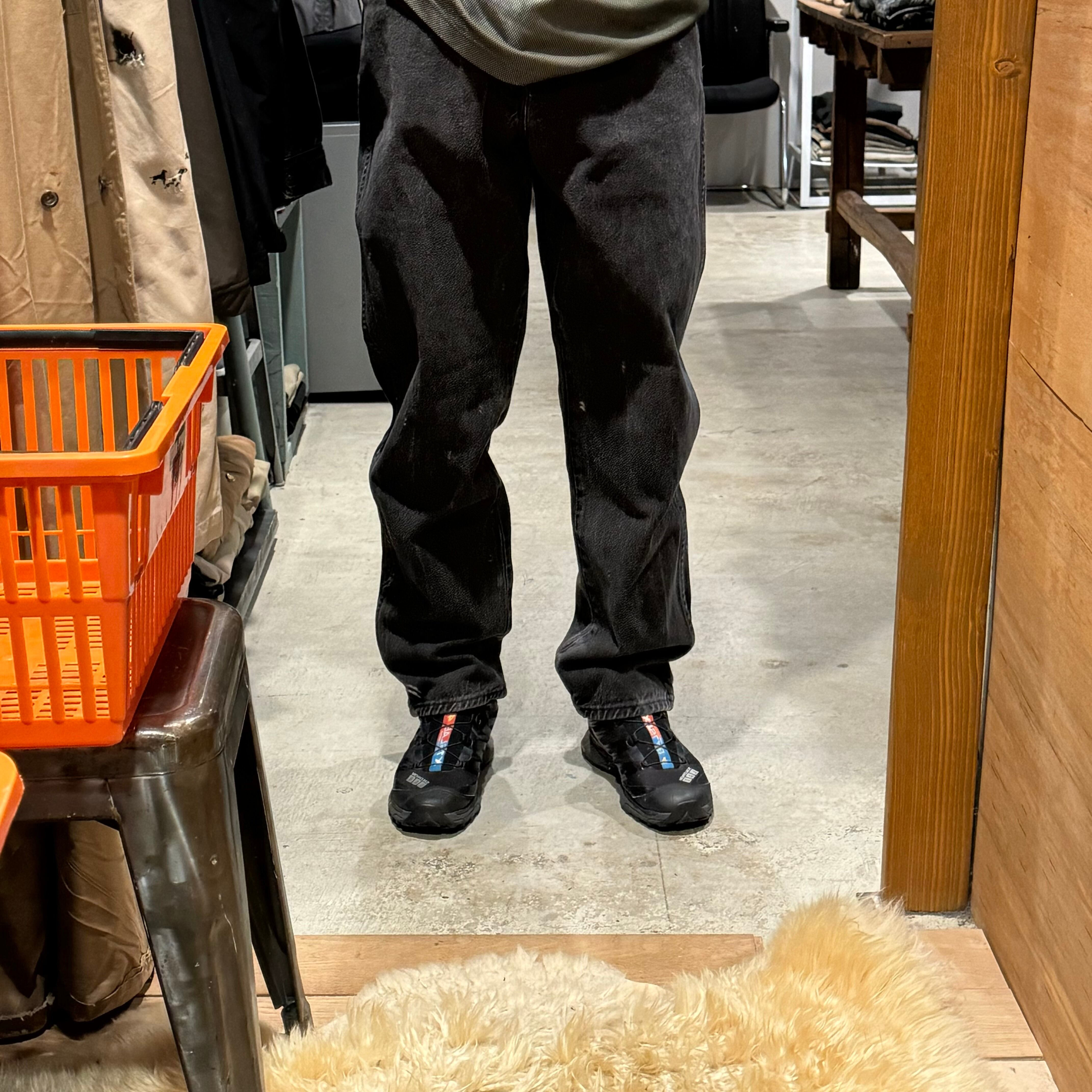 •SIZE 33×32 ウエスト 82cm 股上 31.5cm 股下 78.5cm わたり 33cm 裾幅 20.5cm 175cm着用 •MATERIAL COTTON 100% •COLOR ブラック •CONDITION 使用感はございますが、目立った傷や汚れ等はございません。 ya5468