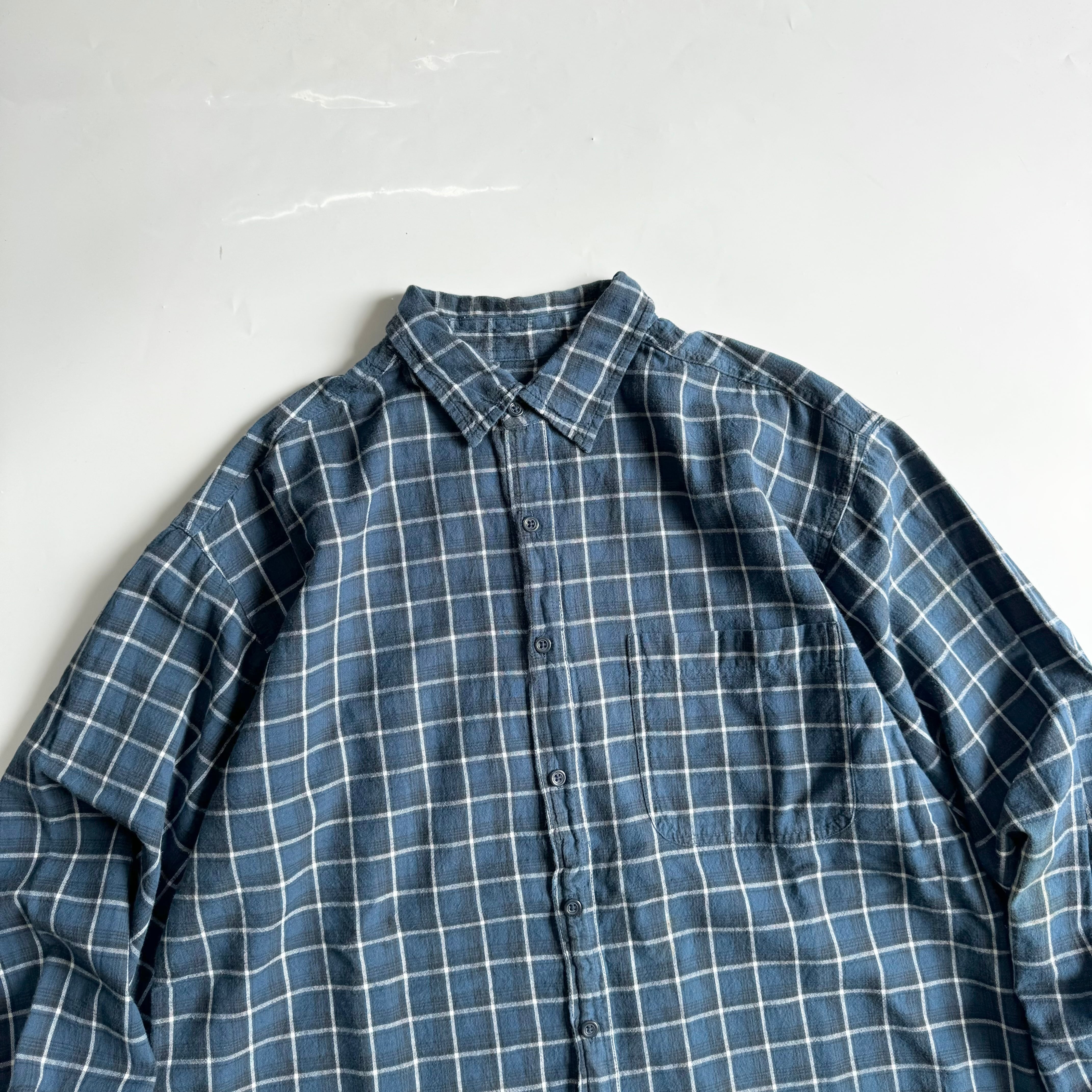 •SIZE L 肩幅 52.5cm 袖丈 62.5cm 身幅 61.5cm 着丈 76.5cm •MATERIAL COTTON 100% •COLOR ブルー系 •CONDITION 袖やフロントに薄い汚れあり。 kt150