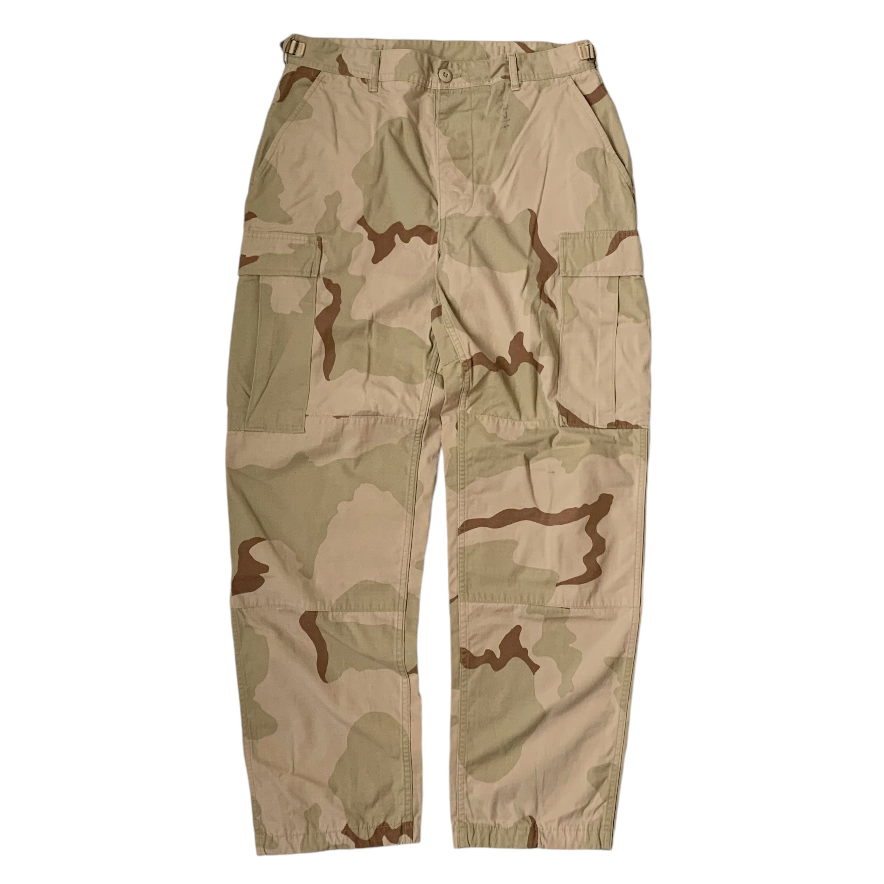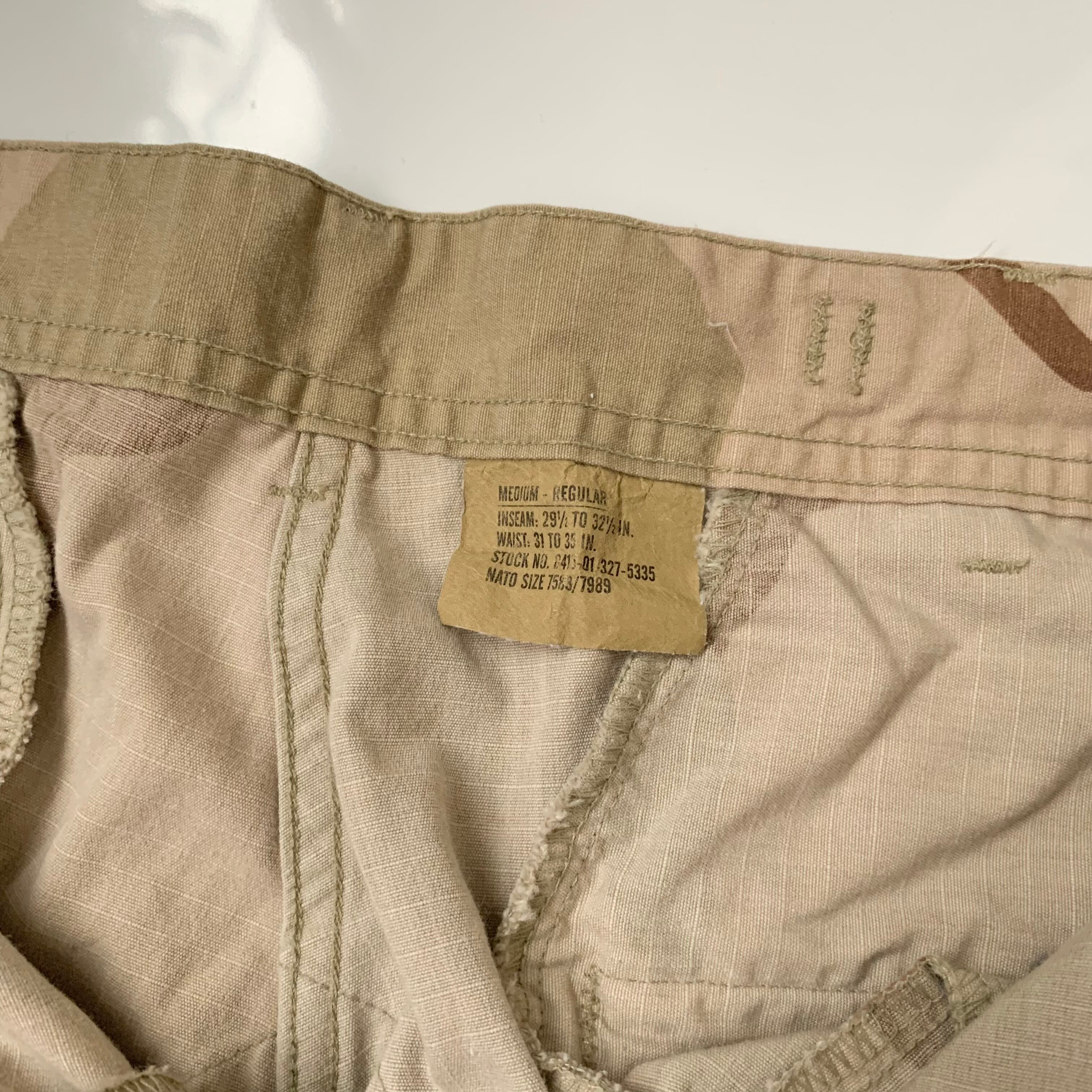 •SIZE MR ウエスト 86cm 股上 31.5cm 股下 81cm 総丈 108cm 着用者170cm •MATERIAL COTTON 50% NYLON 50% •COLOR デザートカモ •CONDITION フロントに汚れあり。 ya4805
