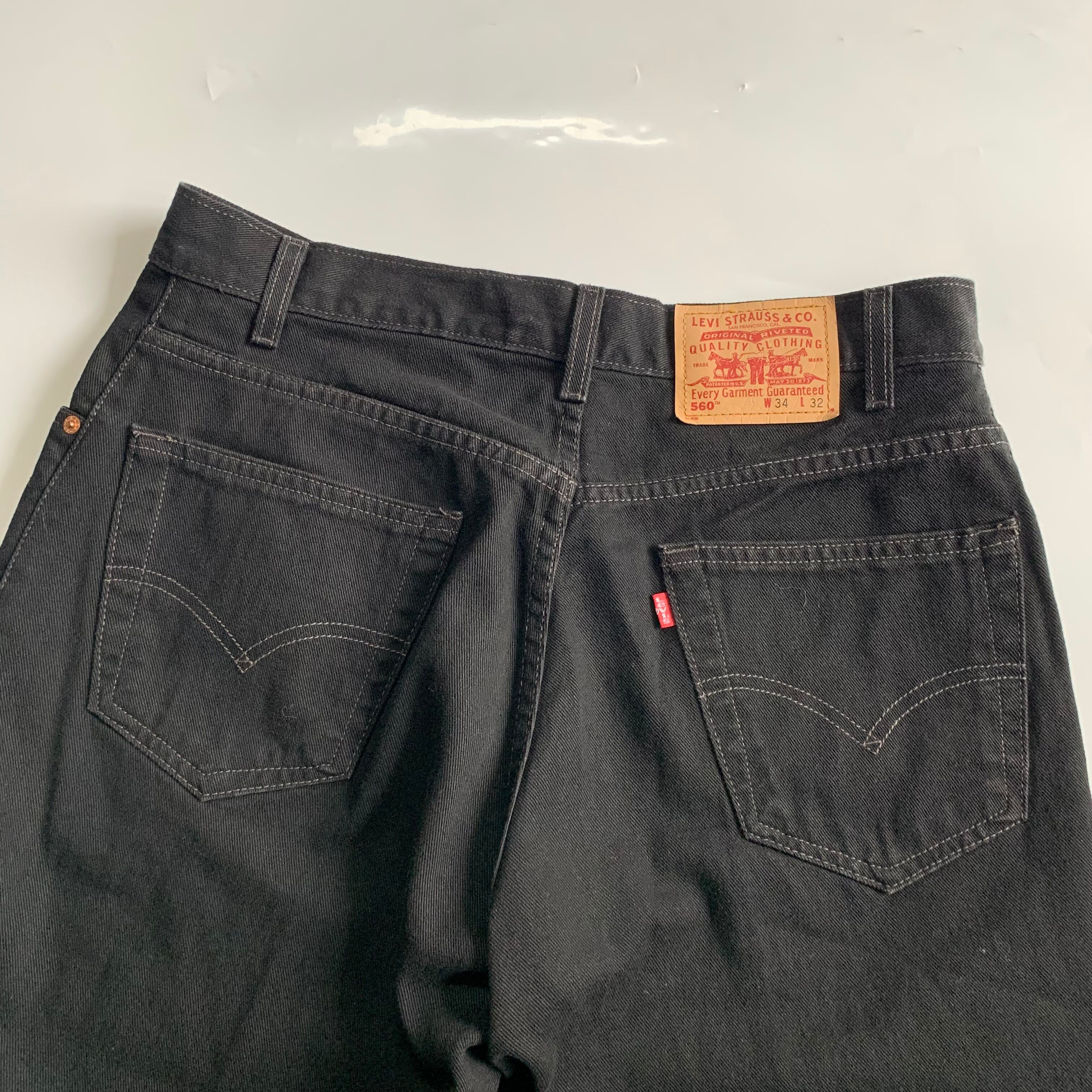 •SIZE W34L32 ウエスト 88cm 股上 32cm 股下 82cm •MATERIAL COTTON 100% •COLOR ブラック •CONDITION 背面に汚れございます。 写真にてご確認ください。 f460