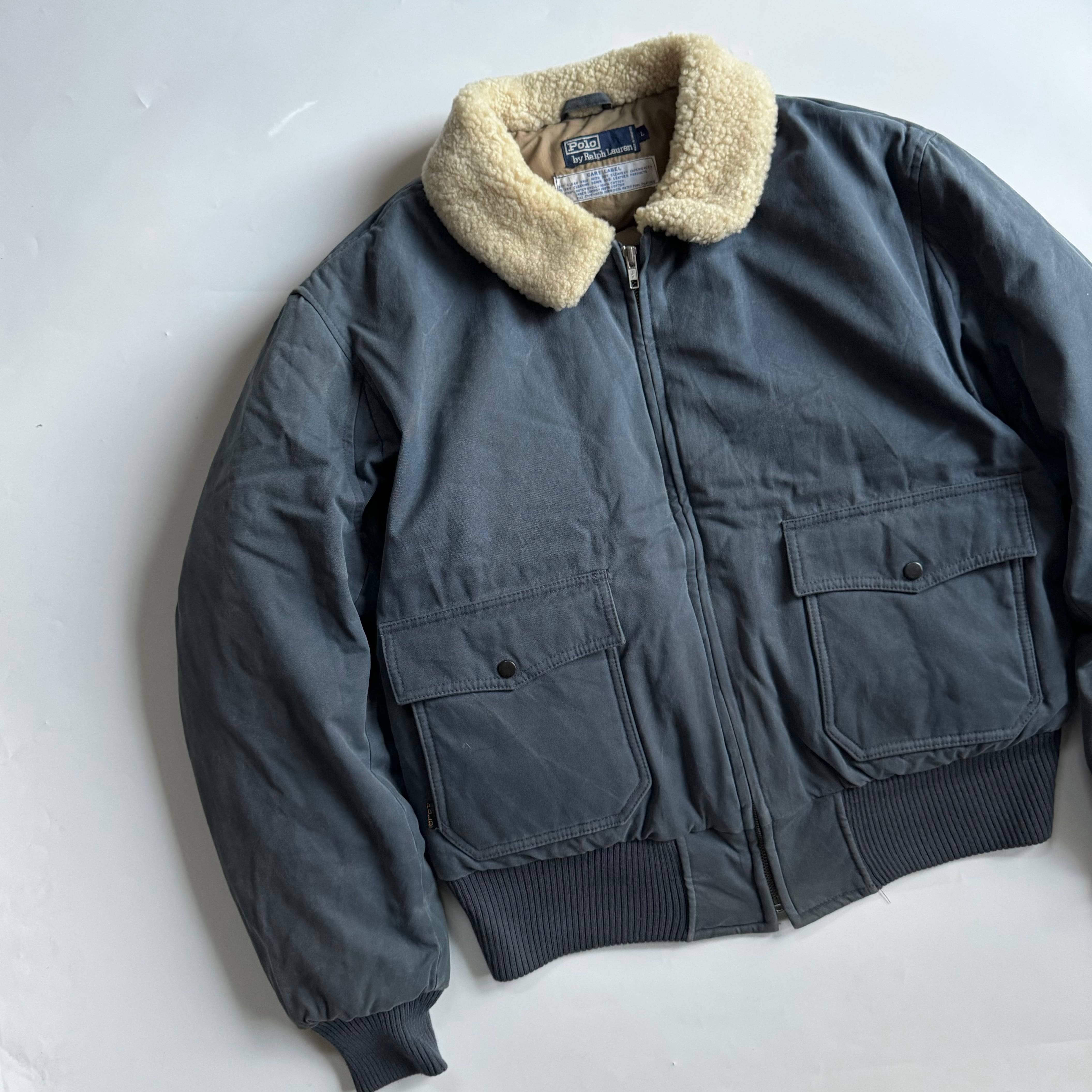 ラルフのミリタリーサンプリング”B-10”。コットンシェルのダウンでいい色味。 •SIZE L 肩幅 57cm 袖丈 68cm 身幅 68cm 着丈 66cm 175cm着用 •MATERIAL SHELL COTTON 100% FILL DOWN 80% FEATHER 20% •COLOR ネイビー系 •CONDITION 全体的に使用感、アタリはございますが、目立った傷や汚れ等はございません。