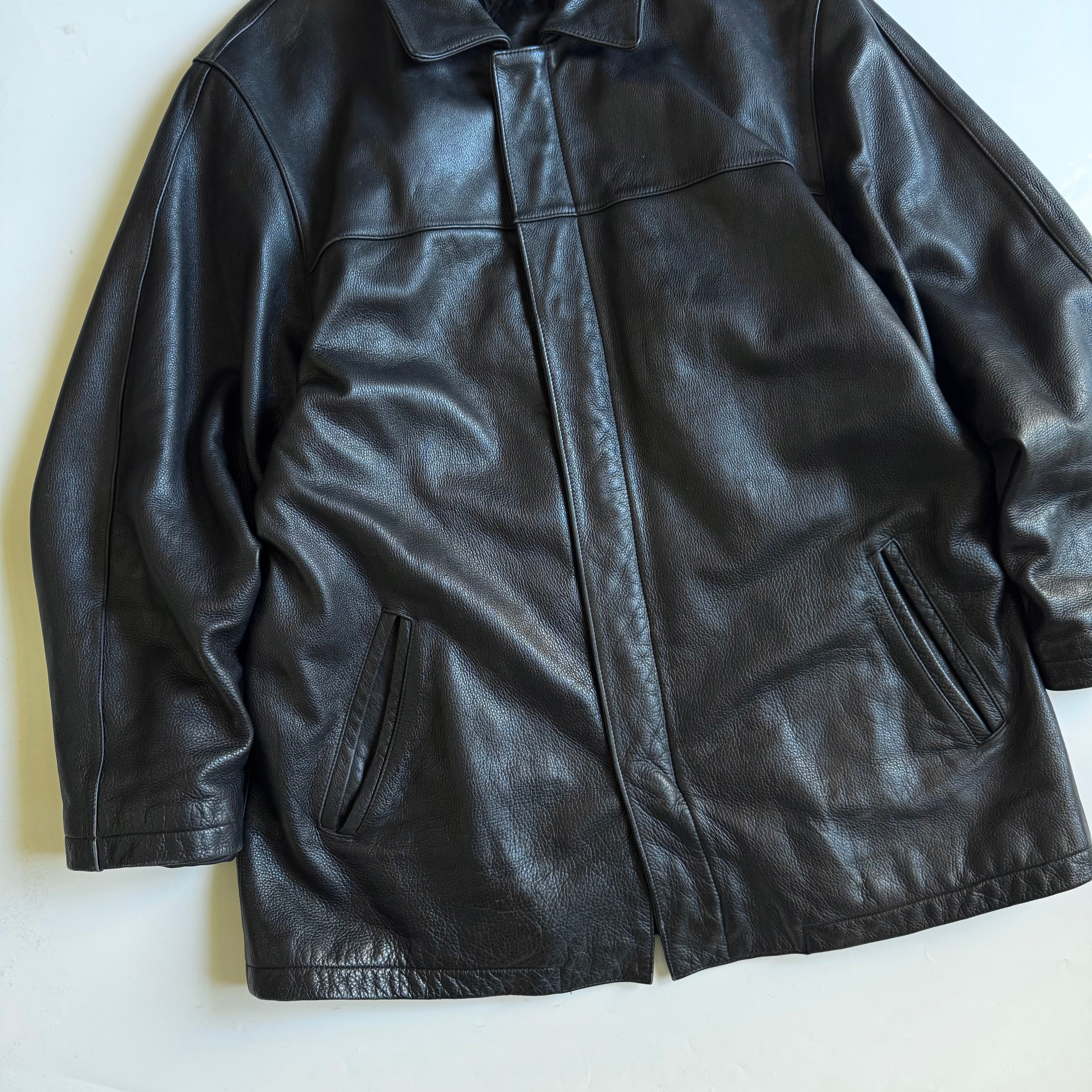 •SIZE L 肩幅 54cm 袖丈 63cm 身幅 66cm 着丈 84cm 175cm着用 •MATERIAL LEATHER •COLOR ブラック •CONDITION 多少のアタリや使用感はございますが、目立った傷や汚れ等はございません。 gar1662