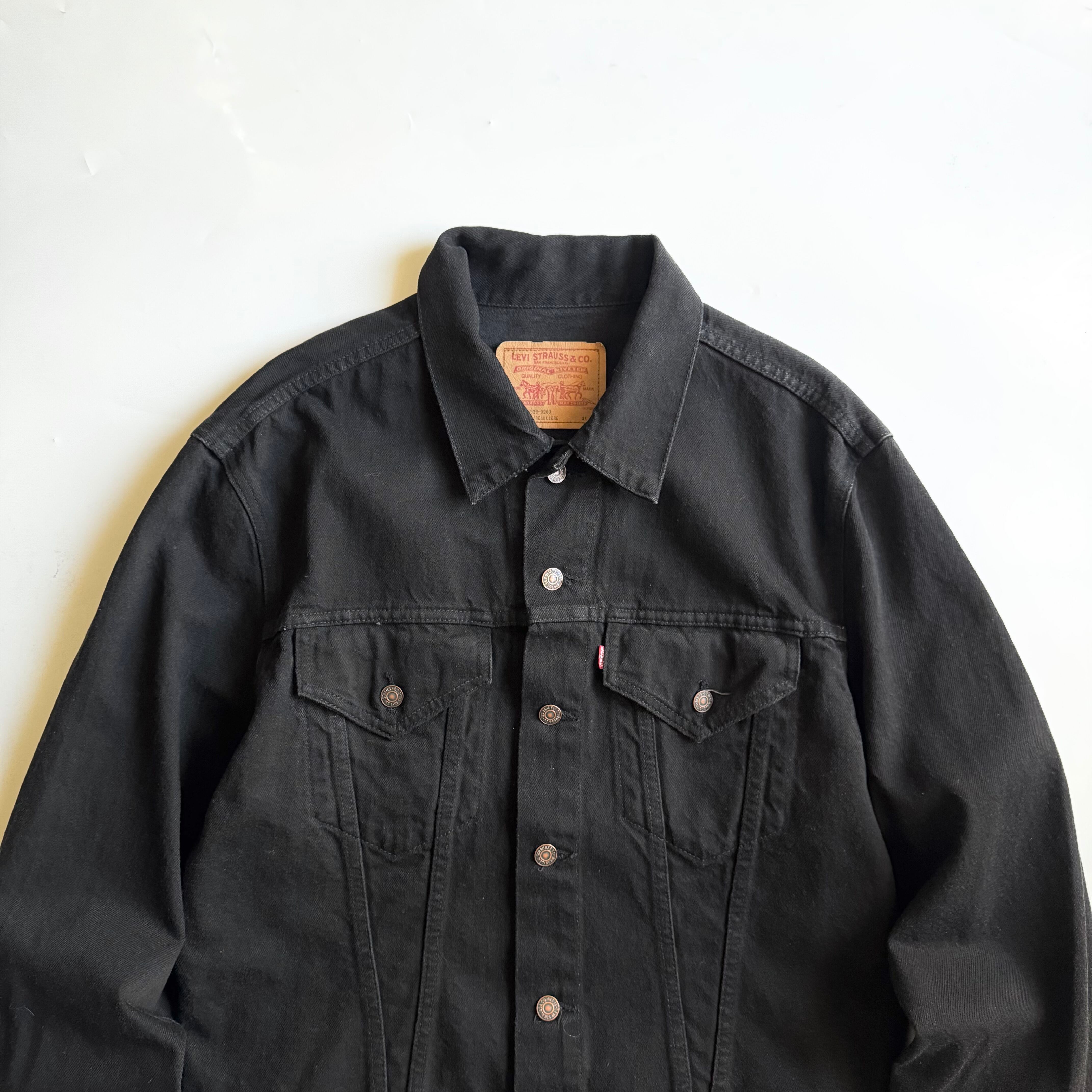 •SIZE XL 肩幅 53cm 袖丈 67cm 身幅 60cm 着丈 60.5cm 175cm着用 •MATERIAL COTTON 100% •COLOR ブラック •CONDITION 使用感はございますが、目立った傷や汚れ等はございません。 gar1757