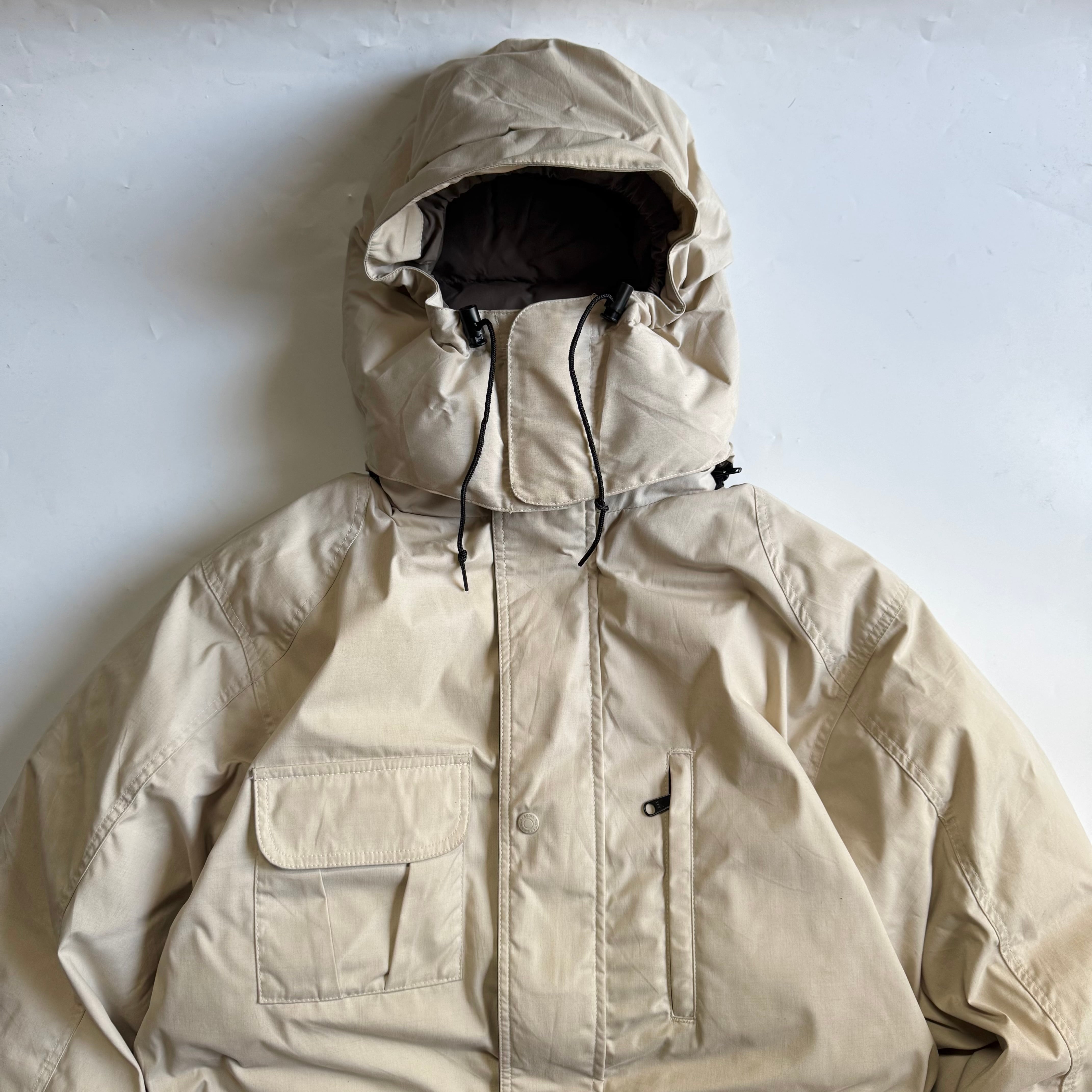 •SIZE L 肩幅 56cm 袖丈 65.5cm 身幅 70cm 着丈 88cm 175cm着用 •MATERIAL SHELL POLYESTER 65% COTTON 35% LINING NYLON 100% INSULATION GOOSE DOWN •COLOR ホワイトベージュ系 •CONDITION アームやフロントに汚れ、内側のワンブロックにダメージあり。写真にてご確認ください。 ya4850
