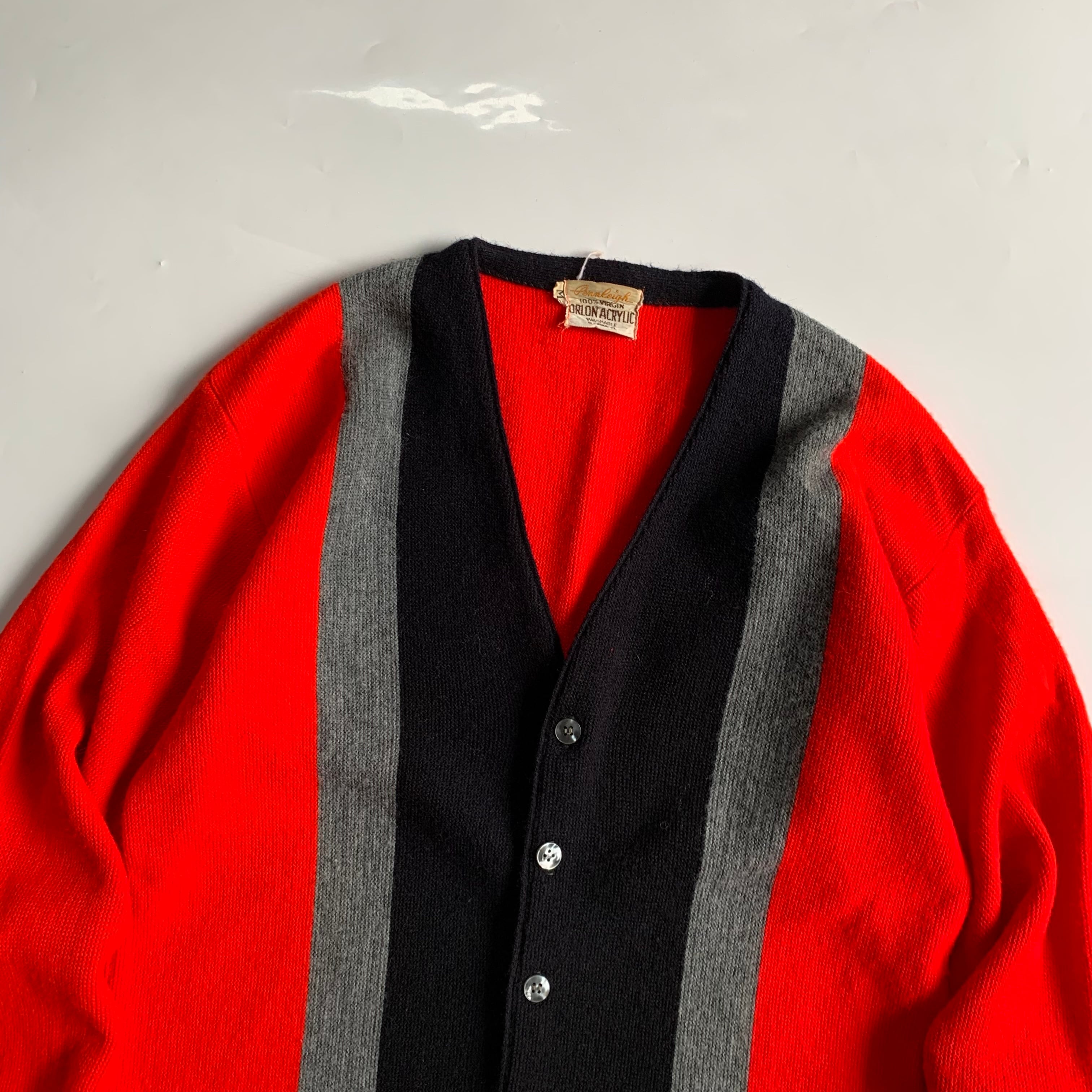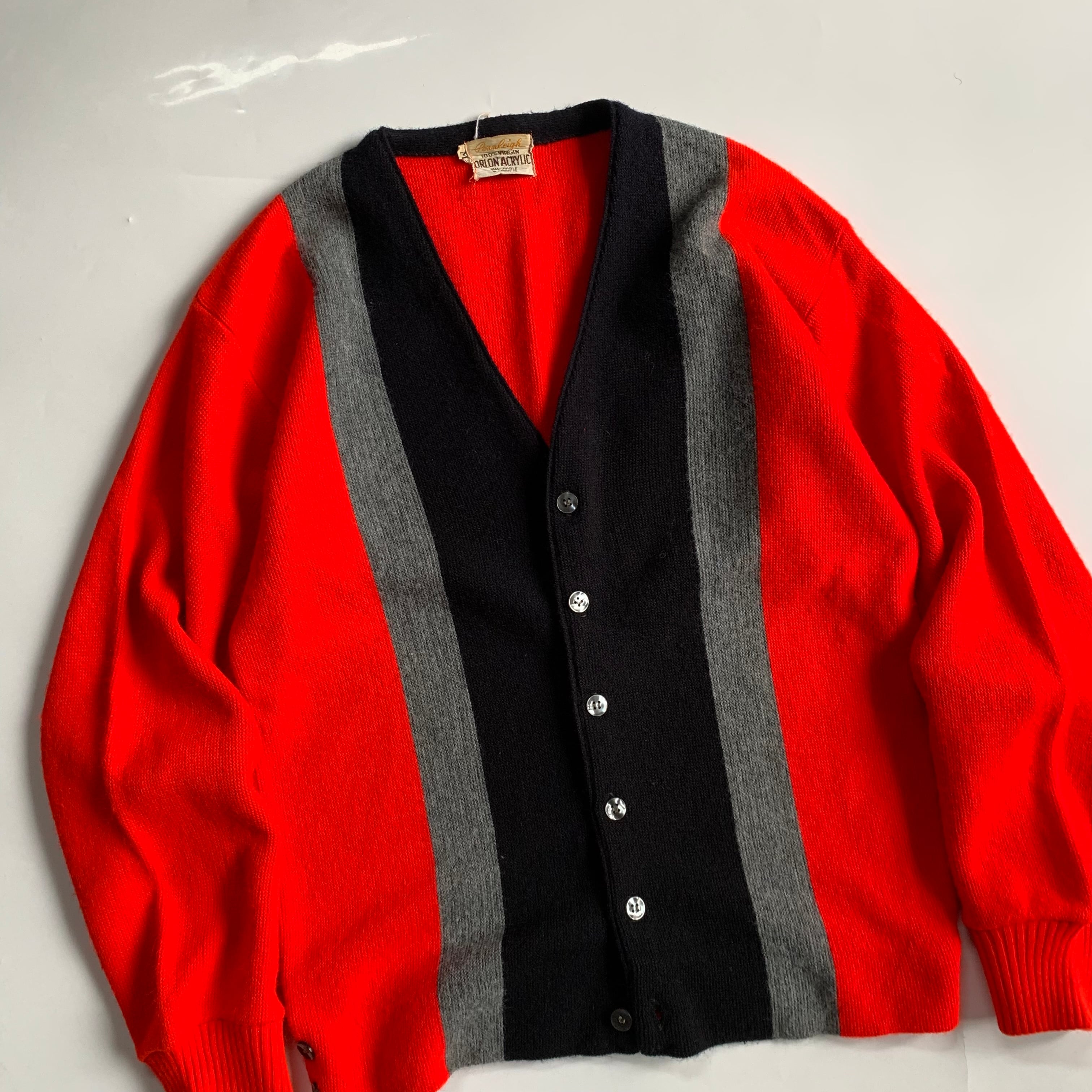 60s~70s vintage acrylic ヴィンテージアクリルカーディガン◎ •SIZE M 肩幅 50cm 袖丈 60.5cm 身幅 53cm 着丈 64cm 175cm着用 •MATERIAL ACRYLIC 100% •COLOR レッド グレー ブラック •CONDITION 使用感はございますが、目立った傷や汚れ等はございません。 kt165